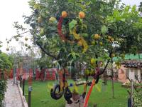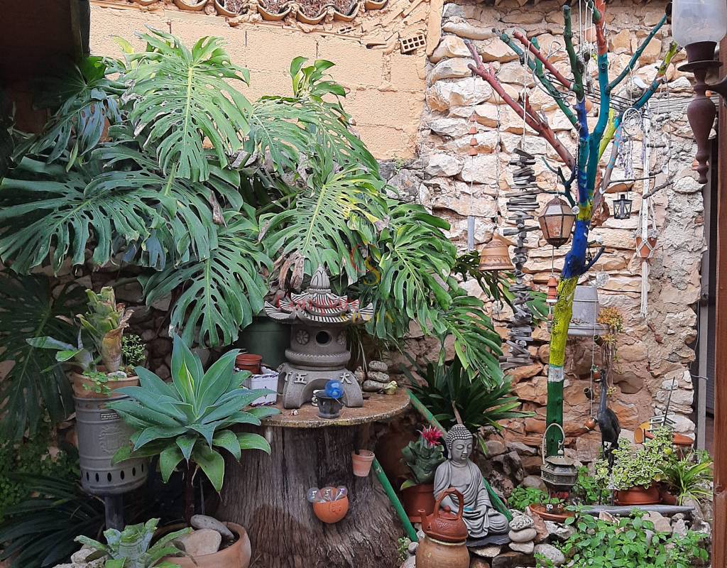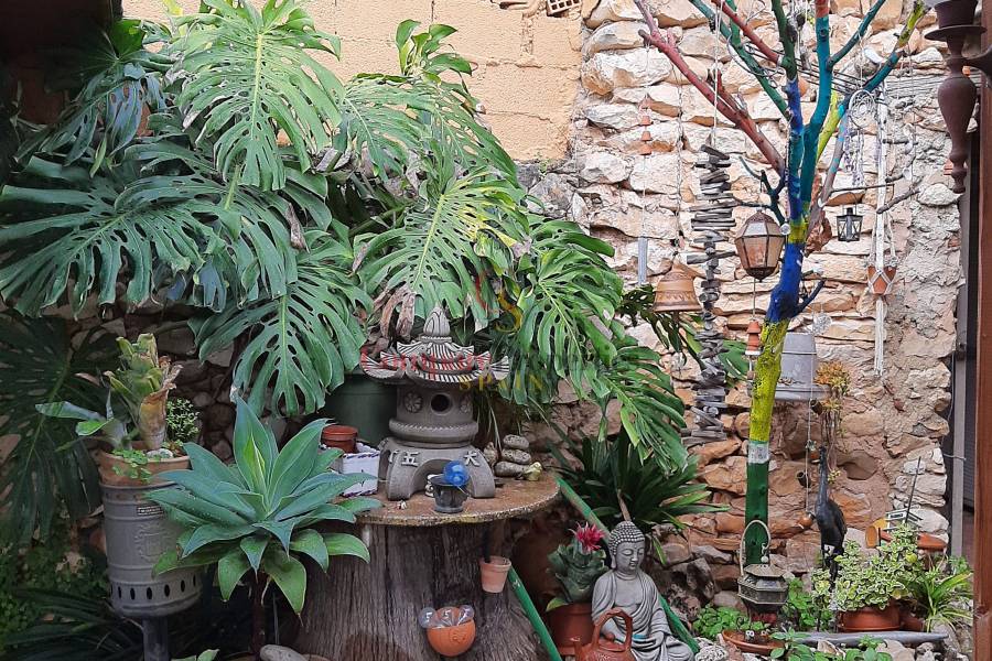 Vanuit de keuken op de begane grond heeft u toegang tot een prachtige buitenruimte, met verschillende bergingen, terrassen, fruitbomen, parkeerplaats met pergola voor twee auto's en toegang tot een andere straat.