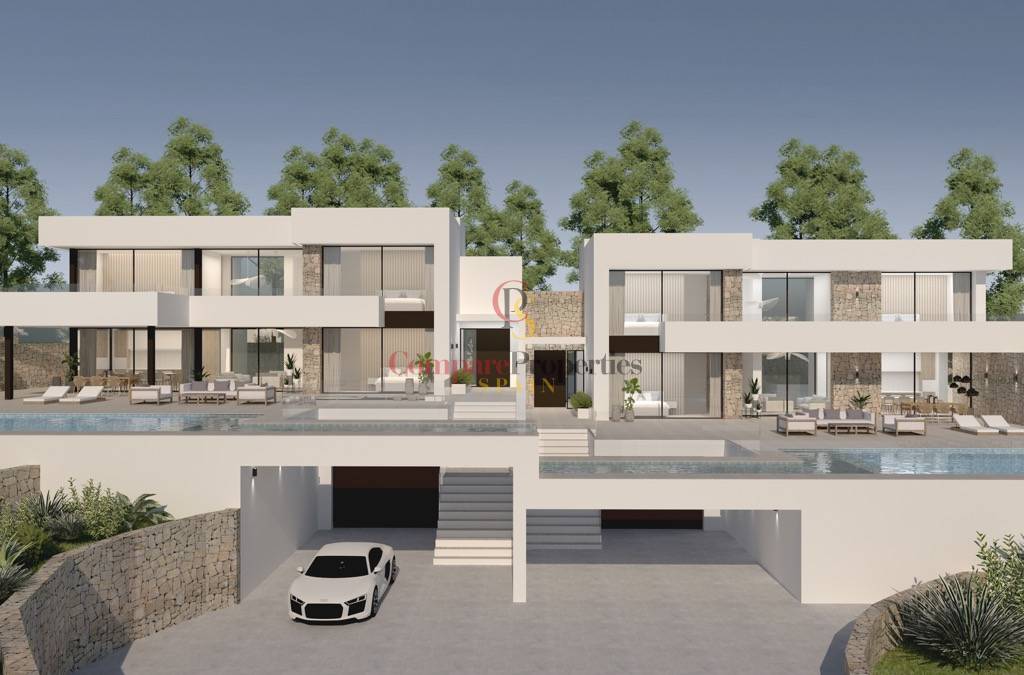 Luxe modern halfvrijstaand huisproject te koop in Moraira Moravit met vrij uitzicht op de Costa Blanca van Alicante in Spanje.
