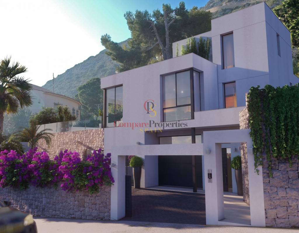 Moderne nieuwbouw villa met zeezicht te koop in urbanisatie Maryvilla Calpe aan de Costa Blanca in Alicante, Spanje.