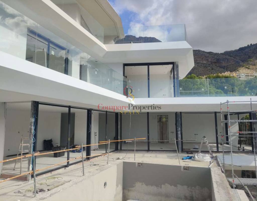 Deze luxe en moderne villa, in aanbouw, is gelegen in de prestigieuze Sierra de Altea en ligt op een royaal perceel van 1.431 m². Het pand, met een totale oppervlakte van 610 m², ontvouwt zich harmonieus op twee hoofdniveaus, aangevuld met een ruime kelder en een overdekt solarium. Deze laatste is een ware oase, uitgerust met een exclusieve spa, vanwaar u kunt genieten van een panoramisch uitzicht op de zee en het omringende landschap.br>br> De villa is ontworpen met elegantie en comfort in gedachten en biedt vier ruime slaapkamers, elk met een eigen en-suite badkamer, waardoor privacy en luxe worden gegarandeerd. Daarnaast heeft het twee extra toiletten voor meer comfort. De interieurs zijn een weerspiegeling van moderniteit en verfijning, met hoogwaardige afwerkingen en een ontwerp dat natuurlijk licht en uitzicht maximaliseert.br>br> De buitenkant van de villa is niet minder indrukwekkend, met een prachtig zwembad dat uitnodigt om af te koelen en te ontspannen onder de mediterrane zon. De perfect geïntegreerde barbecueplek is ideaal om buiten te genieten van maaltijden en sociale evenementen, terwijl u geniet van het prachtige zeegezicht. Deze villa is niet zomaar een huis, maar een luxe levensstijl in een van de meest begeerde omgevingen in Spanje.br>br>
