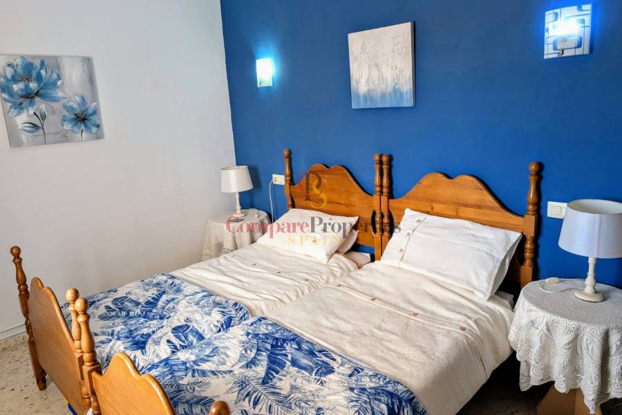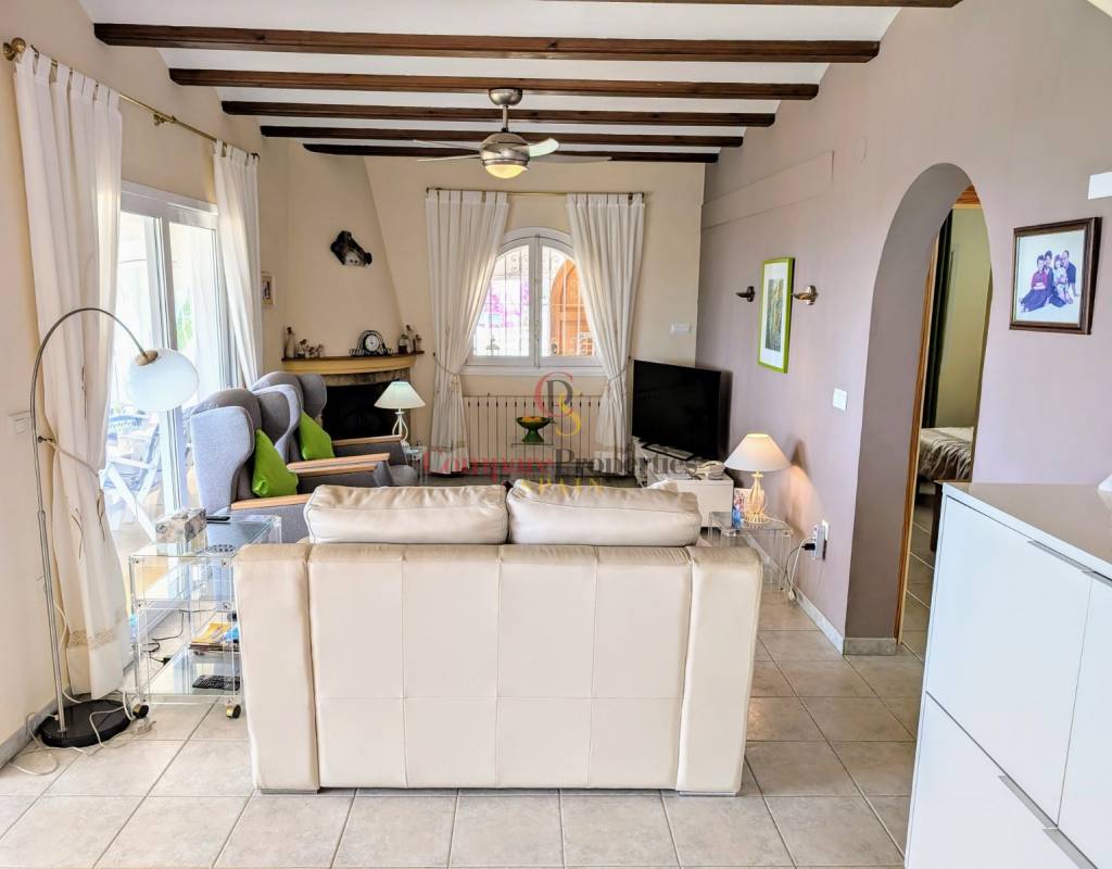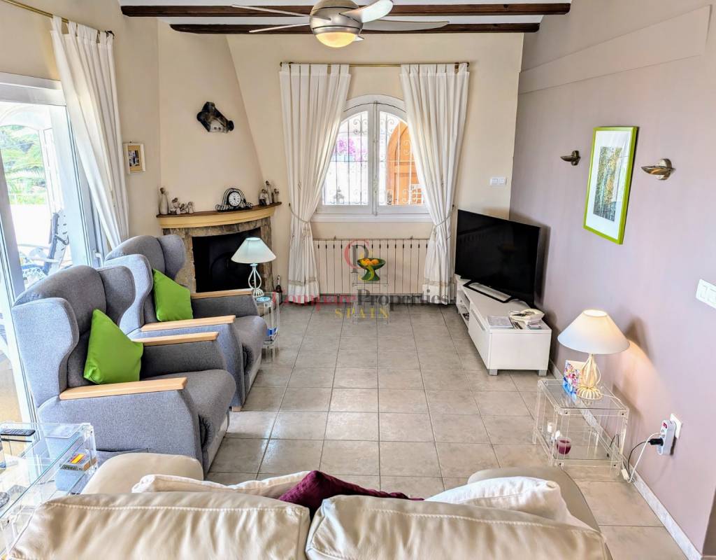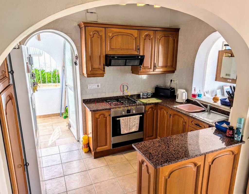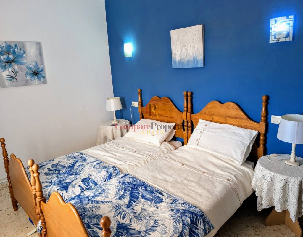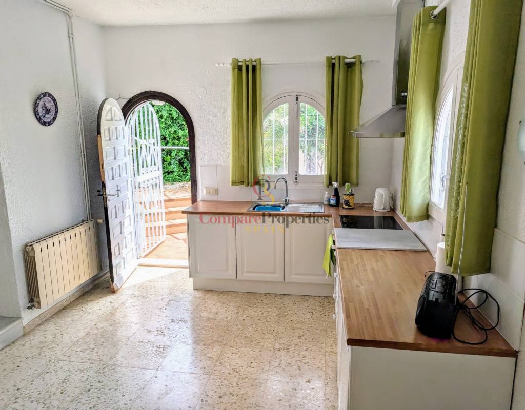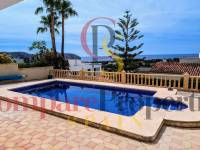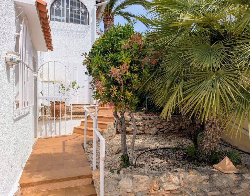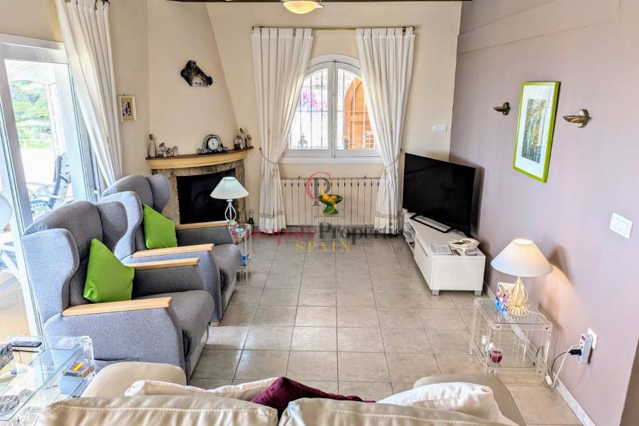 Deze villa in traditionele stijl ligt op een bevoorrechte locatie met prachtig uitzicht op zee, maar toch op slechts 3 minuten rijden van het strand en het stadscentrum. De villa is verdeeld over twee aparte verdiepingen en ligt op een hellend perceel in een rustige woonstraat. Het huis heeft twee toegangsdeuren voor auto's, een leidt naar een carport met parkeerruimte voor twee extra auto's en de andere naar een garage met parkeerruimte voor drie of vier extra auto's. Vanuit de hoger gelegen parkeerruimte kun je naar de garage. Vanaf de hogere parkeerplaats is het slechts vijf treden naar de hoofdingang van de villa of de ingang naar de keuken. Je komt de villa binnen via een beglaasde naya met een traditionele barbecue en vervolgens op een open terras met een open naya vanwaar je kunt genieten van het prachtige uitzicht. Vanuit de naya kom je in de eetkamer waar je kunt zitten en genieten van het uitzicht op zee dat zich uitstrekt over de baai. Vanaf hier kom je in de woonkamer, die een hoekopen haard heeft en aan de rechterkant een open keuken met eiken eenheden en granieten werkbladen, en uitzicht op zee vanaf het aanrecht! Vanuit de keuken is er toegang tot een glazen bijgebouw en een pad naar de parkeerplaats. Vanuit de woonkamer leidt een kleine hal naar een tweepersoonsslaapkamer, een badkamer en de ouderslaapkamer. De benedenverdieping heeft een aparte toegang, je komt binnen in een ruime keuken/eetkamer, links is een grote tweepersoonsslaapkamer en rechts is een gerenoveerde badkamer met inloopdouche, badmeubel en verwarmd handdoekenrek. Via een deur in de badkamer kom je in de enorme bijkeuken/werkplaats/garage en via een deur aan de rechterkant kom je in nog twee grote opslagruimtes. Vanaf de benedenverdieping leiden een paar treden je naar het grote, gedeeltelijk overdekte zwembadterras met een zwembad van 8 x 4 m met Romeinse treden, een zwembaddouche en een grote zomerkeuken met dubbele deuren. Een paar treden naar beneden leiden naar de lager gelegen tuin met wijnranken, sinaasappel-, citroen-, olijf- en nespirobomen. Er is ook een overdekte houtopslag en een zeer grote pompruimte voor het zwembad, die tevens dienst doet als werkplaats. De villa wordt omringd door een gemakkelijk te onderhouden tuin met veel volwassen planten, bomen en palmen.- Belangrijkste punten:- Gebouwd in 1978- Gebouw: 300m2+/-- Terrein: 800m2- Huidige eigenaren sinds 2005- Adembenemend uitzicht zonder op de top van een berg te staan- Centrale verwarming op olie- Airconditioning in grote slaapkamer- Nieuwe centrale verwarmingsketel 2024- Gerenoveerd zwembad 2023- Alleen Franse ramen met dubbele beglazing- Internet beschikbaar- Elektriciteit 5,5kw- Jaarlijkse belastingen 994,04€ (taxe foncière en taxe d'ordures ménagères)- De vorm van deze villa biedt de nieuwe eigenaar een gemakkelijk renovatieproject.- Afstanden :- Strand en centrum 1.5km- Jachthaven 2.1km- Golfbaan 2.5km- Snelweg naar Benissa 8.9km- Een niet te missen kans!
