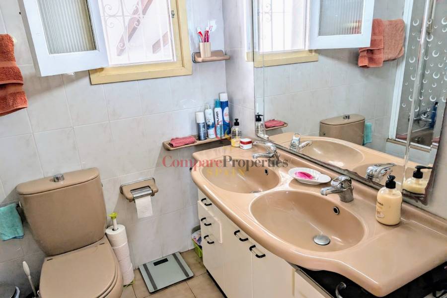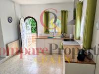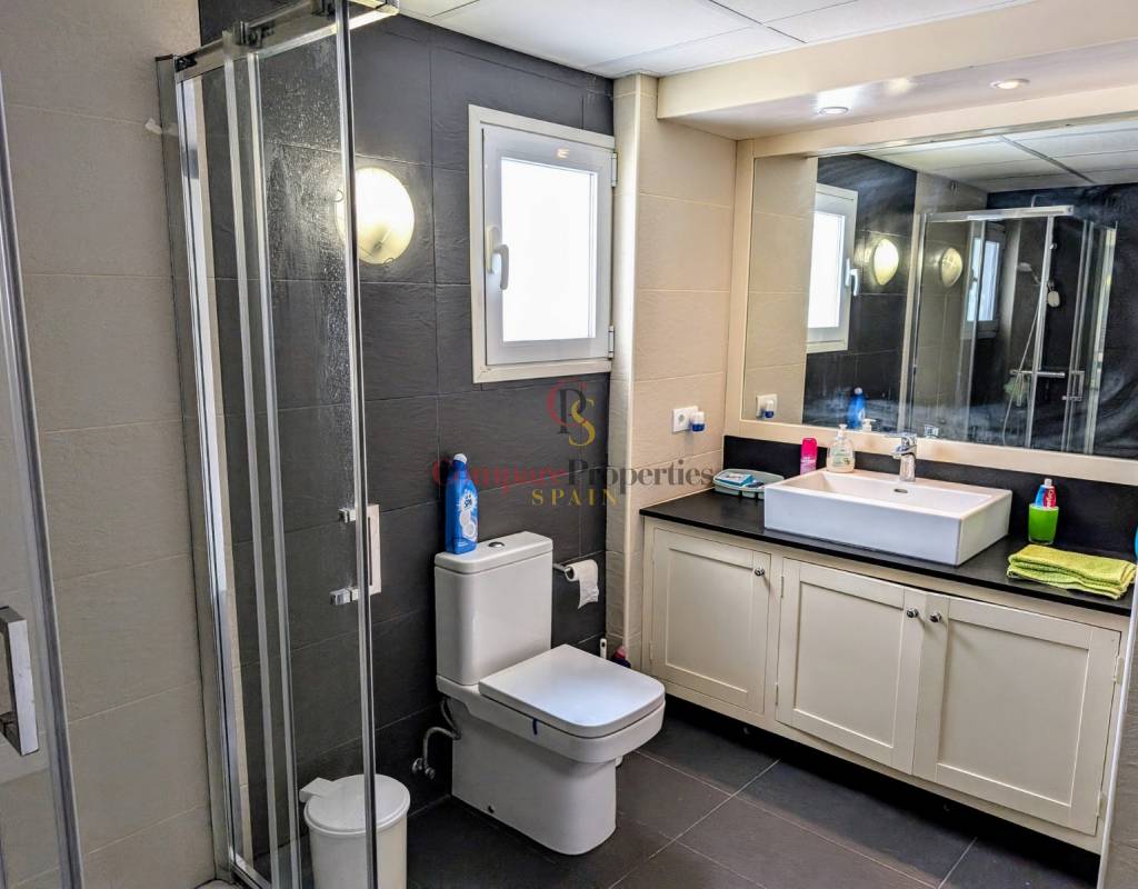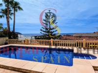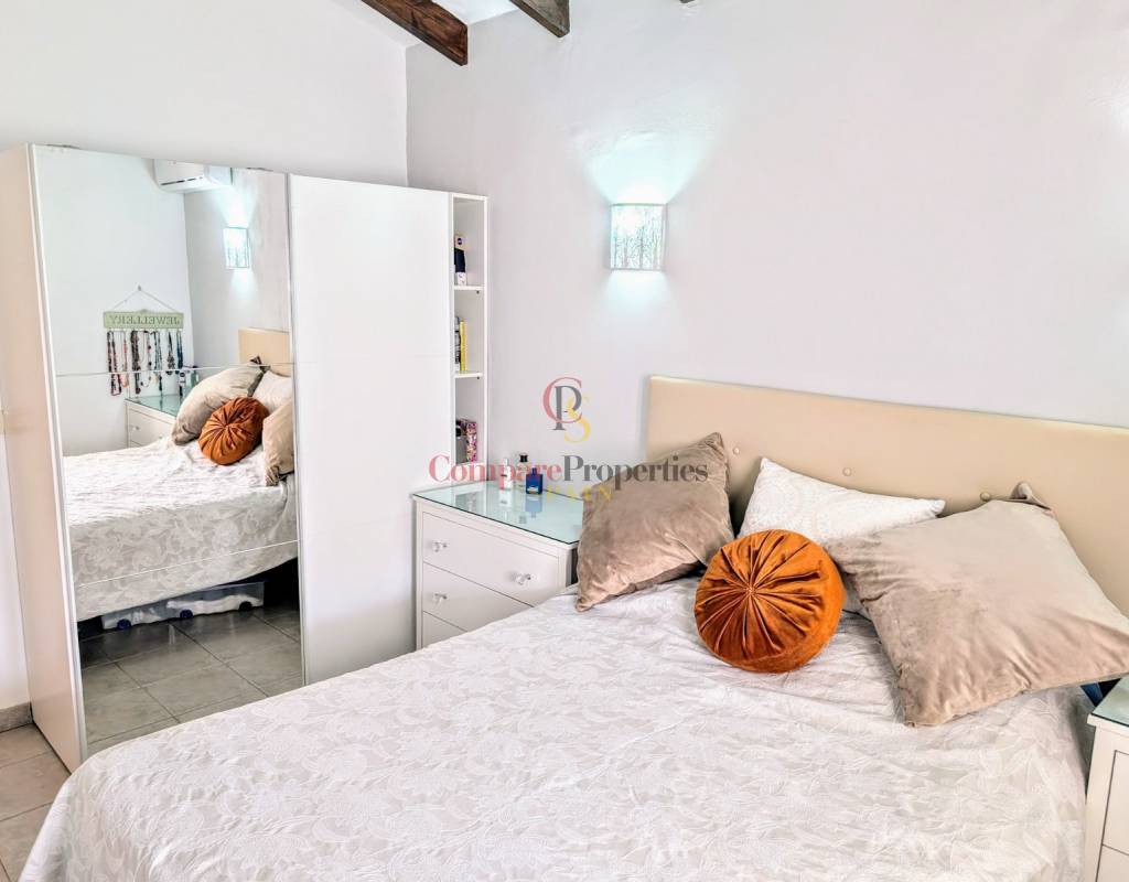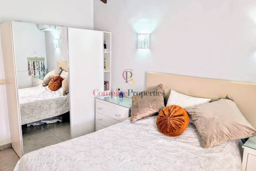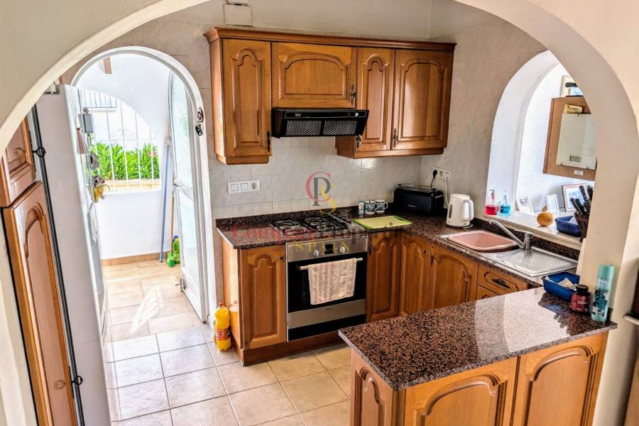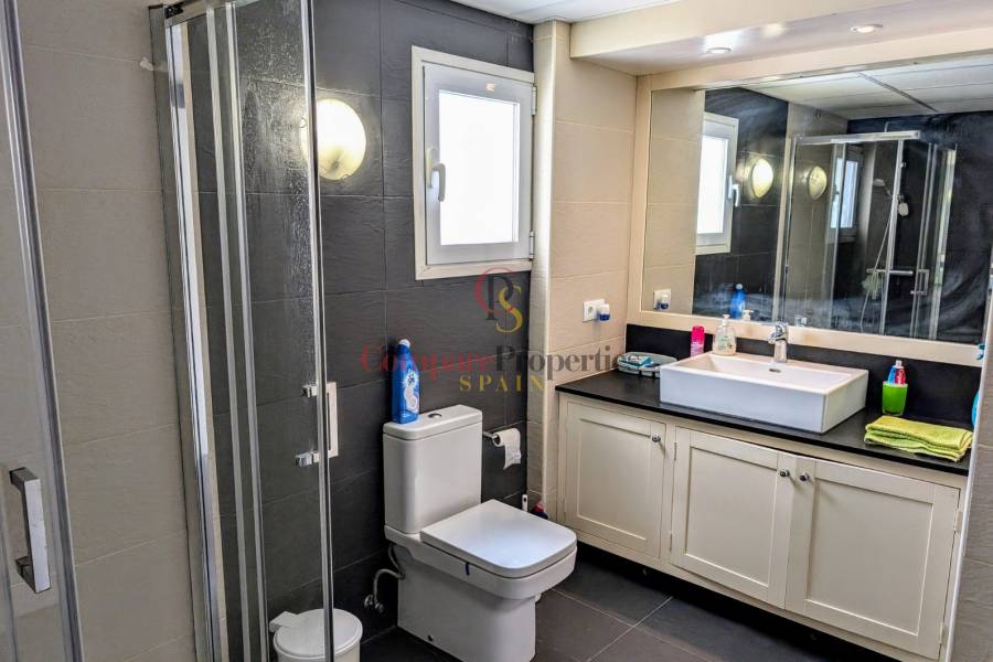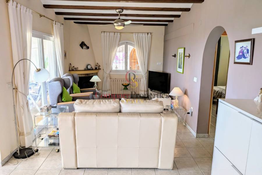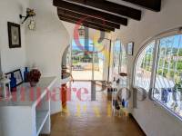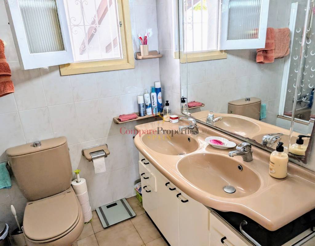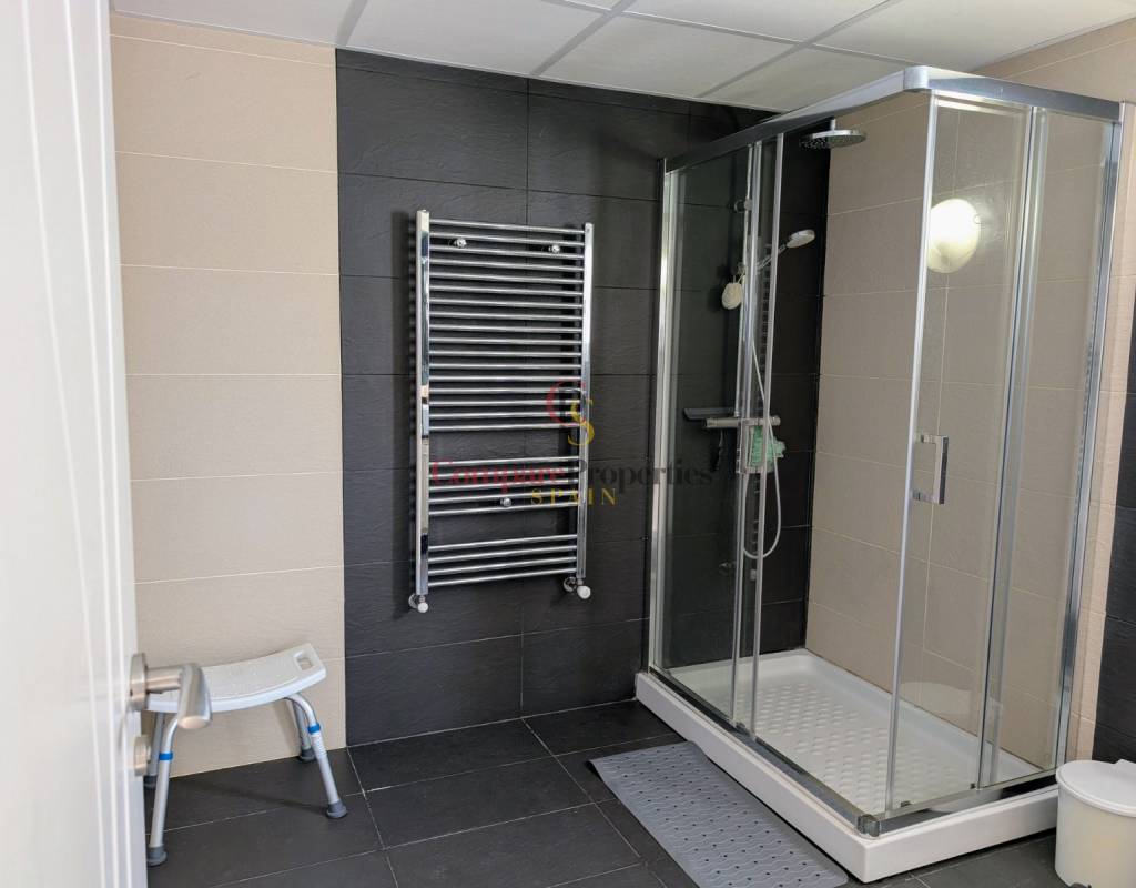 Deze villa in traditionele stijl ligt op een bevoorrechte locatie met prachtig uitzicht op zee, maar toch op slechts 3 minuten rijden van het strand en het stadscentrum. De villa is verdeeld over twee aparte verdiepingen en ligt op een hellend perceel in een rustige woonstraat. Het huis heeft twee toegangsdeuren voor auto's, een leidt naar een carport met parkeerruimte voor twee extra auto's en de andere naar een garage met parkeerruimte voor drie of vier extra auto's. Vanuit de hoger gelegen parkeerruimte kun je naar de garage. Vanaf de hogere parkeerplaats is het slechts vijf treden naar de hoofdingang van de villa of de ingang naar de keuken. Je komt de villa binnen via een beglaasde naya met een traditionele barbecue en vervolgens op een open terras met een open naya vanwaar je kunt genieten van het prachtige uitzicht. Vanuit de naya kom je in de eetkamer waar je kunt zitten en genieten van het uitzicht op zee dat zich uitstrekt over de baai. Vanaf hier kom je in de woonkamer, die een hoekopen haard heeft en aan de rechterkant een open keuken met eiken eenheden en granieten werkbladen, en uitzicht op zee vanaf het aanrecht! Vanuit de keuken is er toegang tot een glazen bijgebouw en een pad naar de parkeerplaats. Vanuit de woonkamer leidt een kleine hal naar een tweepersoonsslaapkamer, een badkamer en de ouderslaapkamer. De benedenverdieping heeft een aparte toegang, je komt binnen in een ruime keuken/eetkamer, links is een grote tweepersoonsslaapkamer en rechts is een gerenoveerde badkamer met inloopdouche, badmeubel en verwarmd handdoekenrek. Via een deur in de badkamer kom je in de enorme bijkeuken/werkplaats/garage en via een deur aan de rechterkant kom je in nog twee grote opslagruimtes. Vanaf de benedenverdieping leiden een paar treden je naar het grote, gedeeltelijk overdekte zwembadterras met een zwembad van 8 x 4 m met Romeinse treden, een zwembaddouche en een grote zomerkeuken met dubbele deuren. Een paar treden naar beneden leiden naar de lager gelegen tuin met wijnranken, sinaasappel-, citroen-, olijf- en nespirobomen. Er is ook een overdekte houtopslag en een zeer grote pompruimte voor het zwembad, die tevens dienst doet als werkplaats. De villa wordt omringd door een gemakkelijk te onderhouden tuin met veel volwassen planten, bomen en palmen.- Belangrijkste punten:- Gebouwd in 1978- Gebouw: 300m2+/-- Terrein: 800m2- Huidige eigenaren sinds 2005- Adembenemend uitzicht zonder op de top van een berg te staan- Centrale verwarming op olie- Airconditioning in grote slaapkamer- Nieuwe centrale verwarmingsketel 2024- Gerenoveerd zwembad 2023- Alleen Franse ramen met dubbele beglazing- Internet beschikbaar- Elektriciteit 5,5kw- Jaarlijkse belastingen 994,04€ (taxe foncière en taxe d'ordures ménagères)- De vorm van deze villa biedt de nieuwe eigenaar een gemakkelijk renovatieproject.- Afstanden :- Strand en centrum 1.5km- Jachthaven 2.1km- Golfbaan 2.5km- Snelweg naar Benissa 8.9km- Een niet te missen kans!