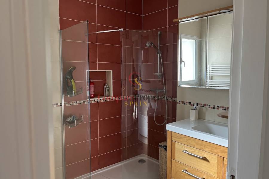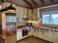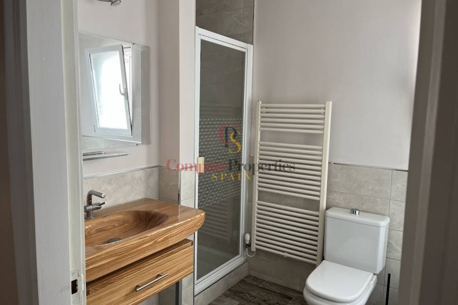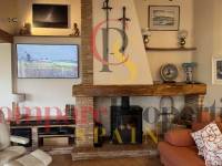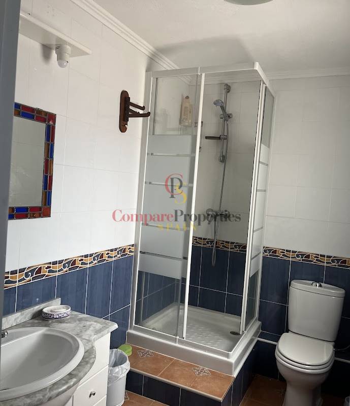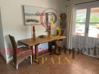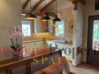 Binnen vindt u een open keuken, eetkamer en woonkamer met hoge plafonds en zichtbare houten balken, wat zorgt voor een lichte en ruime sfeer. De hoofdslaapkamer heeft een nieuwe laminaatvloer, airconditioning en een eigen badkamer met inloopdouche, wastafelmeubel, toilet en bidet. Er zijn nog twee dubbele slaapkamers en een familiebadkamer met ligbad en douche. Een houtkachel met geïntegreerde boiler (29 kW) voorziet samen met 14 radiatoren het gehele huis en appartement van verwarming.