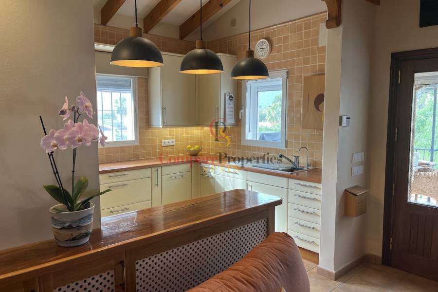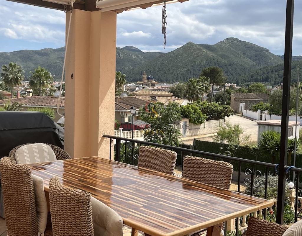 De bovenverdieping beschikt over een ruim overdekt naya-terras met een adembenemend uitzicht over het dorp Jalon – perfect voor buiten dineren of ontspannen.