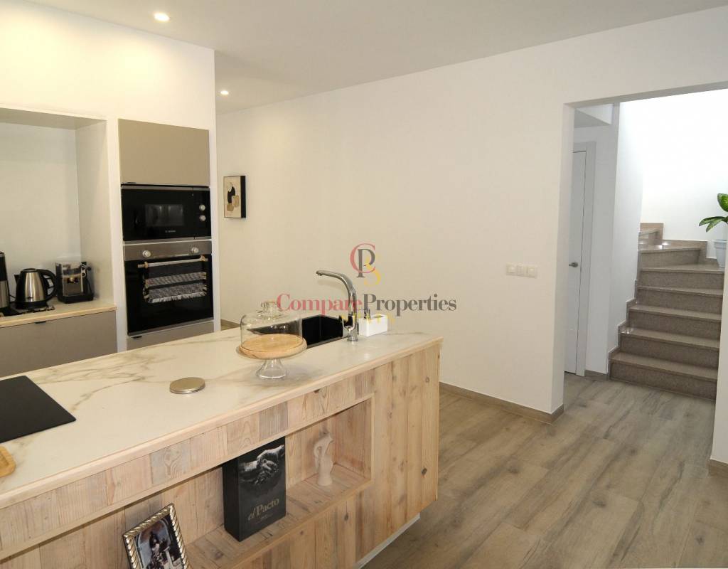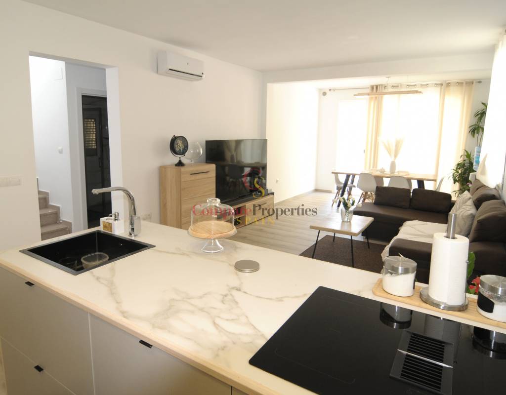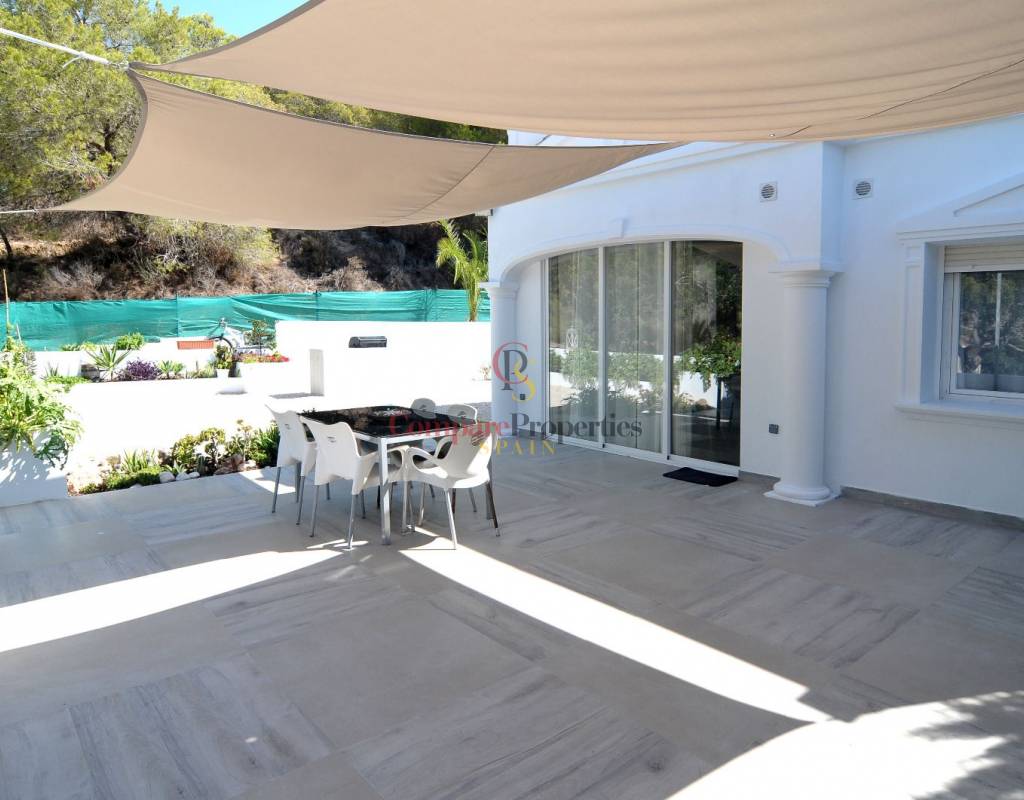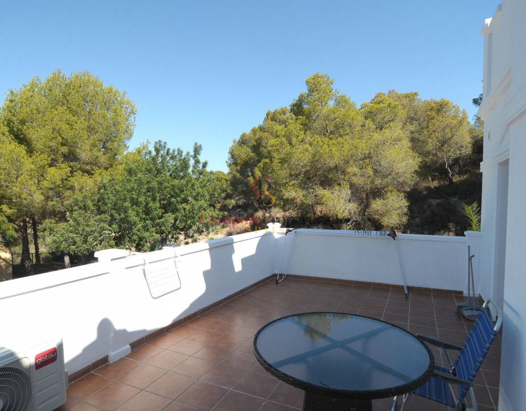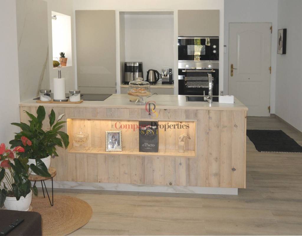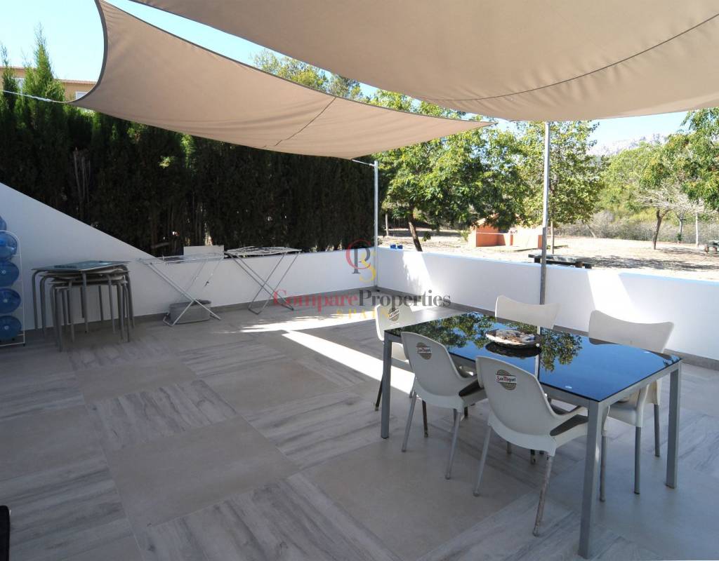 Deze woning beschikt over een prachtig open terras met uitzicht op de bergen, waar ook een kleine keuken is ingericht.