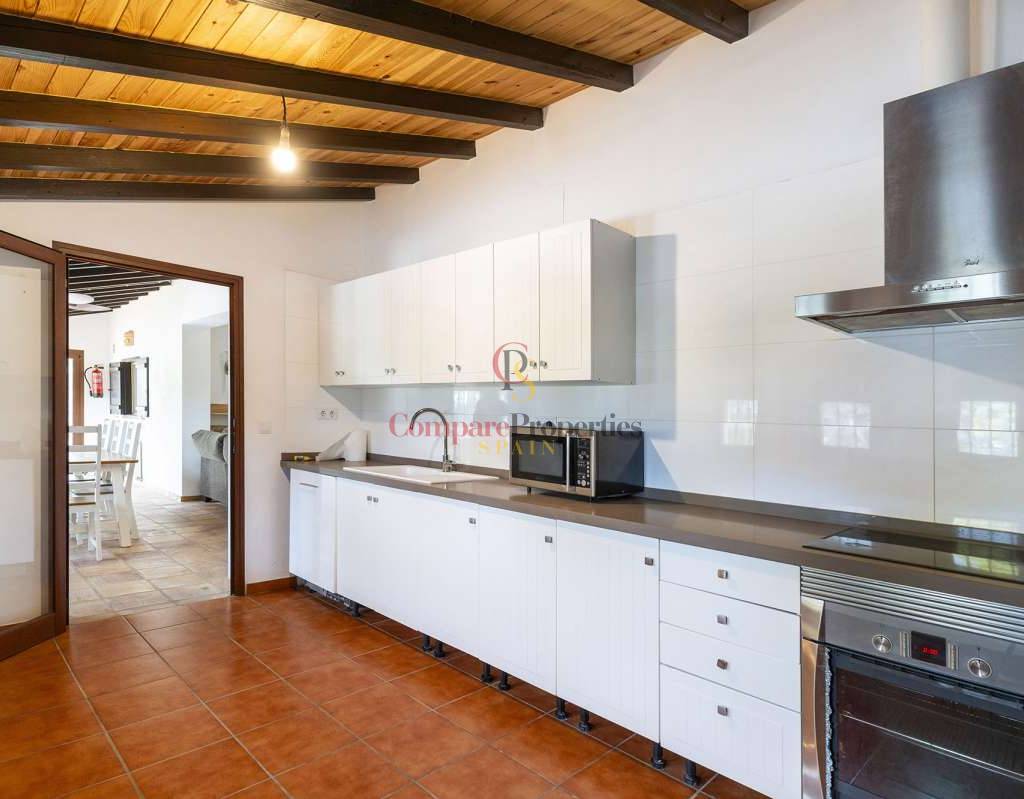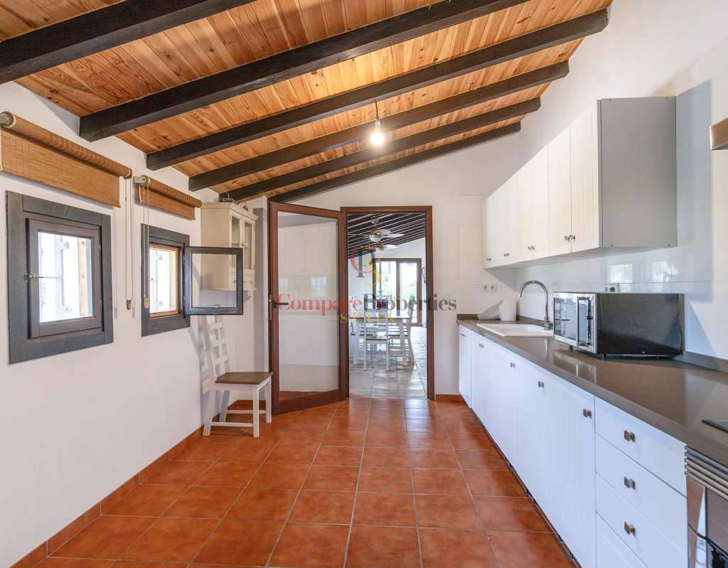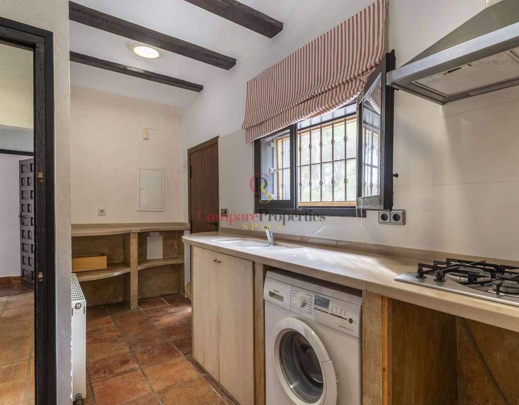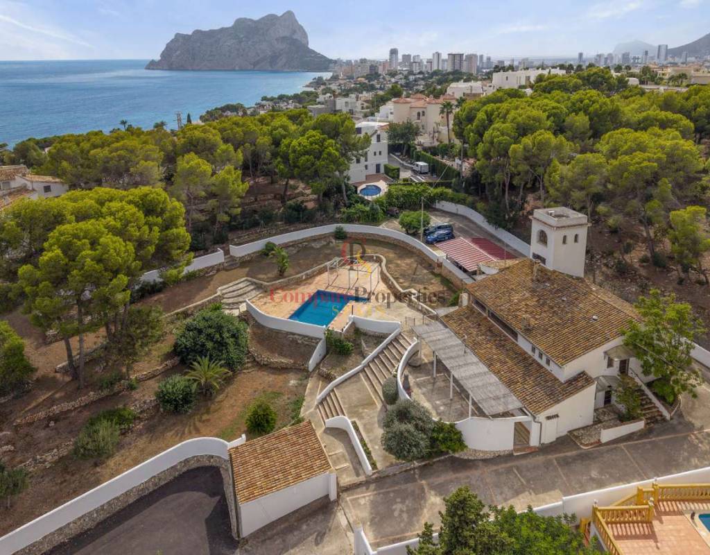 [Mediterrane villa met zeezicht en totale privacy in La Fustera][BR][BR] Hoofdgebouw[BR] De hoofdwoning verwelkomt u met een lichte eetkamer omgeven door grote ramen, met een prachtig uitzicht op de bomen, de bergen en de zee. De woonkamer heeft een gezellige open haard - perfect voor warme winteravonden - en staat in verbinding met een volledig uitgeruste keuken en twee comfortabele slaapkamers met een gedeelde badkamer.[BR][BR] Een gasverwarmingssysteem zorgt het hele jaar door voor comfort.[BR] Een tweede servicekeuken, ideaal voor catering of gebruik als wasruimte, staat in verbinding met de gang die leidt naar de master suite, met directe toegang tot het terras en een en-suite badkamer.[BR][BR] Bovenverdieping[BR] Een trap leidt naar het bovenste gedeelte van het huis, waar een badkamer en een lichte multifunctionele ruimte wachten. Overspoeld met natuurlijk licht en met een panoramisch uitzicht op de zee, het omliggende groen en de iconische Peñón de Ifach, is deze ruimte perfect voor gebruik als thuiskantoor of kunststudio.[BR][BR] Benedenverdieping[BR] De benedenverdieping omvat twee onafhankelijke appartementen, ideaal voor gasten of verhuurmogelijkheden.[BR][BR] Het eerste appartement beschikt over een ruime hal, een slaapkamer, een master suite met een en-suite badkamer en een keuken met een aparte ingang.[BR][BR] Het tweede appartement omvat een slaapkamer en een badkamer, beide met directe toegang tot het terras, de barbecueplek en het zwembad.[BR][BR] Buitenleven[BR] De buitenkant is ontworpen voor ontspanning en entertainment, omgeven door volwassen mediterrane beplanting. De grote terrassen en het privézwembad bieden de perfecte omgeving voor familiebijeenkomsten, dineren in de buitenlucht of gewoon genieten van de rustige omgeving en de zeebries.