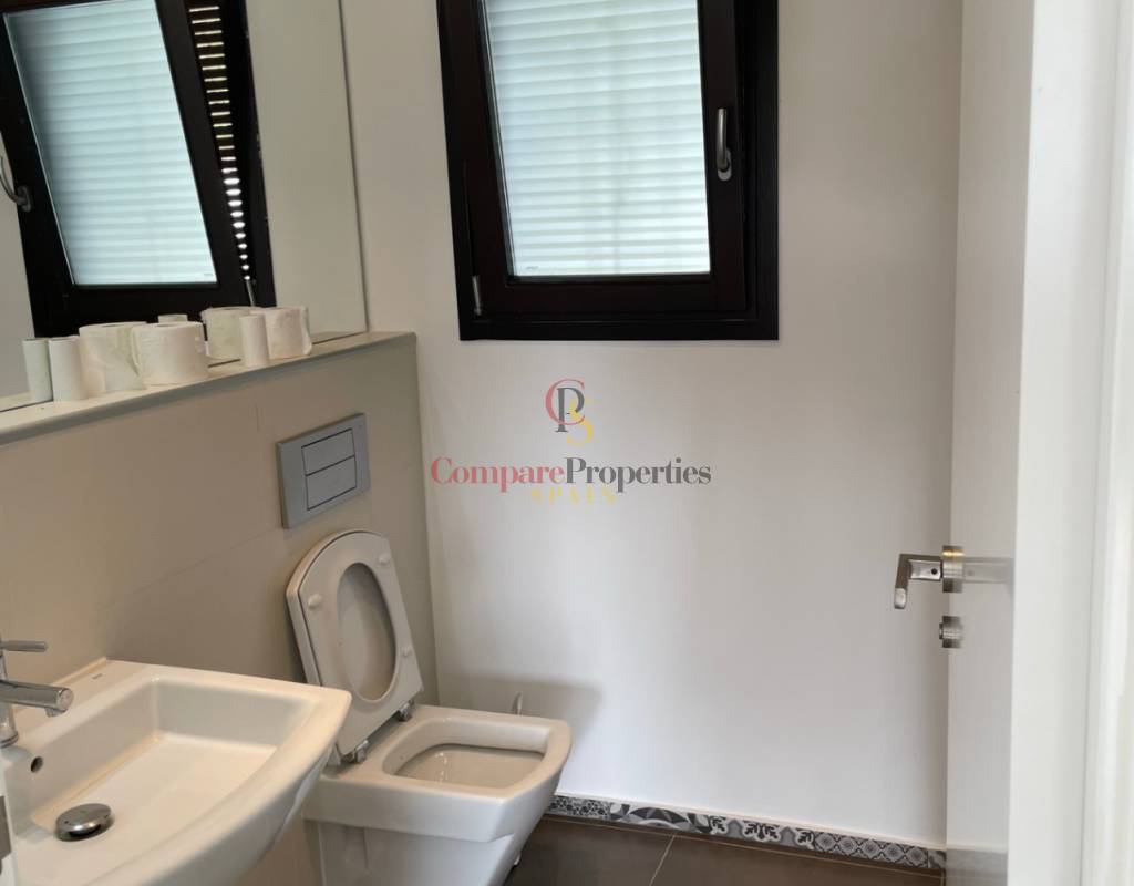 De bovenverdieping, die toegankelijk is via een interne trap, heeft 2 slaapkamers, 1 badkamer en een zonneterras met prachtig uitzicht op zee.