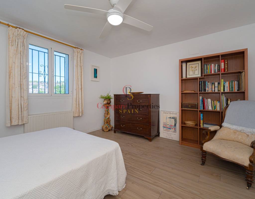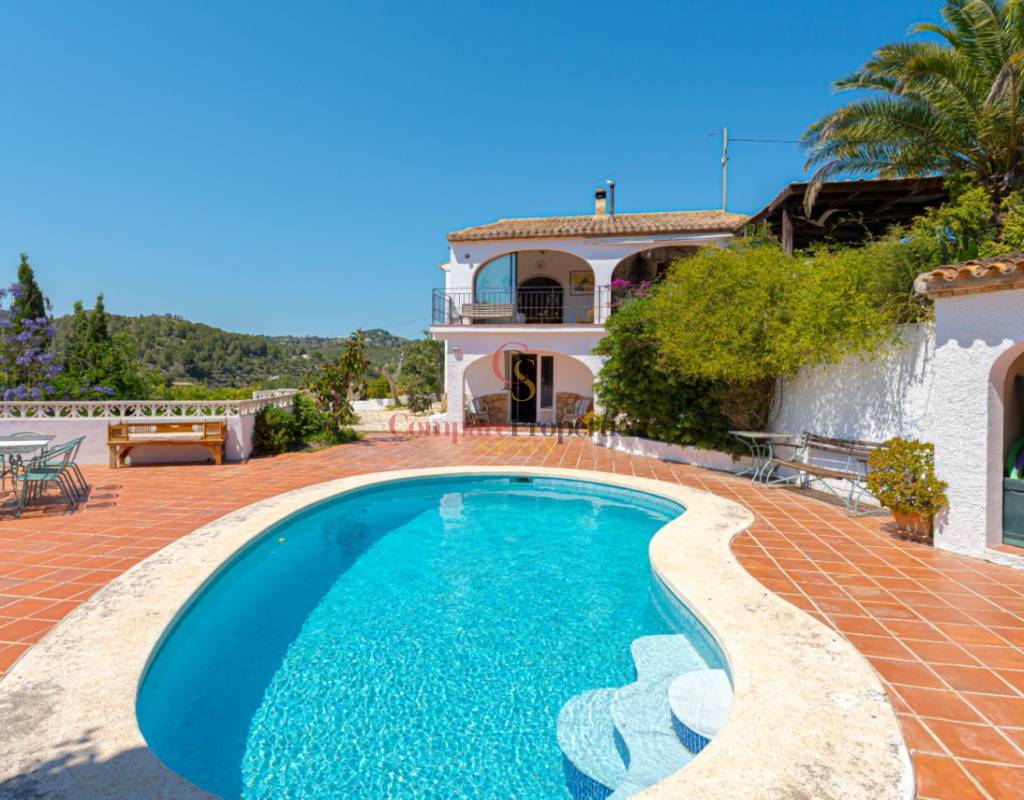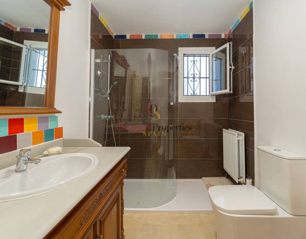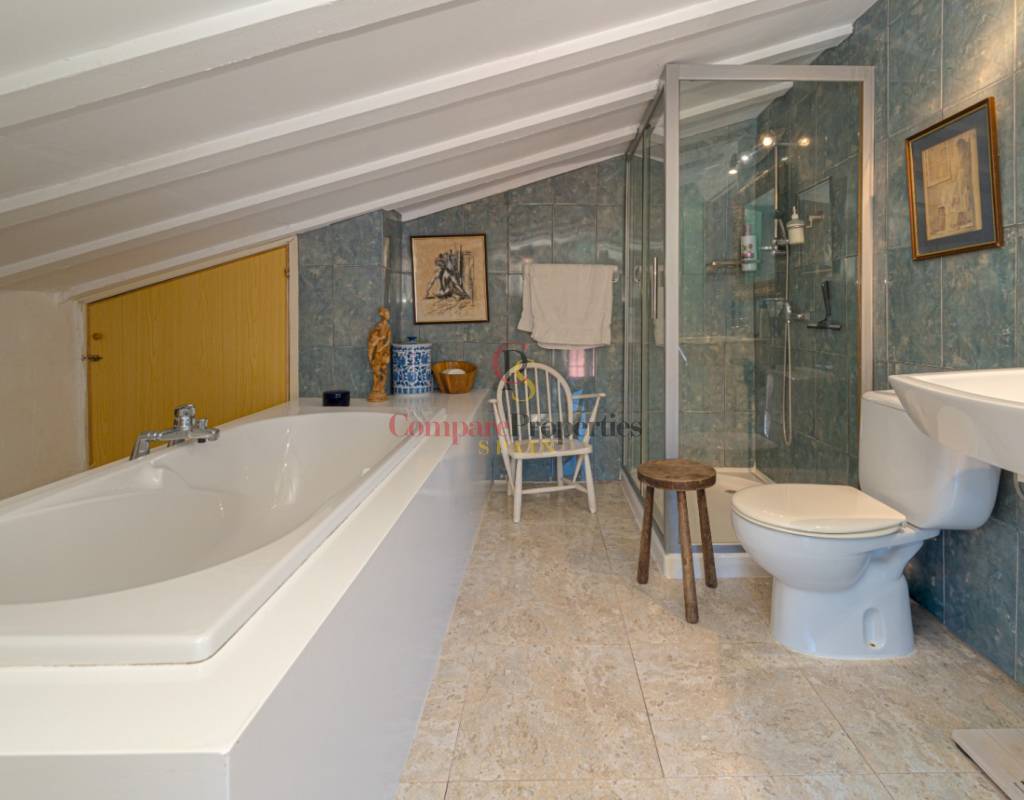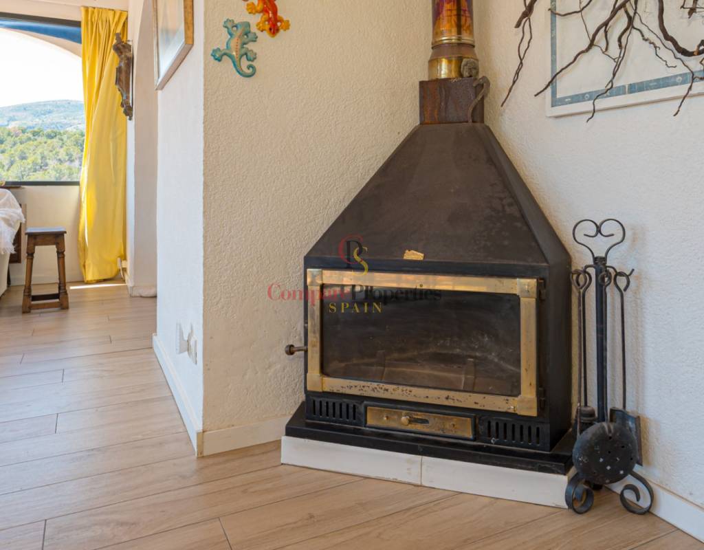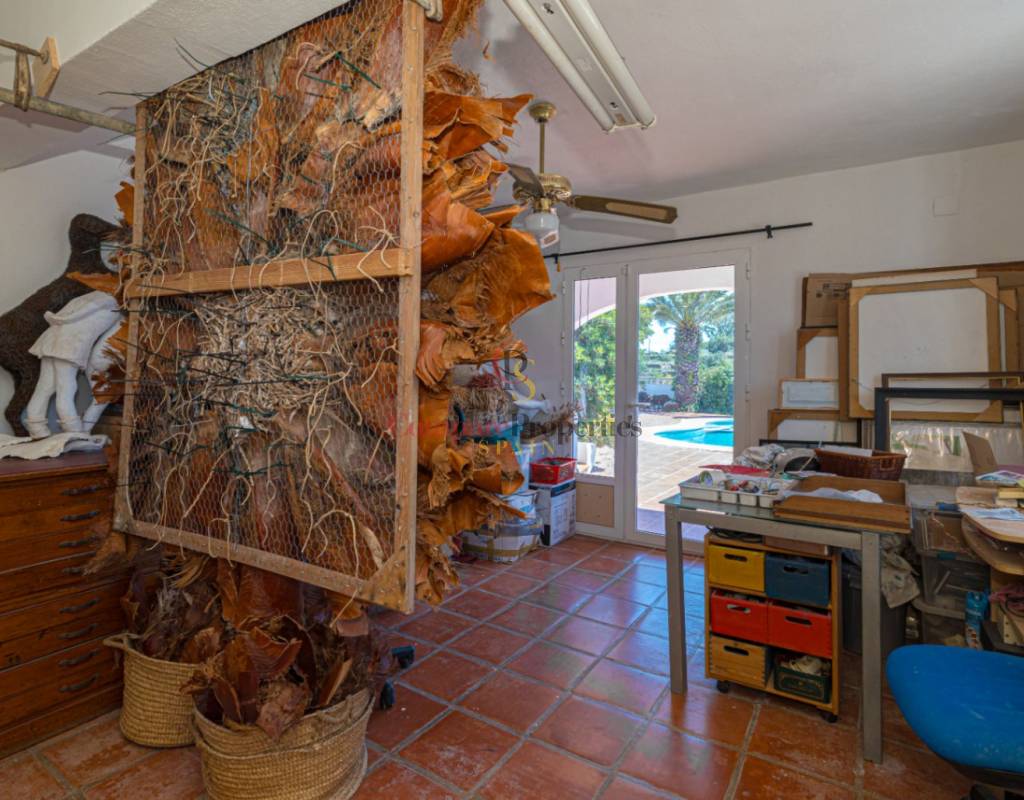 Prachtige vrijstaande landelijke woning op het zuiden met spectaculair uitzicht op de bergen, gelegen op een zeer rustige locatie op het platteland, maar toch op slechts 10 minuten rijden van de steden Benissa en Calpe. Deze unieke woning in finca-stijl heeft een rustieke charme en is recentelijk gemoderniseerd met ruime accommodatie, bestaande uit een open overdekte chill-out naya met dubbele openslaande deuren naar een glazen overdekte naya met hoge balkenplafonds, een houtkachel, twee plafondventilatoren, grote schuifdeuren naar een open zonneterras met prachtig panoramisch uitzicht op de bergen op het zuiden, een grote lichte en luchtige open woonkamer van 90 m² met eethoek met houtkachel, houten balkenplafonds, twee plafondventilatoren en een volledig ingerichte keuken met aga-fornuis en ontbijtbar. Een gang leidt naar twee tweepersoonsslaapkamers en een familiedouche. Een trap leidt naar de master bedroom suite, met schuine plafonds, een ensuite badkamer met een bad en een aparte inloopdouche, en extra grote opslagruimtes. Vanuit de woonkamer leidt een interne trap naar beneden naar een zelfstandig appartement met twee slaapkamers, een familiedouche, een volledig ingerichte keuken en een chill-out eetkamer, met openslaande deuren naar een eigen overdekte naya die leidt naar het zonneterras bij het zwembad. Buiten vindt u een prachtig niervormig zwembad met een groot zonneterras en een barbecuecasita. Het prachtige perceel van 4389 m² heeft een werkplaats/opslagruimte, twee privéopritten, één met een dubbele garage en de andere met een dubbele carport, en voldoende parkeergelegenheid voor een wagenpark of campers. Het pand heeft stallen met een vlakke weide voor paarden en is de ideale uitvalsbasis om te paardrijden of met de hond te wandelen door het prachtige landschap. Het pand is voorzien van dubbele beglazing, centrale verwarming met olieradiatoren en zou een perfecte permanente gezinswoning zijn. Deze woning heeft veel bijzondere kenmerken en biedt een werkelijk spectaculair uitzicht op het zuiden. Om de rustige en vredige omgeving ten volle te kunnen waarderen, is een persoonlijke bezichtiging essentieel.