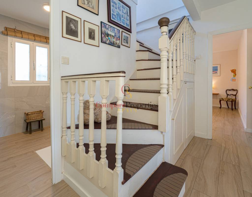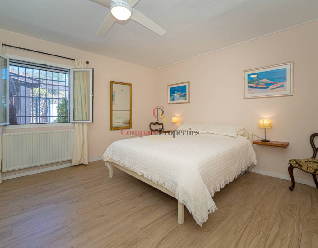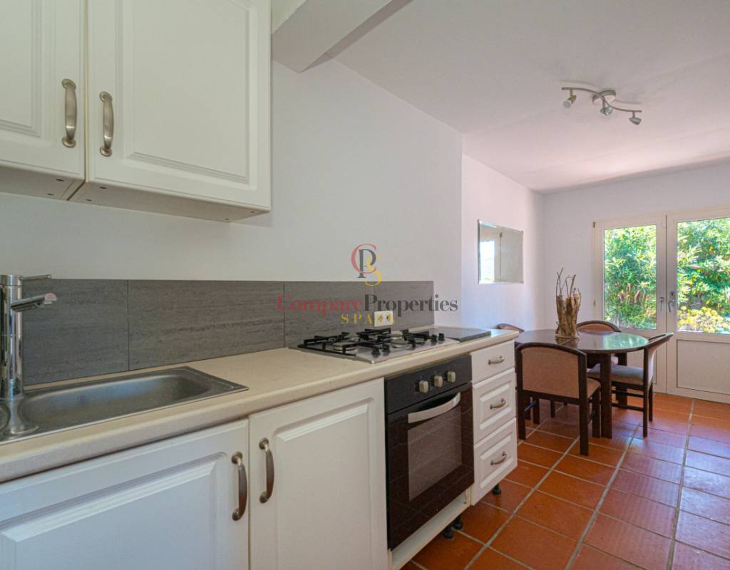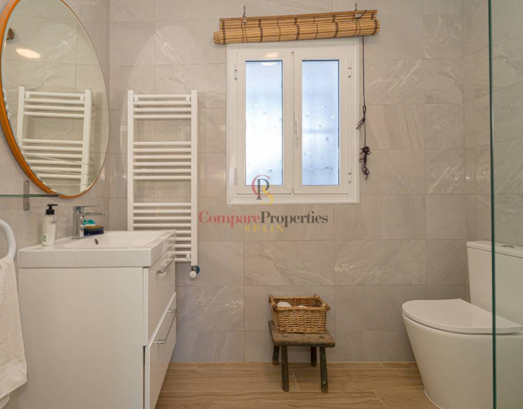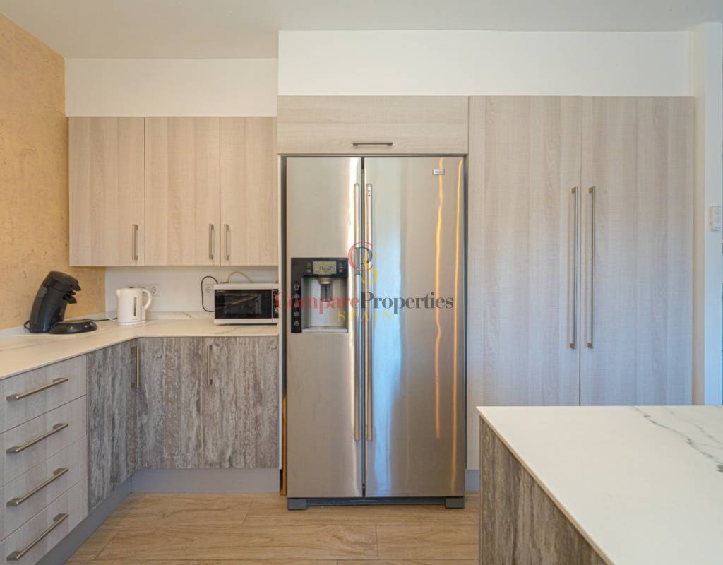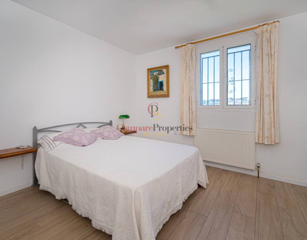 Prachtige vrijstaande landelijke woning op het zuiden met spectaculair uitzicht op de bergen, gelegen op een zeer rustige locatie op het platteland, maar toch op slechts 10 minuten rijden van de steden Benissa en Calpe. Deze unieke woning in finca-stijl heeft een rustieke charme en is recentelijk gemoderniseerd met ruime accommodatie, bestaande uit een open overdekte chill-out naya met dubbele openslaande deuren naar een glazen overdekte naya met hoge balkenplafonds, een houtkachel, twee plafondventilatoren, grote schuifdeuren naar een open zonneterras met prachtig panoramisch uitzicht op de bergen op het zuiden, een grote lichte en luchtige open woonkamer van 90 m² met eethoek met houtkachel, houten balkenplafonds, twee plafondventilatoren en een volledig ingerichte keuken met aga-fornuis en ontbijtbar. Een gang leidt naar twee tweepersoonsslaapkamers en een familiedouche. Een trap leidt naar de master bedroom suite, met schuine plafonds, een ensuite badkamer met een bad en een aparte inloopdouche, en extra grote opslagruimtes. Vanuit de woonkamer leidt een interne trap naar beneden naar een zelfstandig appartement met twee slaapkamers, een familiedouche, een volledig ingerichte keuken en een chill-out eetkamer, met openslaande deuren naar een eigen overdekte naya die leidt naar het zonneterras bij het zwembad. Buiten vindt u een prachtig niervormig zwembad met een groot zonneterras en een barbecuecasita. Het prachtige perceel van 4389 m² heeft een werkplaats/opslagruimte, twee privéopritten, één met een dubbele garage en de andere met een dubbele carport, en voldoende parkeergelegenheid voor een wagenpark of campers. Het pand heeft stallen met een vlakke weide voor paarden en is de ideale uitvalsbasis om te paardrijden of met de hond te wandelen door het prachtige landschap. Het pand is voorzien van dubbele beglazing, centrale verwarming met olieradiatoren en zou een perfecte permanente gezinswoning zijn. Deze woning heeft veel bijzondere kenmerken en biedt een werkelijk spectaculair uitzicht op het zuiden. Om de rustige en vredige omgeving ten volle te kunnen waarderen, is een persoonlijke bezichtiging essentieel.