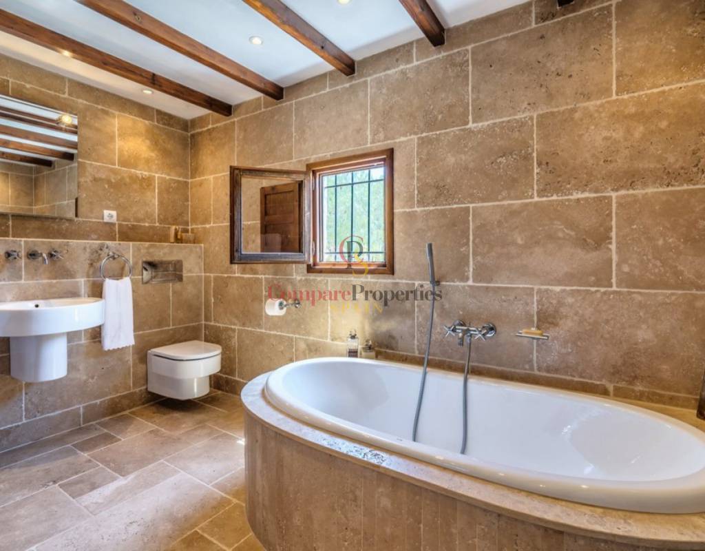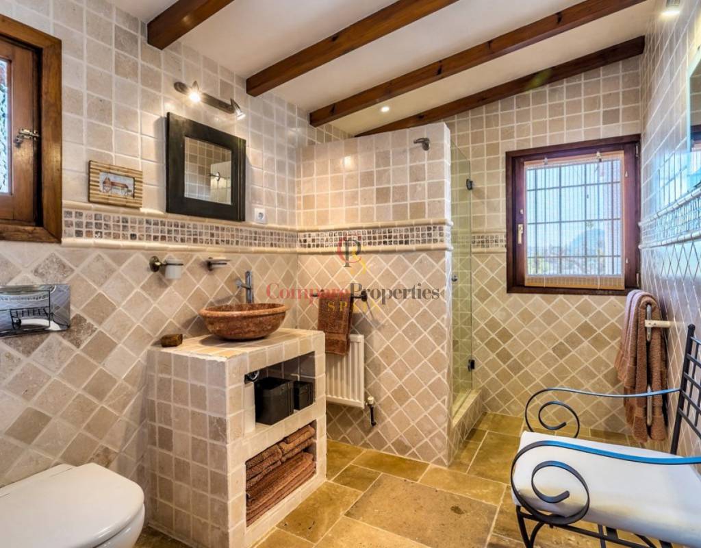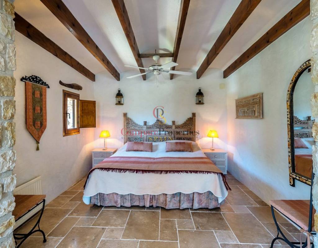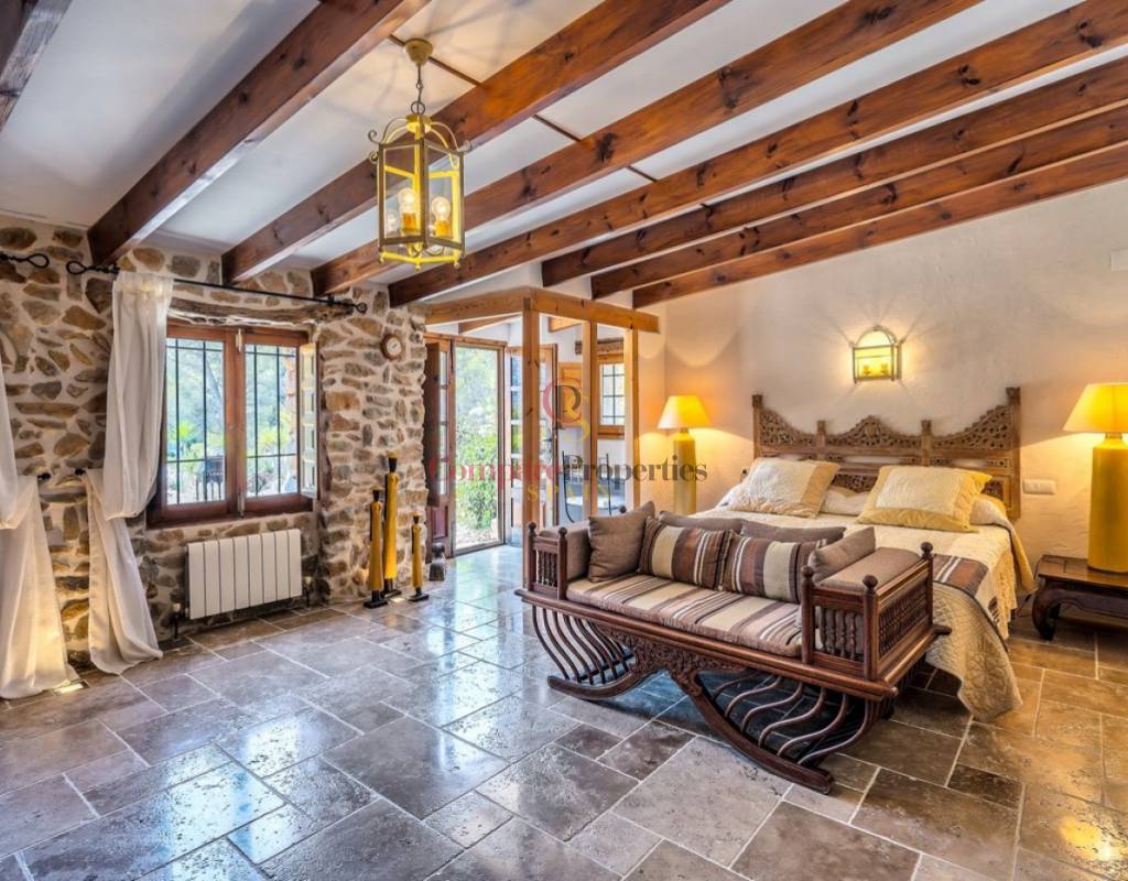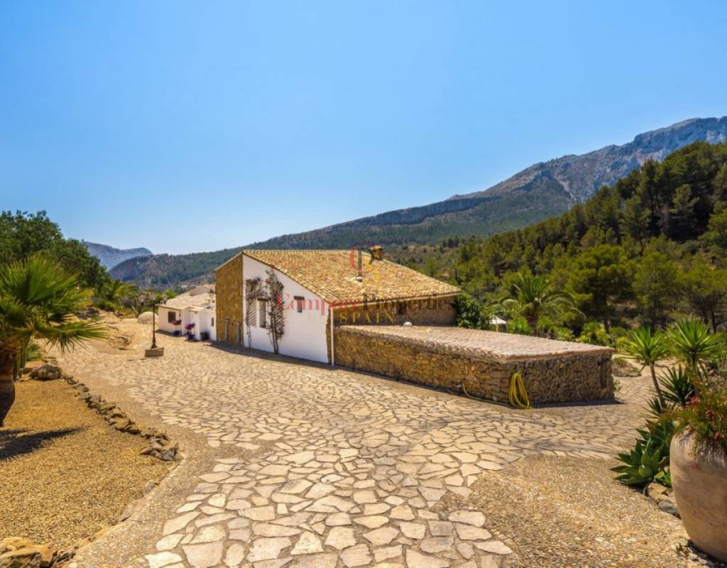 UTTERLY CHARMING COUNTRY HOUSE FOR SALE IN PINOS, TRADITIONAL FINCA BEAUTIFULLY RESTORED TO THE HIGHEST QUALITY AND TASTE.. . Ideal family residence that has been renovated into a stylish luxury property preserving many of the original features and using only the highest quality materials. Featuring the marble clad kitchen, a very large spacious lounge, glazed naya, totally private 10x5m curved shaped pool, five large double bedrooms and five bathrooms set on a rural plot of over 28 thousand square metres nestled in the valley beside the Sierra de Bernia mountain range. Landscaped gardens around the house with many different seating areas to enjoy the sun or shade all year round whilst taking in the breathtaking views that surround. There is also a separate outbuilding that would make an ideal office or studio with a large window also giving unrivalled views across the valley.. . The ground floor features the courtyard, the kitchen straight from a magazine, the generous lounge, separate dining room, three of the bedrooms two with en-suite bathrooms and one with separate door to another terrace, glazed naya and the large terrace looking out over the pool. A few steps down to the separate pool terrace below.. . On the upper floor is the master bedroom with own private terrace and the fifth bedroom, both with en-suite bathrooms and all 5 bedrooms have large fitted wardrobes. . . An ample area around the house has been very tastefully landscaped in keeping with the local area with mature native plants and trees, many seating areas and terraces, a log fired bread oven and a feature water-fall only adding to the beauty all around. Open and unrestricted views of the surrounding valleys and mountains can be enjoyed from all areas around the garden and in particular the terraces.. . The ideal getaway property for a discerning buyer seeking tranquility and a real feel of the countryside yet withing walking distance of several bars and restaurantes and only a short drive away from "civilisation!". . Viewing this property will leave you speechless.