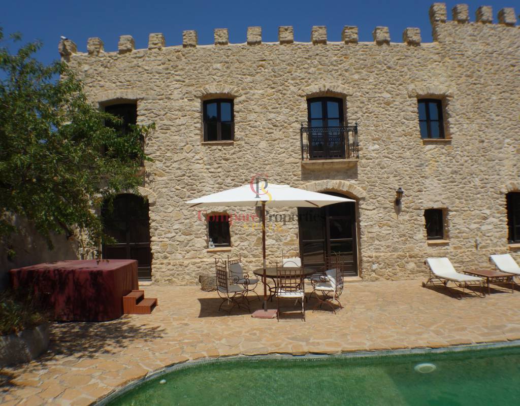A luxury villa/castle on a plot of 430.000m2 The original house of 120 years old has the signature of a medieval Castle. The castle is build up again by using natural stones and respecting the original state. For then reconstruction they used for instance old oak beams from an old french Castle. Some of the original towers are been brought back in their original state using the already mentioned natural stones. The inside doors our collected by different antiquaires and the floors tiles are handmade. The central heating with and antique design are from ROCA The italian designed kitchen is the only please where modernism melt in the original design . Outside you enjoy an big terrace also in natural stone and a view to the swimming pool. The 420.000m2 of land guarantees you total privacy. For the really exclusive privacy, there is also foreseen an heli-platform. But most of all, enjoy the unique feeling you are the king of this castle. ( if you want to visit this unique property, a small personal screening of the possible buyers will be done )