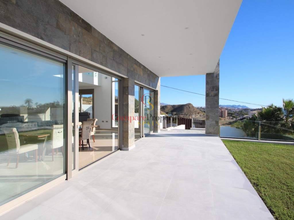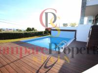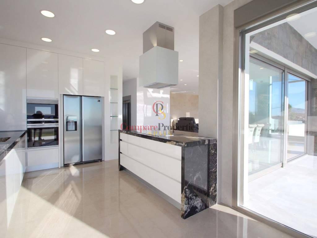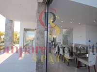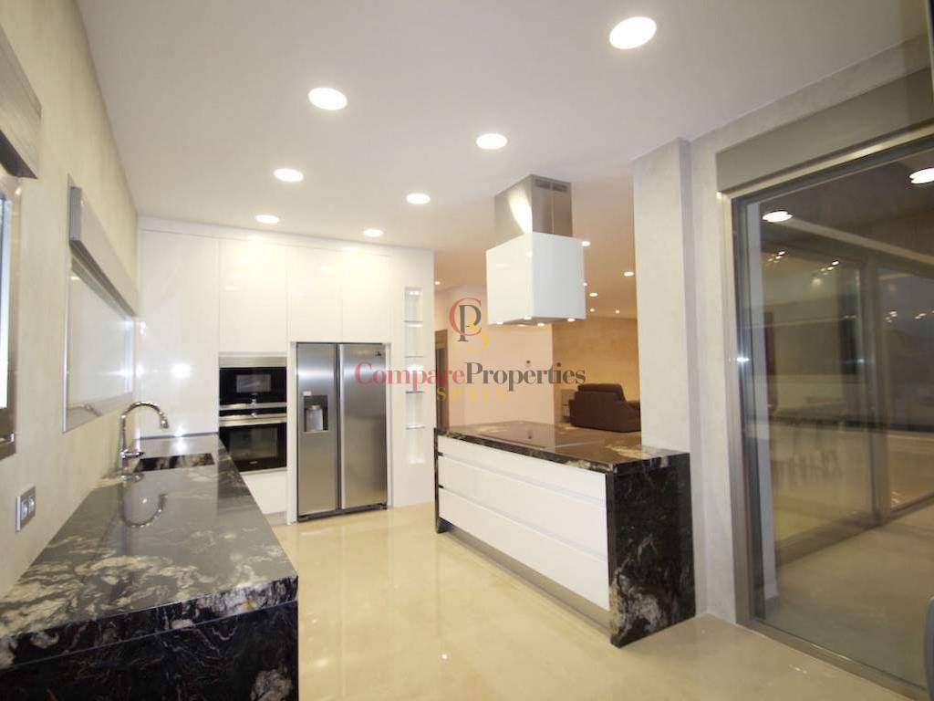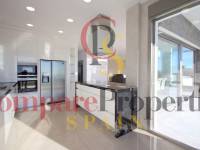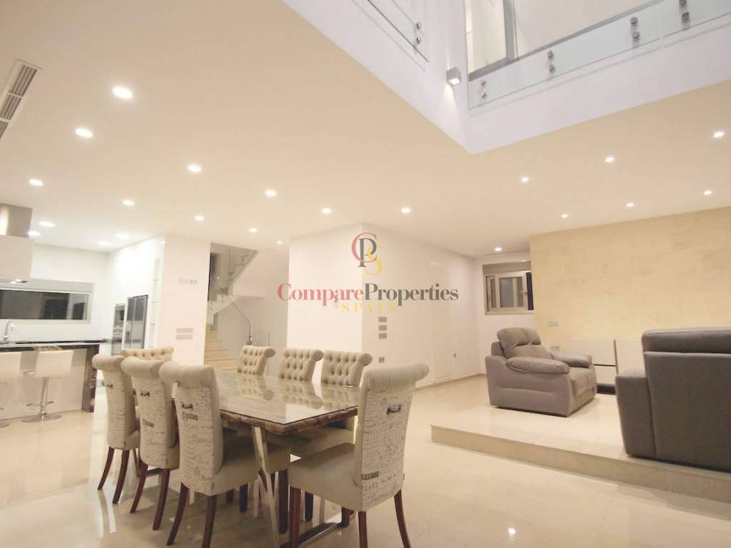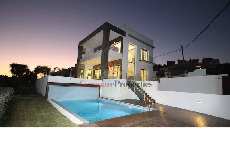 The villa with 4 bedrooms and 4 bathrooms has quality materials, marble floors, elevator, underfloor heating and lot of natural light. In the ground floor there is the complete kitchen, living room, 1 bedroom, 1 bathroom and access to the fantastic terrace and pool. In the first floor there are the 3 bedrooms with 3 bathrooms, and terrace. It also has a spacious garage for 4 cars, storageroom, laundry and bathroom. From the roof terrace you have a panoramic see views. Partially furnished. You have to see it!
