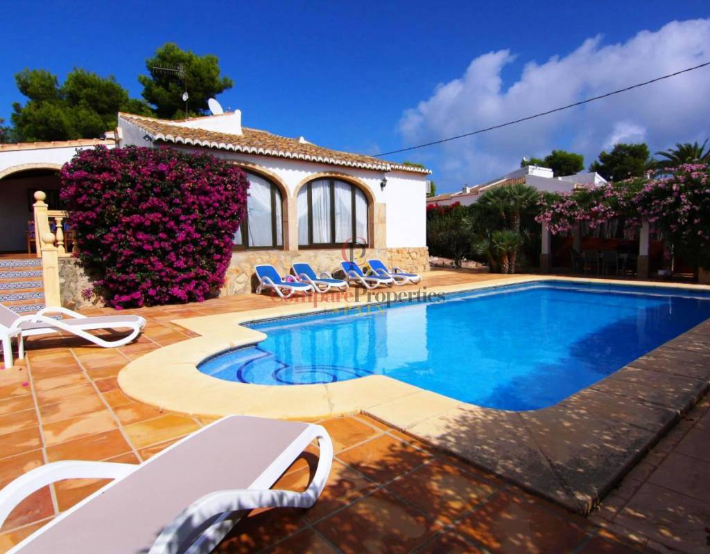 Charming villa for sale in Jávea, all on one level with traditional and modern touches in a tranquil cul--de-sac with a wonderful 10x5 swimming pool, mature mediterranean garden and lot's of parking, including a private garage.