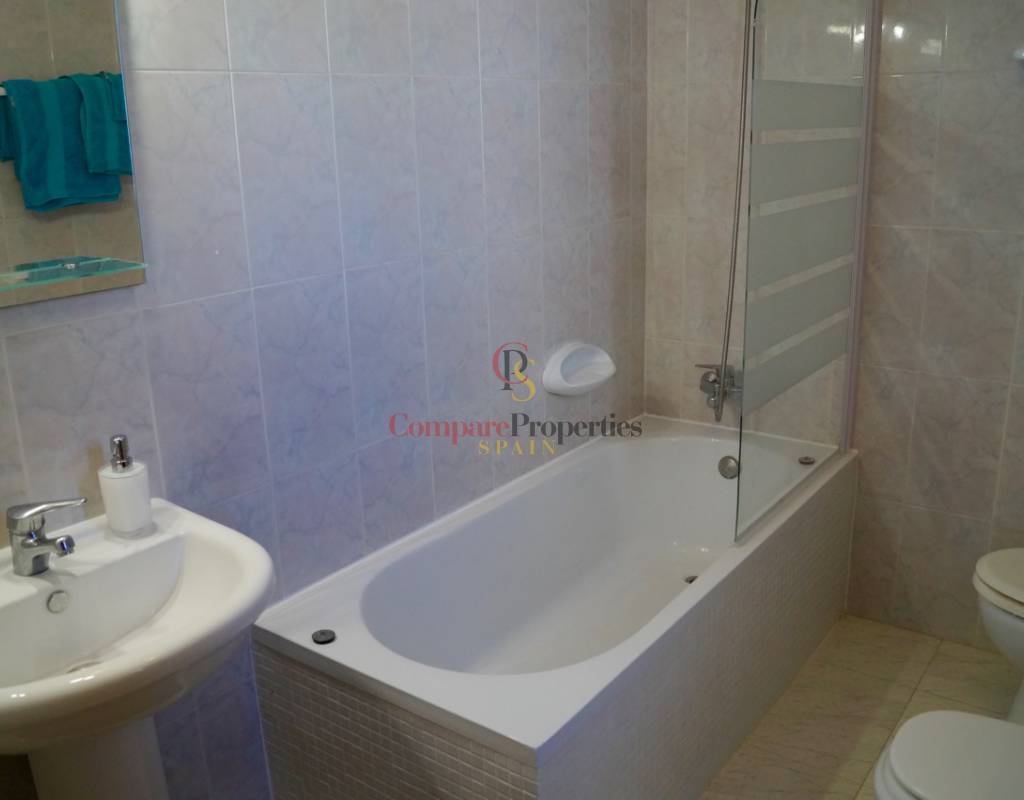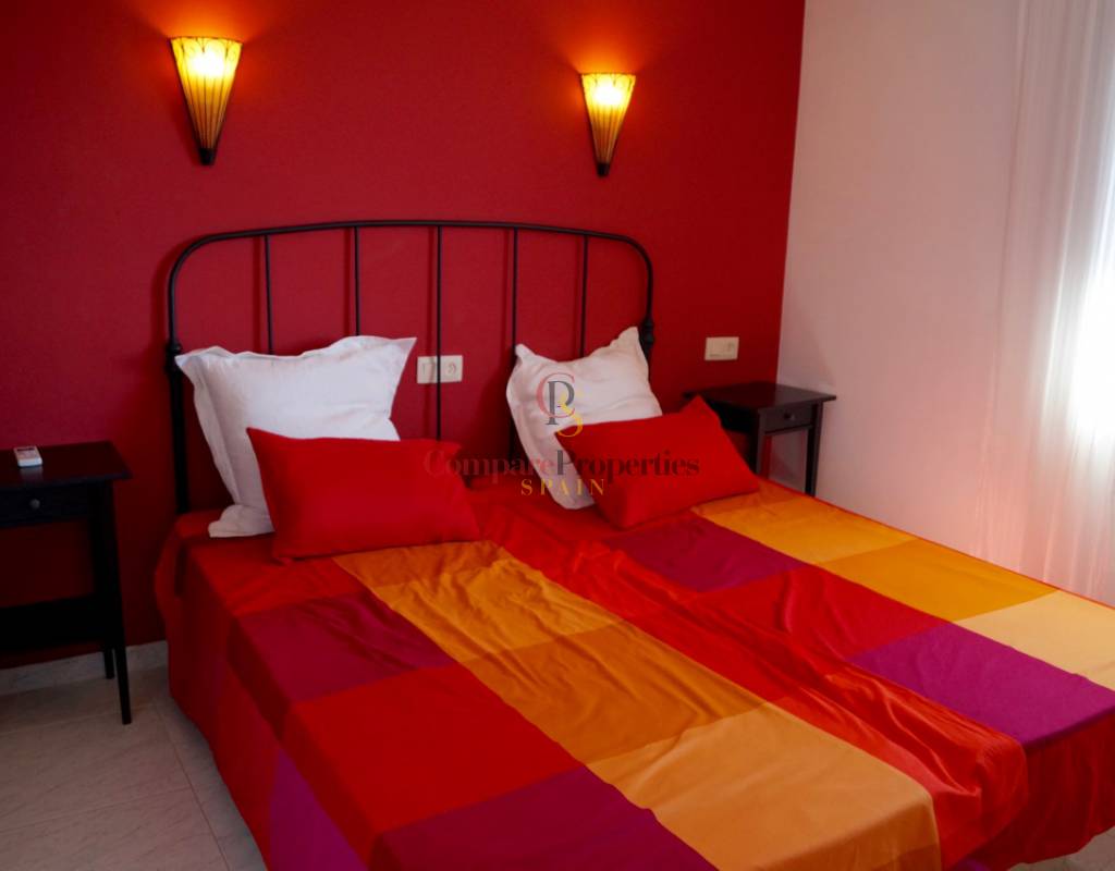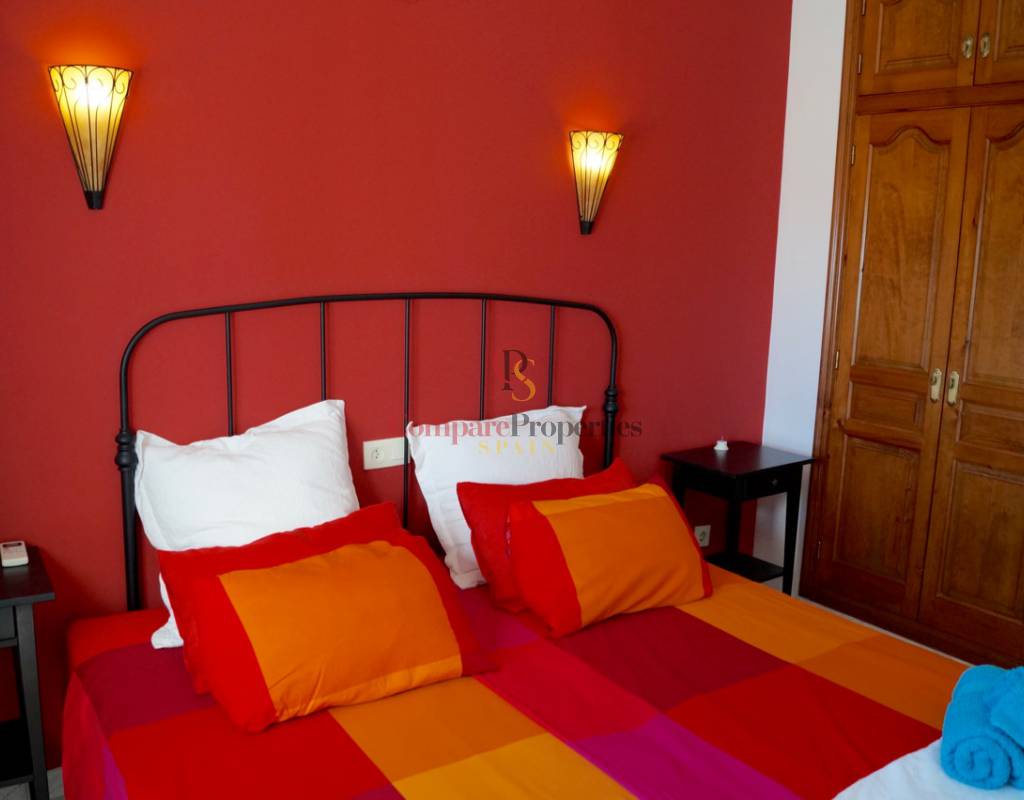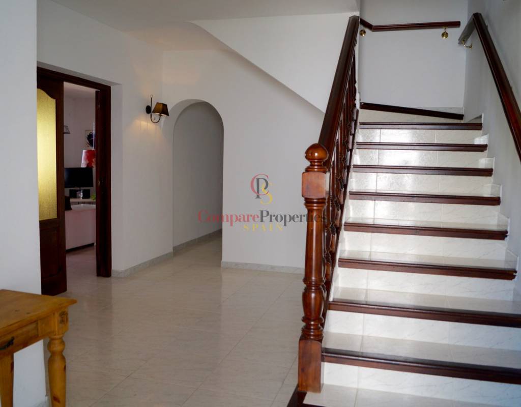 On the ground floor there is a spacious living/dining room with a fireplace and access to the large Naya which gives you fantastic views over the South facing swimming pool and terrace. Off the hallway there is a separate fully equipped kitchen, from the hallway you reach a double bedroom and the bathroom.