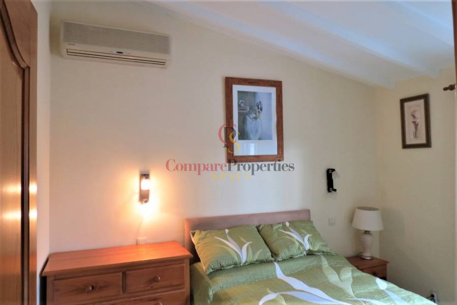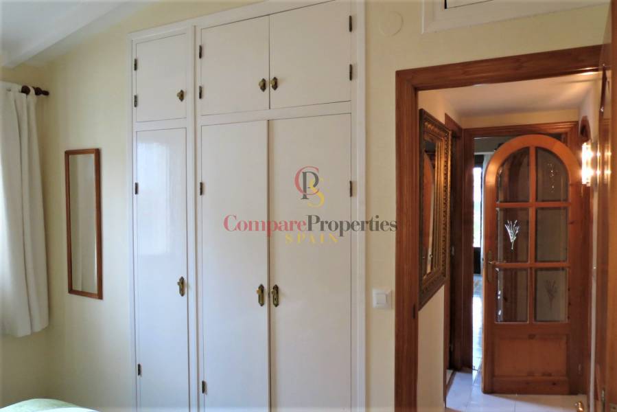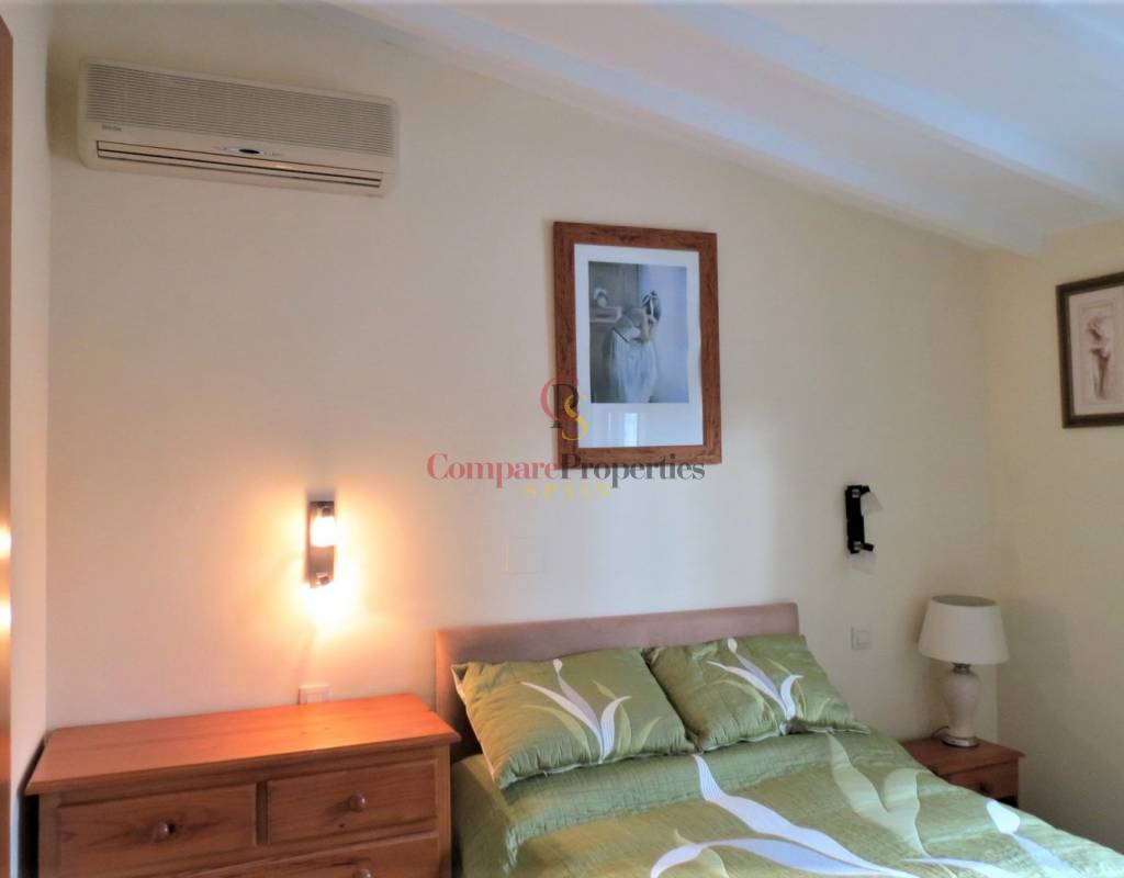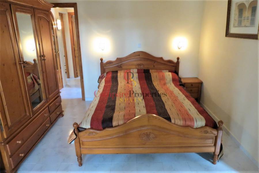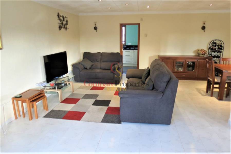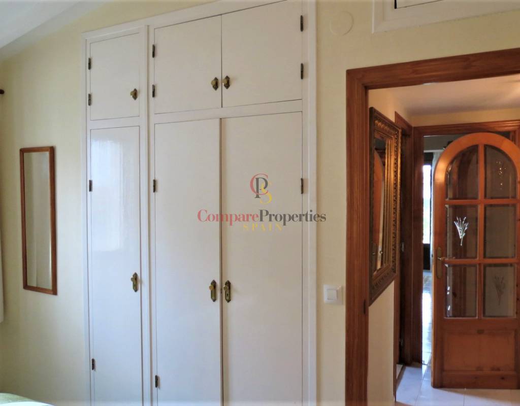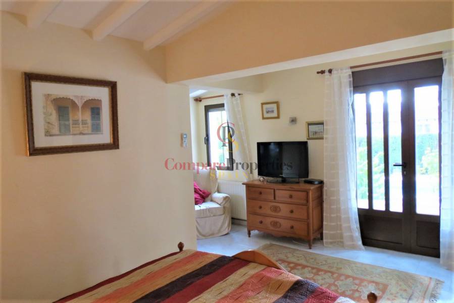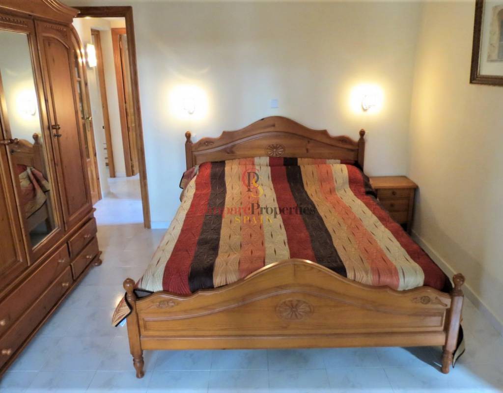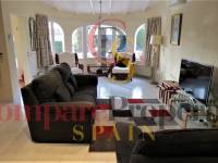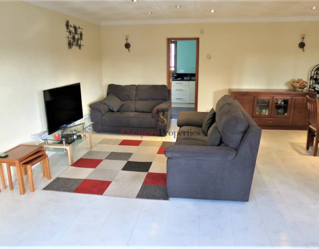 This lovely "all on one level" villa is for sale in La Sabatera, walking distance to a small shopping centre. This well maintained property is situated in a quiet residential street only 2.6km to the beaches, marina and town centre of Moraira. You enter the gated driveway into a parking area for 3-4 cars with a garage located underneath the off-road parking place at street level. The property has a beautiful mature garden with many seating areas around the villa. You enter the villa into a small glazed naya looking out over the garden and pool and then enter a spacious L-shaped living/dining room with a corner fireplace and integrated wood-burner in the dining area. At the back of the living room there is a superb fully fitted kitchen, four years old, with white units and black granite worktops, with a door leading into the garden. Off the dining area there is a small hallway, here you will find bedroom 3 which is the smallest with a freestanding wardrobe, bedroom 2 which has built-in wardrobes and the house bathroom which includes a vanity unit and a bath including shower attachment. At the end of the hallway is the large master bedroom which has freestanding wardrobes, a dressing area, an en-suite shower room with vanity unit and glass doors leading out into the terrace. Externally the property has a private pool terrace with pool shower, an easy maintenance garden with palms and fruit trees, a summer kitchen with alfresco dining area, a barbecue area with dining terrace, a large storeroom, a covered wood storage area under the gas bottle casita at street level and a boiler room. - Key points:- Built: 1978 and well maintained- Total construction: 154m2, to be confirmed- Plot: 1050m2- Orientation: South- Insulated roof- Double glazed windows- Gas central heating- Air conditioning in the living room, bedroom 2 and the master bedroom- Renovated bathrooms- Renovated kitchen includes gas hob, extractor, integrated dishwasher, integrated fridge/freezer, single oven, concealed microwave and lots of storage space- Internet and satellite television available- Furniture negotiable- Annual taxes to follow- This beautiful villa will sell fast, do not miss this opportunity!- There is also a Nissan car available to purchase