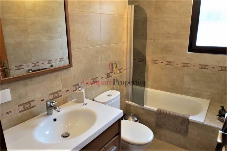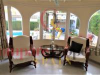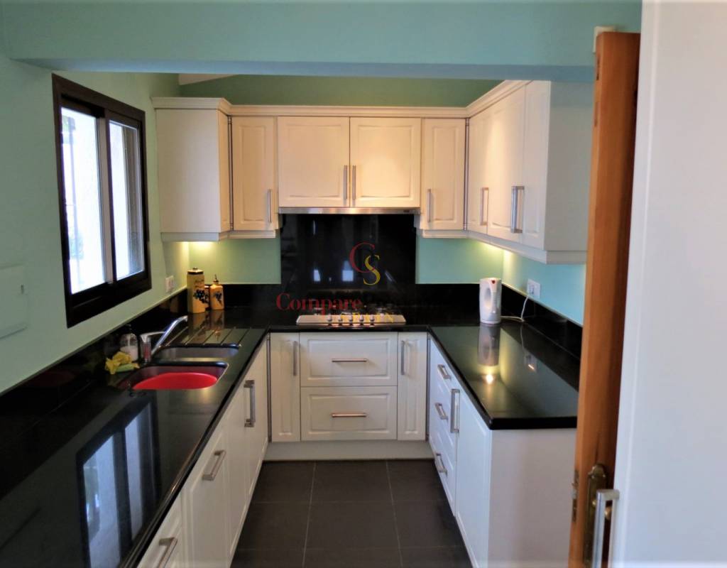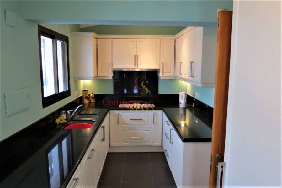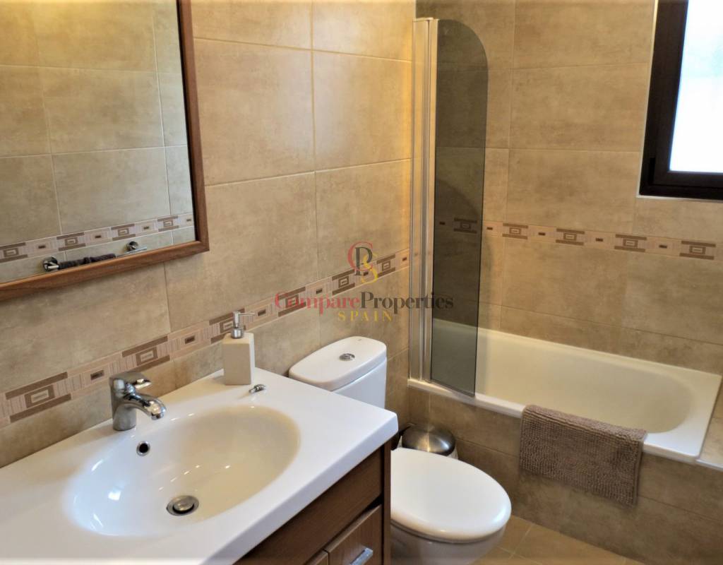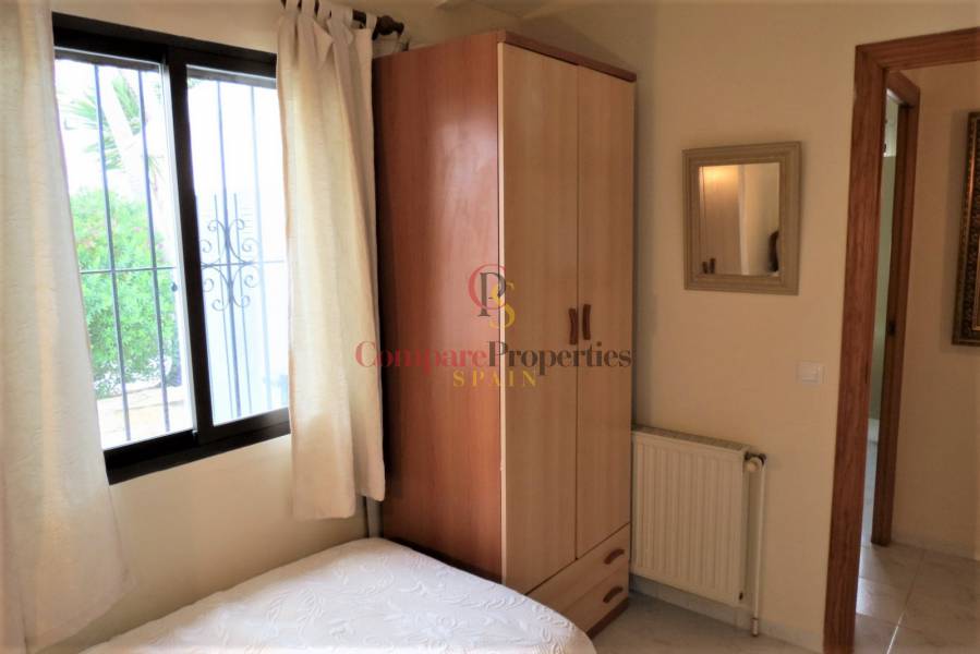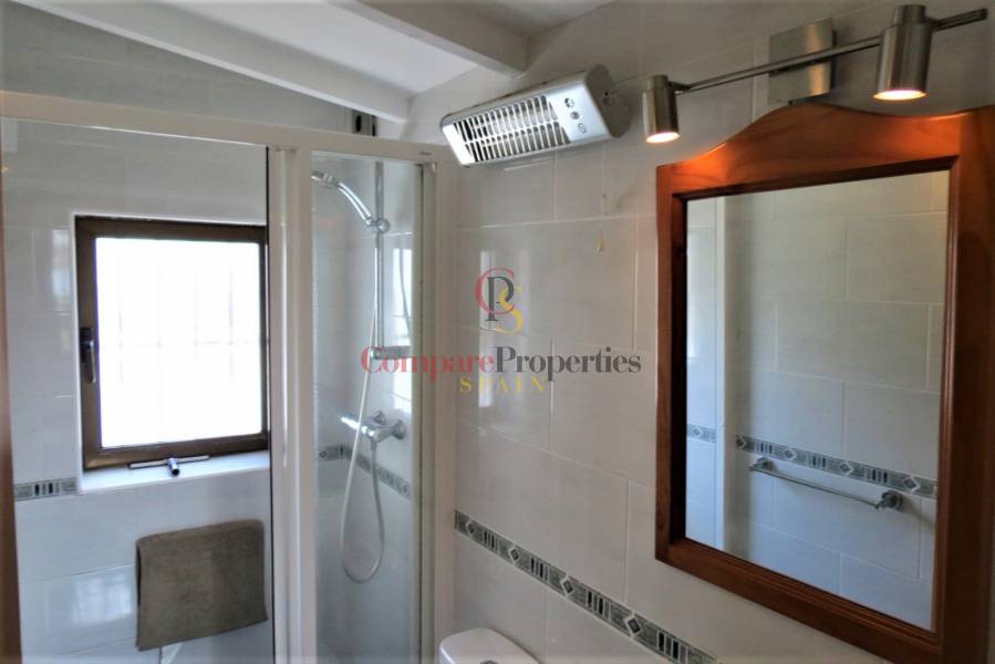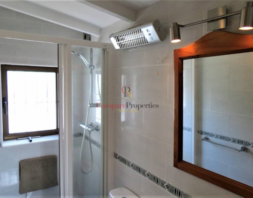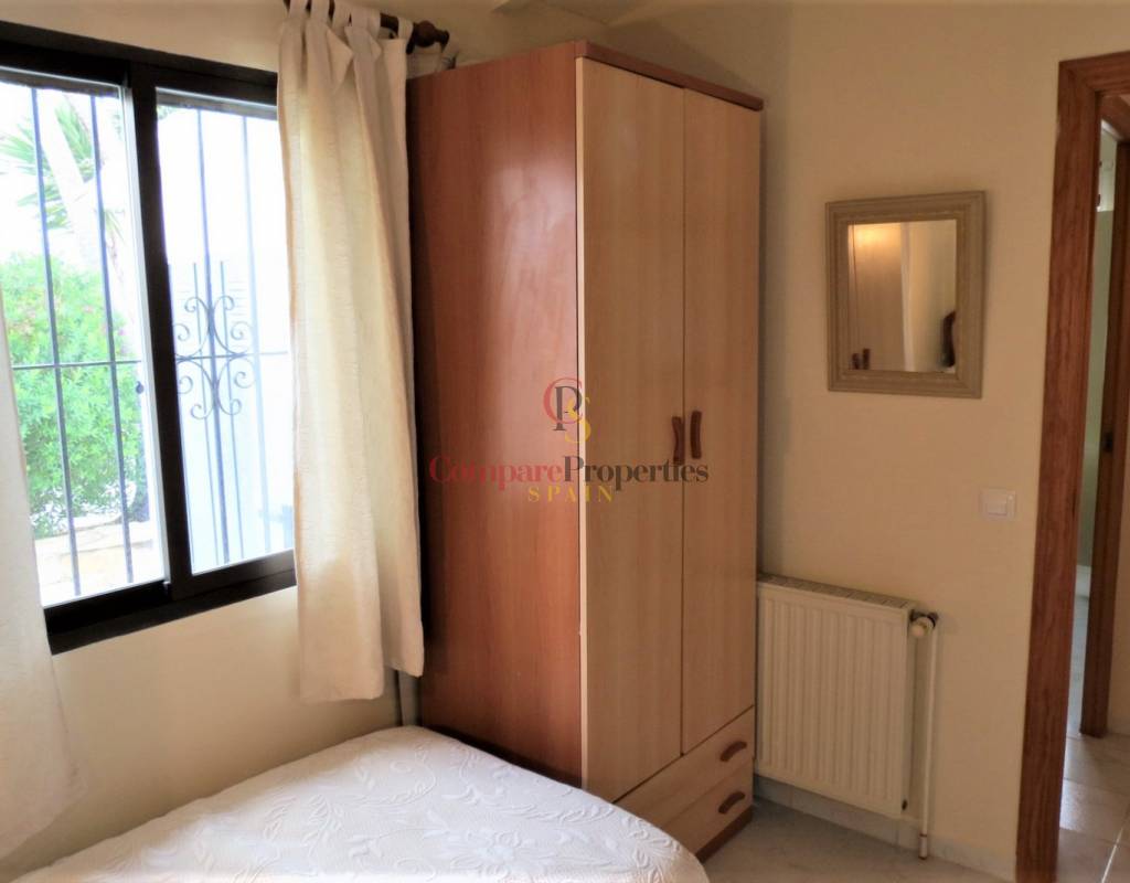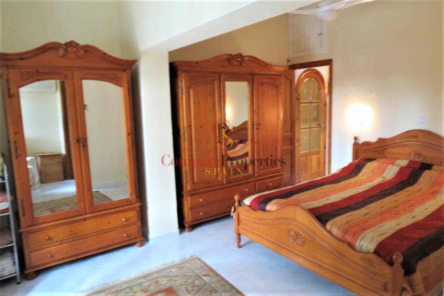 This lovely "all on one level" villa is for sale in La Sabatera, walking distance to a small shopping centre. This well maintained property is situated in a quiet residential street only 2.6km to the beaches, marina and town centre of Moraira. You enter the gated driveway into a parking area for 3-4 cars with a garage located underneath the off-road parking place at street level. The property has a beautiful mature garden with many seating areas around the villa. You enter the villa into a small glazed naya looking out over the garden and pool and then enter a spacious L-shaped living/dining room with a corner fireplace and integrated wood-burner in the dining area. At the back of the living room there is a superb fully fitted kitchen, four years old, with white units and black granite worktops, with a door leading into the garden. Off the dining area there is a small hallway, here you will find bedroom 3 which is the smallest with a freestanding wardrobe, bedroom 2 which has built-in wardrobes and the house bathroom which includes a vanity unit and a bath including shower attachment. At the end of the hallway is the large master bedroom which has freestanding wardrobes, a dressing area, an en-suite shower room with vanity unit and glass doors leading out into the terrace. Externally the property has a private pool terrace with pool shower, an easy maintenance garden with palms and fruit trees, a summer kitchen with alfresco dining area, a barbecue area with dining terrace, a large storeroom, a covered wood storage area under the gas bottle casita at street level and a boiler room. - Key points:- Built: 1978 and well maintained- Total construction: 154m2, to be confirmed- Plot: 1050m2- Orientation: South- Insulated roof- Double glazed windows- Gas central heating- Air conditioning in the living room, bedroom 2 and the master bedroom- Renovated bathrooms- Renovated kitchen includes gas hob, extractor, integrated dishwasher, integrated fridge/freezer, single oven, concealed microwave and lots of storage space- Internet and satellite television available- Furniture negotiable- Annual taxes to follow- This beautiful villa will sell fast, do not miss this opportunity!- There is also a Nissan car available to purchase
