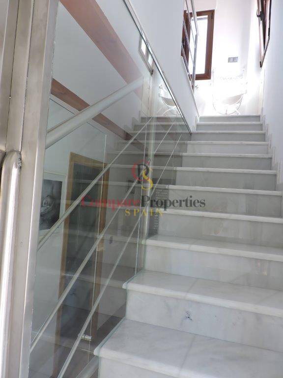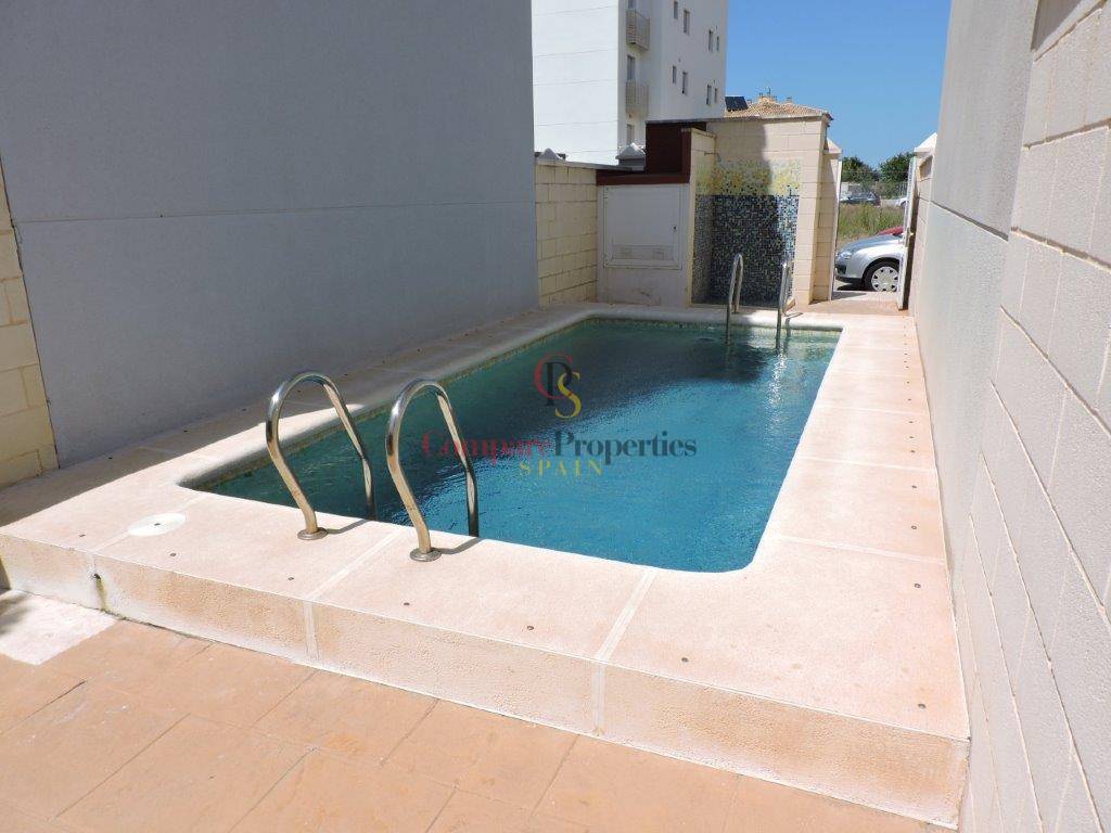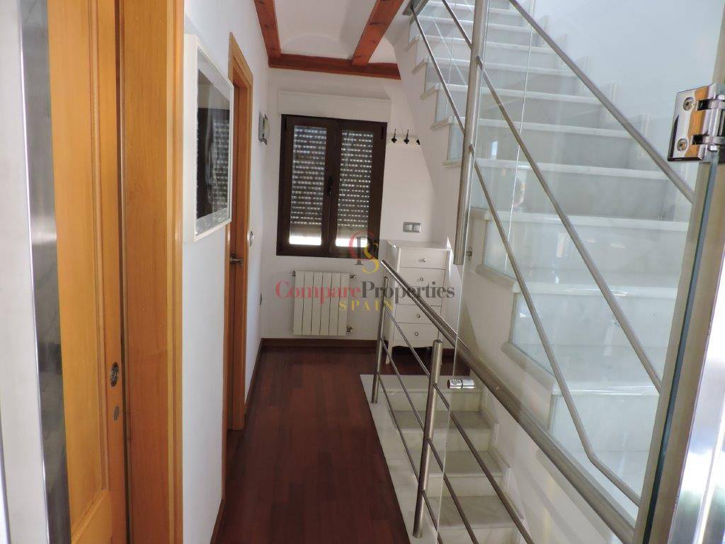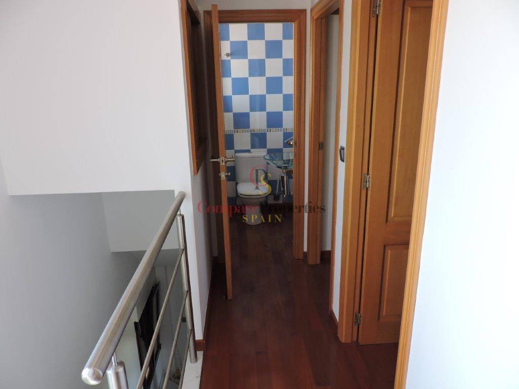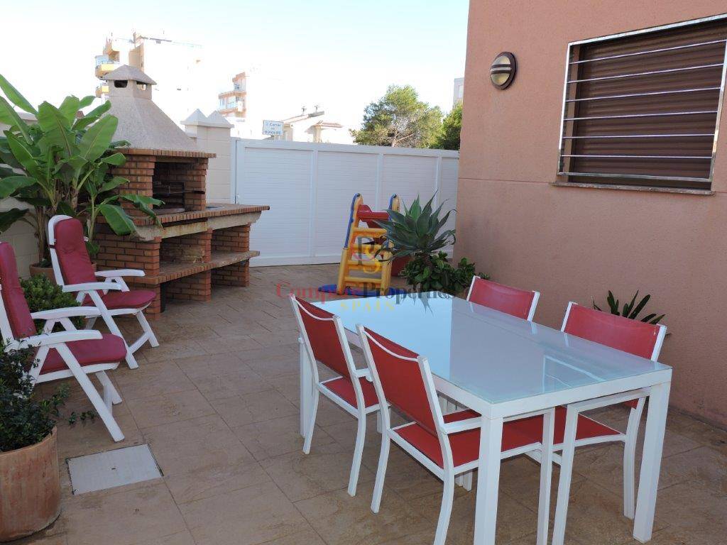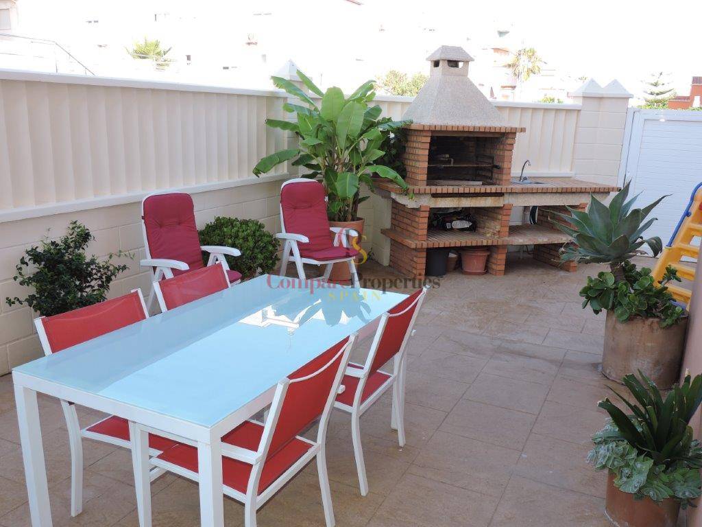 It is a semi-detached house just 100 meters from the beautiful sandy beaches and dunes of Oliva. Built on a plot of 120 m2, it includes quality finishes such as electric shutters, parquet floors, central heating, 1st quality appliances. The house is distributed in living room / kitchen and toilet on the ground floor. Marble stairs lead to the master bedroom with bathroom en suite, built-in wardrobe and air conditioning. From this floor to the upper floor the stairs are glazed to keep the rooms at the optimum temperature. On the 2nd floor we find two bedrooms with fitted wardrobes and a bathroom. Outside we find a terrace very well distributed with wardrobe for washing machine, barbecue and space to park a car.