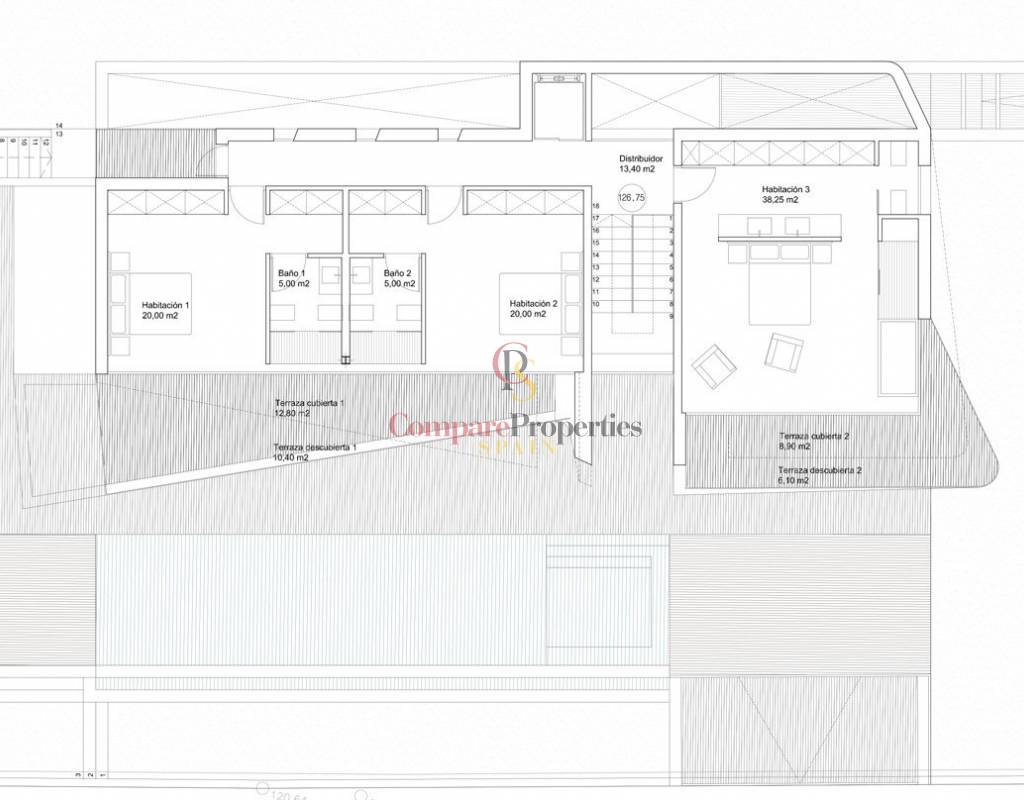 Villa located on a flat plot with a beautiful view to the sea, near the beautiful Mediterranean town of Moraira on the white Coast.