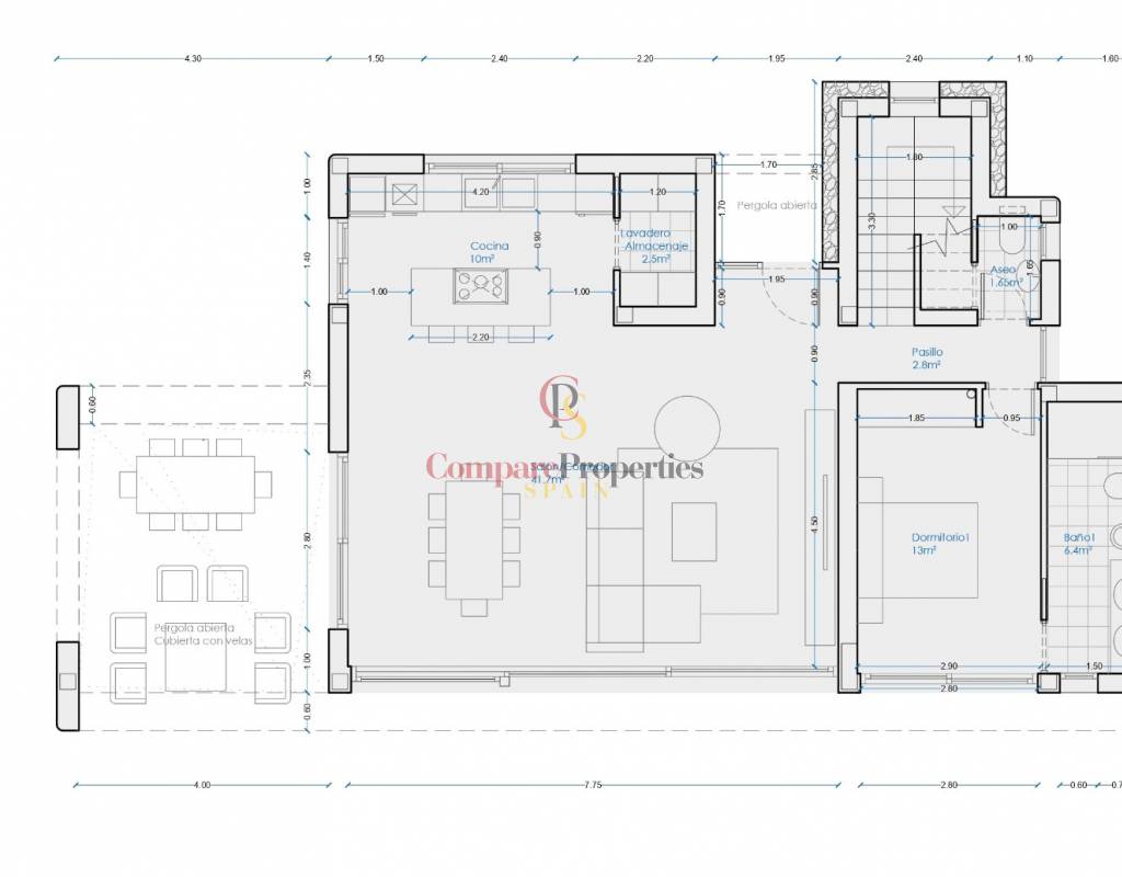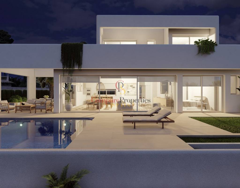 - Key points- Completion 2024- Porcelain tiles inside and outside- Double glazed aluminium doors and windows with safety glass- Electric shutters in the bedrooms- White lacquer internal doors and wardrobe doors- Modern kitchen with Silestone worktops- Bosch, AEG or Siemens quality appliances- Included fridge/freezer, oven, microwave, induction hob, extractor and dishwasher- Air conditioning in living room and bedrooms- Underfloor heating by heat pump- Suspended sanitaryware and vanity units in the bathrooms and mirrors included- Pre-installation for telephone, television and alarm- Interior staircase made with glass or chrome- Terrace railings with glass with chrome fixings- Pool with interior steps and 2 LED coloured lights with remote control, plus a pool shower- The garden will will be landscaped with gravel with cypress border hedges and irrigation system- The garden can be designed by the clients and a separate price supplied.- Distances:- 1.5km to Baladrar beach- 2km to an international supermarket- 850m to the closest restaurant- 1.7km to the golf course- 4.6km to the town centre, beach and marina in Moraira- 7.5km to the motorway access in Benissa