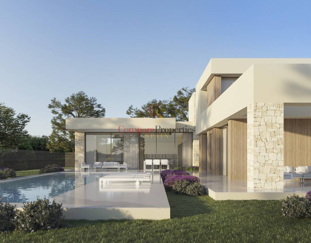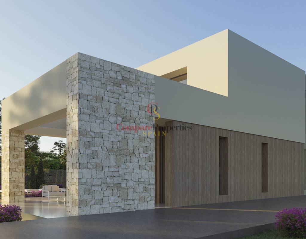 Javea Modern villa in a quiet area of Javea. This beautiful project of stone finishes, has 2 floors that are connected with a modern internal staircase. The ground floor has two bedrooms with en-suite bathrooms, a kitchen, a living-dining room, a utility room and a toilet. The kitchen is fully equipped and it is open to the living room. The sliding glass doors give direct access to a large terrace and the pool. The upper floor has another bedroom with a bathroom. The house has air conditioning and underfloor heating. It has an automatic entrance door with an independent pedestrian entrance. On the same level as the main house is the pool. It includes garden to be customized by the client. Amenities Swimming pool Top Brand installations Key Features Beds 3 Baths 4 Plot Size 1000 m2 Living Area 208 m2 Built in 2025