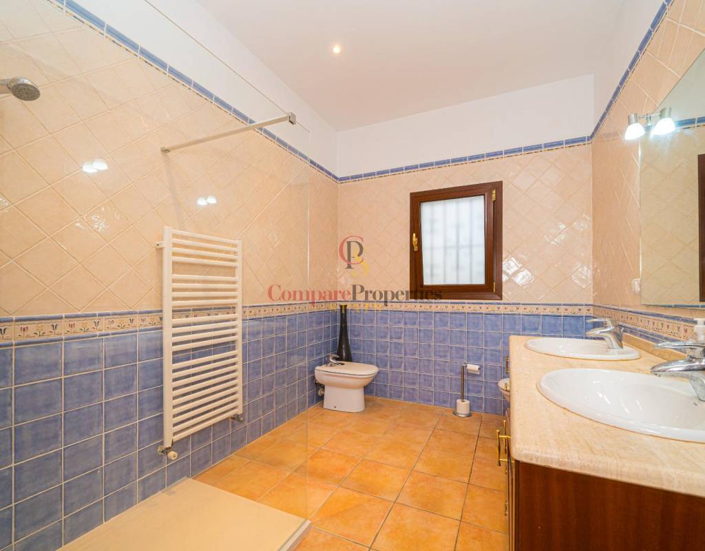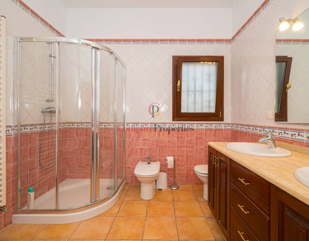 This spacious and luminous villa for sale in Lliber, distributed with three large bedrooms all with fitted wardrobes , two complete bathrooms, incredible bright and airy living-dining room with fireplace from which we access to the covered terrace of 53 m2. with views to the countryside.This area is ideal for entertaining.