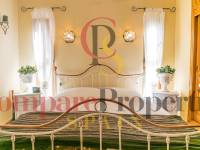 If we continue surrounding the house from the upper floor we reach the summer kitchen with its barbecue and large terrace, from here we access another terrace and the private heated pool. Going down a little more we access the private garage with another storage room.