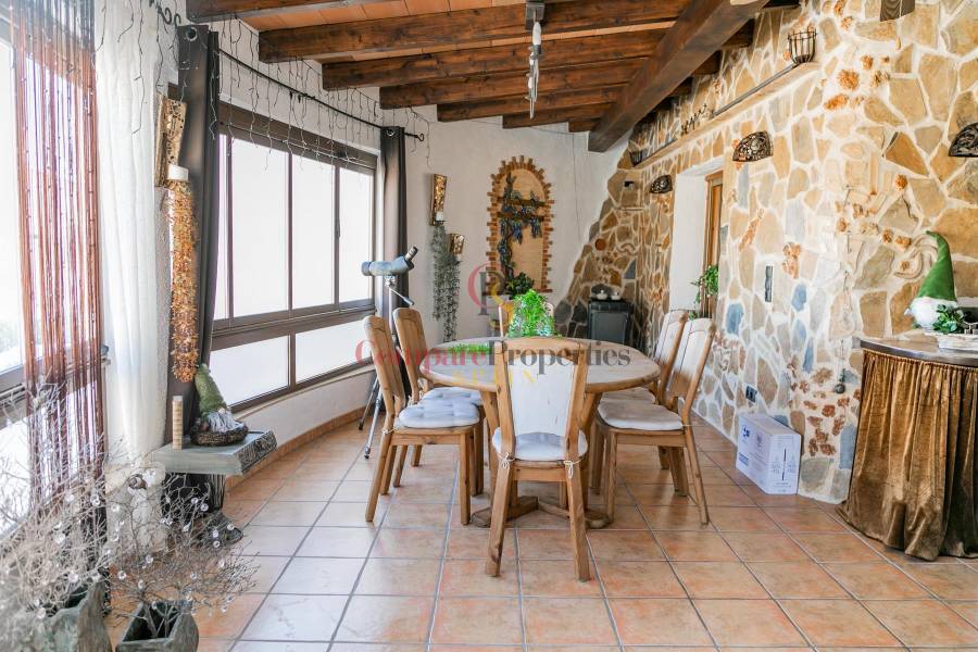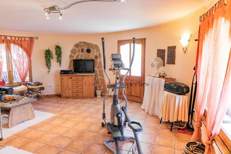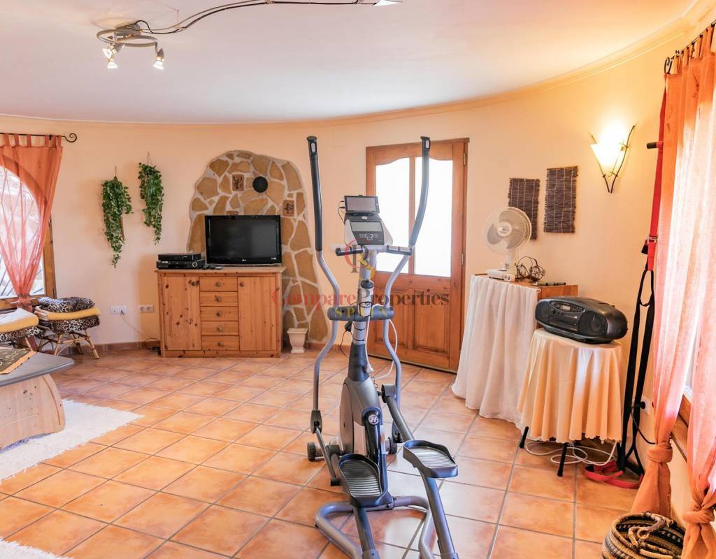 The villa is built on two floors, on the main floor we have two bedrooms, a bathroom, a large living room with fireplace and the American kitchen. From the living room we access a large covered terrace.