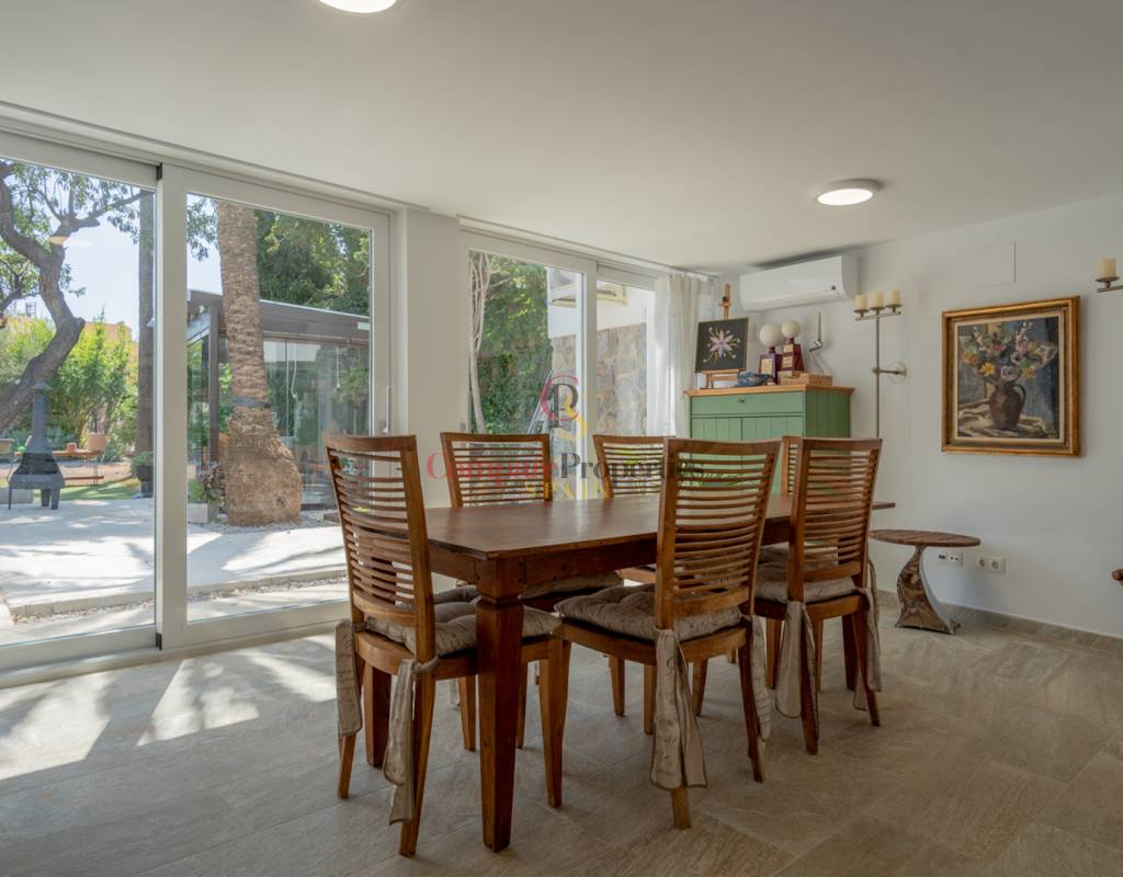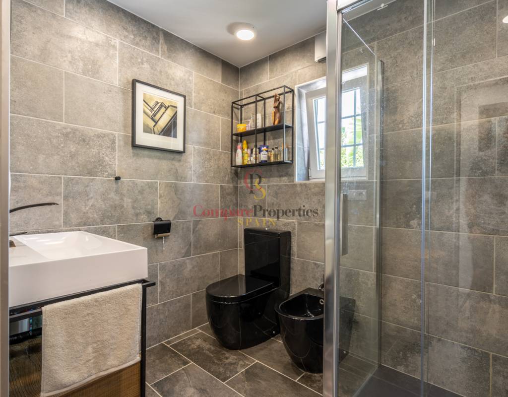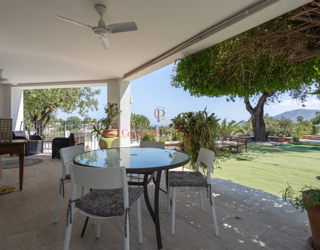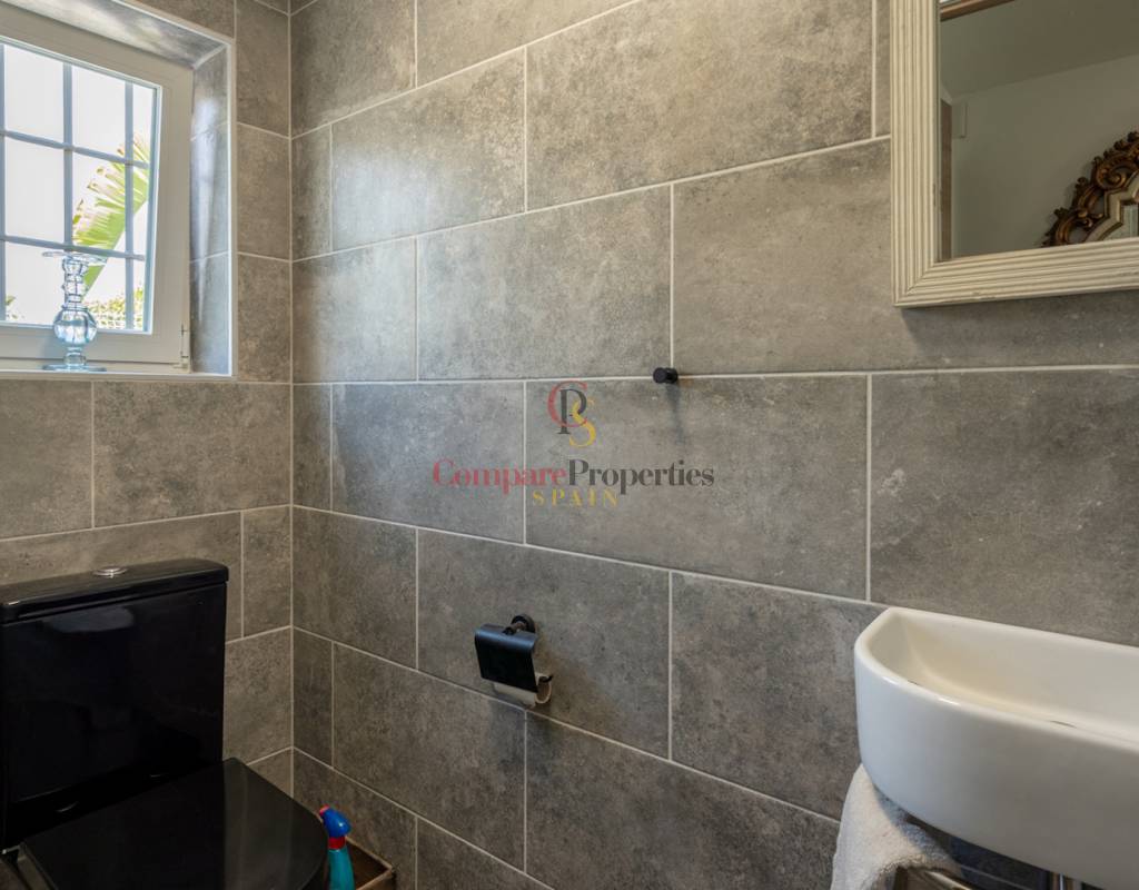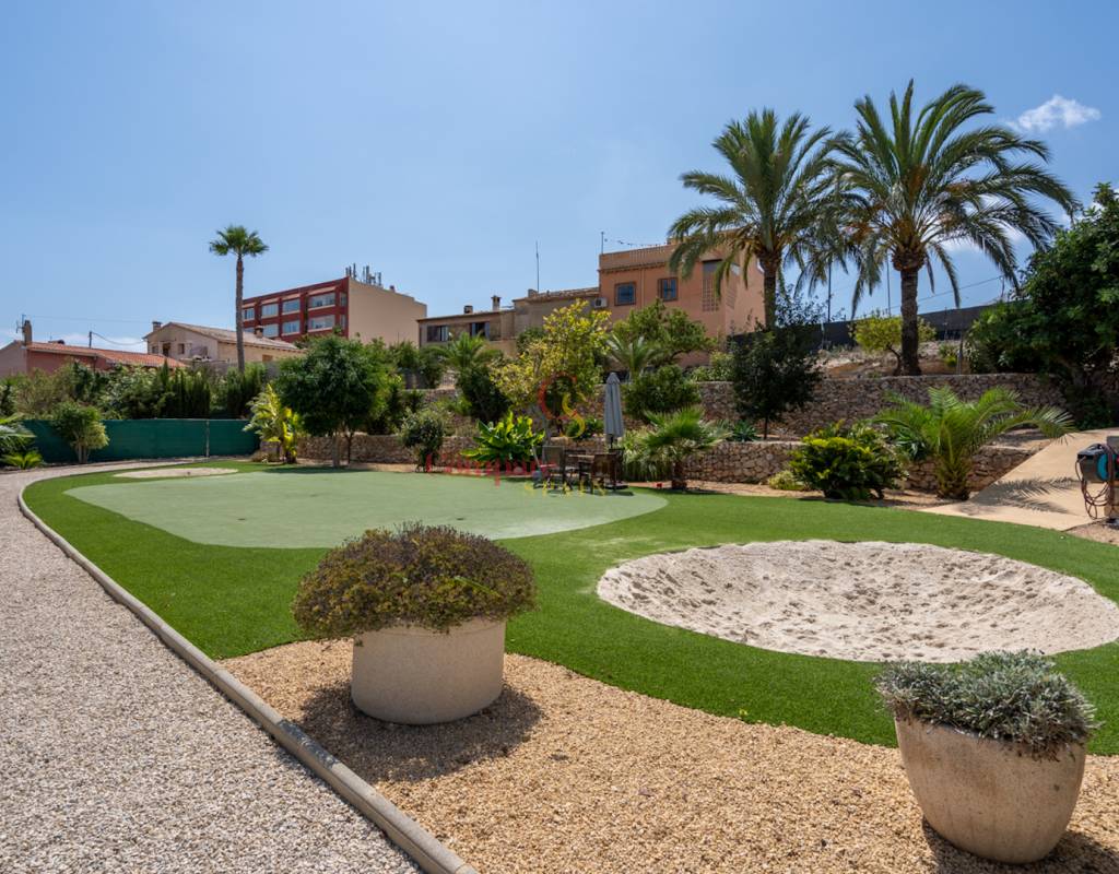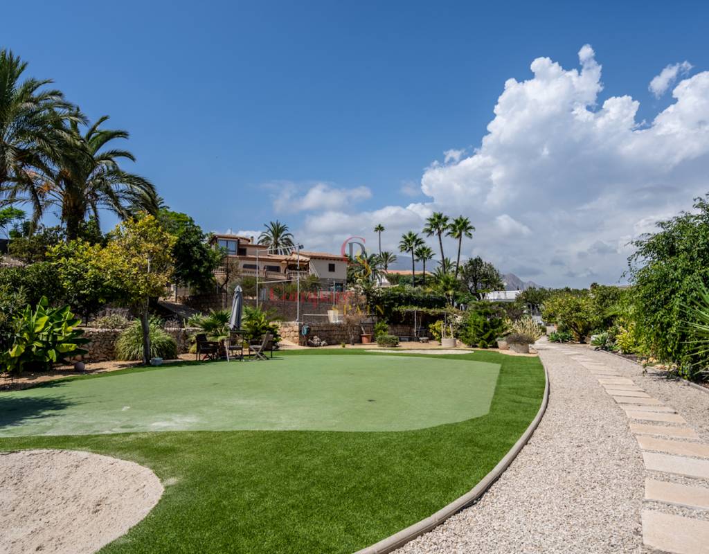 Fantastic and unique finca in Alfas del Pi! This property consists of a house completely renovated, renovated and extended, on a large plot of approximately 2600m2. The house was completely renovated in 2017, transforming it into a modern house, built with top quality materials. It sits on a large, very private and undisturbed plot, just a few minutes walk from the village centre. The plot houses a golf area with putting green, 2 bunkers and chipping areas. There is also a tennis court (surface to be renovated), and an absolutely fantastic garden with tropical fruit trees, palm trees and olive trees.And of course the property has a fantastic view towards the sea! On the main floor of the house there is a bright open living room/kitchen of almost 60m2 - Outside the living room there is a covered terrace for hot summer days! There is also a beautiful greenhouse house, perfect for flowers and vegetables. In addition 2 large bedrooms 2 bathrooms, and an additional large room that can be used as another bedroom, an office, or even as a separate apartment. There is also a guest toilet. On the ground floor there are 2 large bedrooms, a bathroom, and a large laundry room. Everything is new, including electrical, sanitary and heating installations. There is also a large garage, which has been converted into a gym and storage.