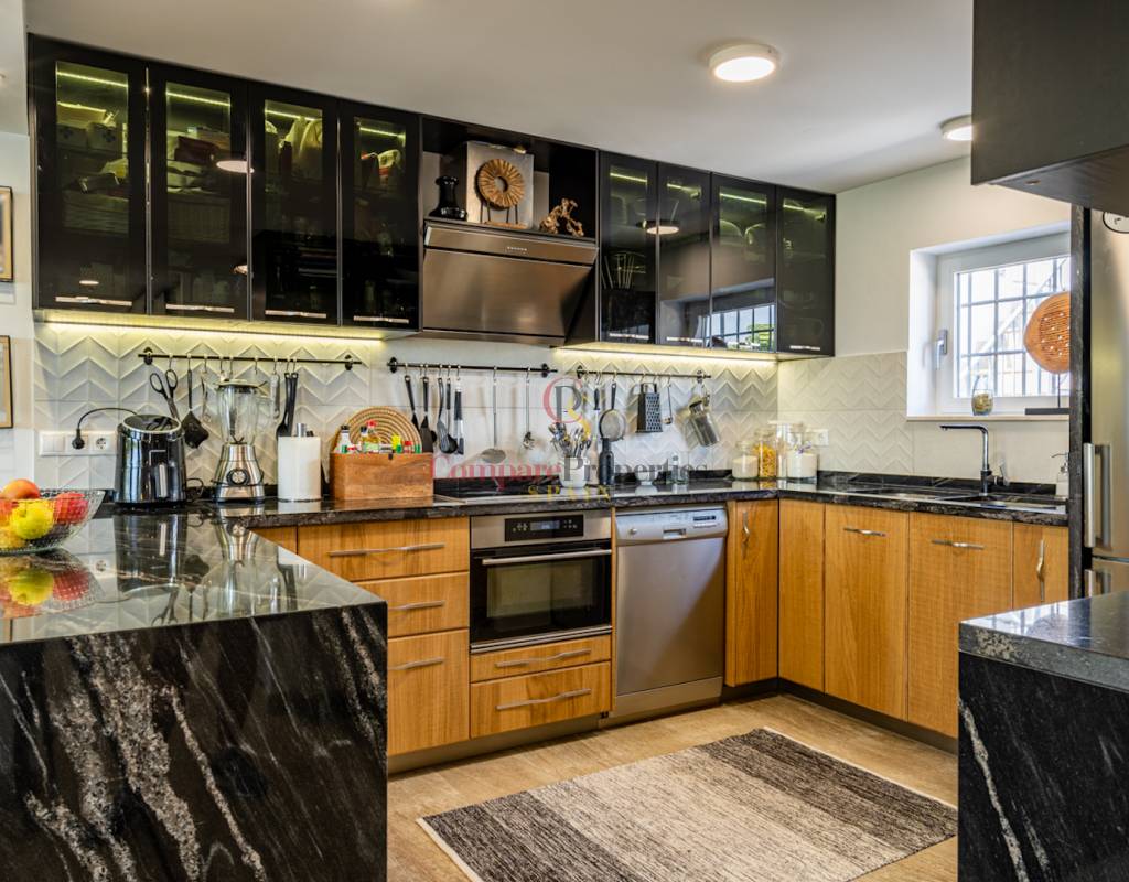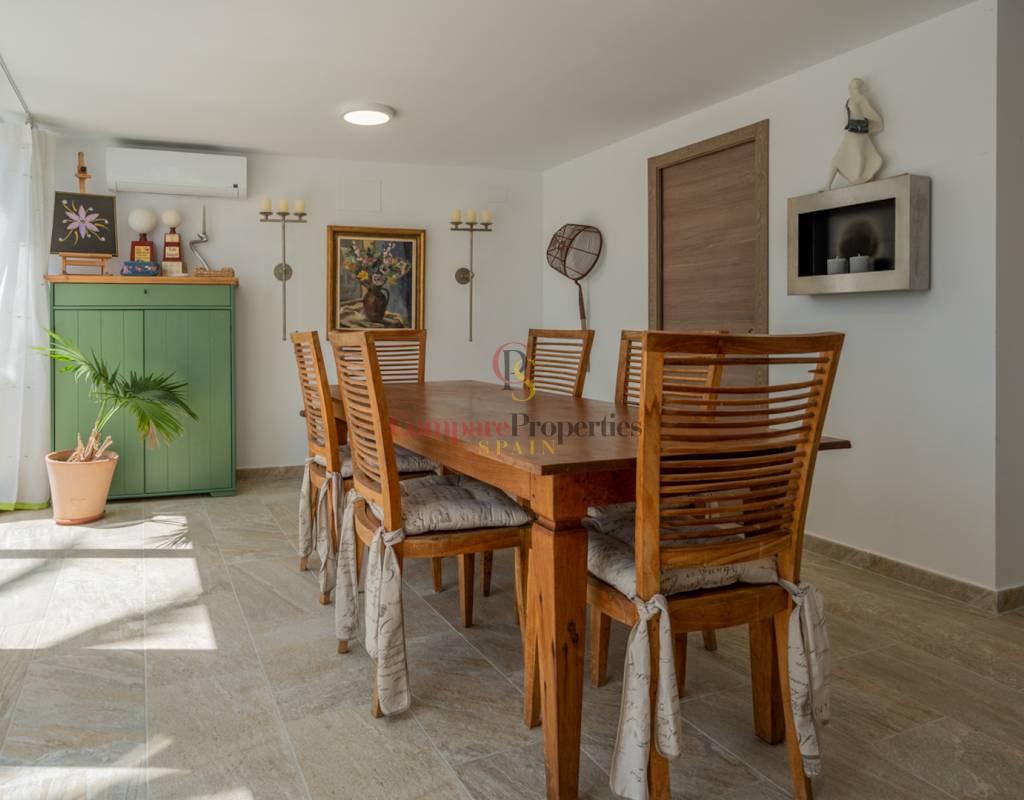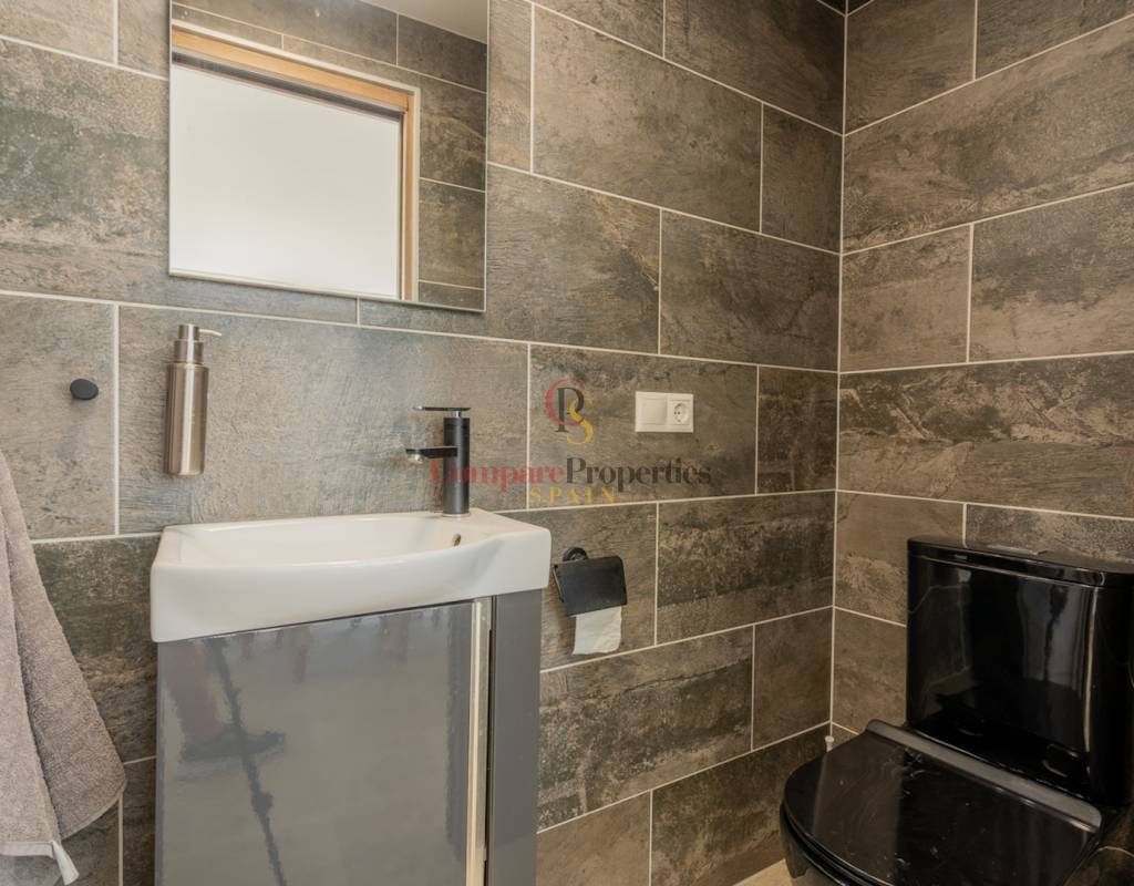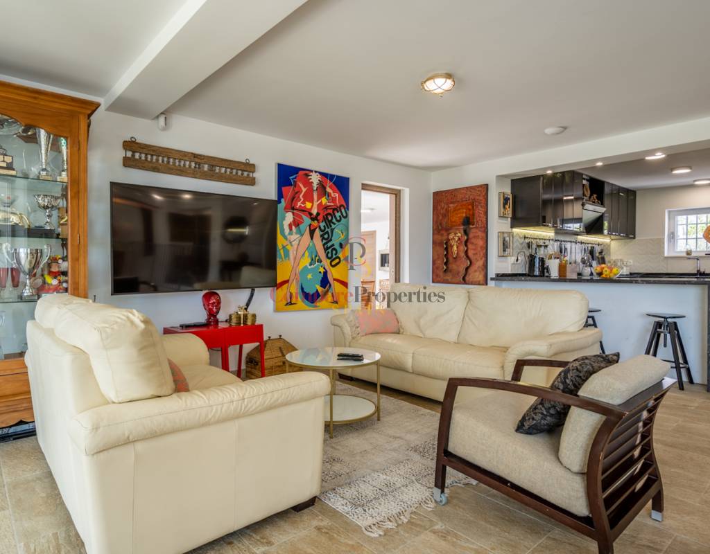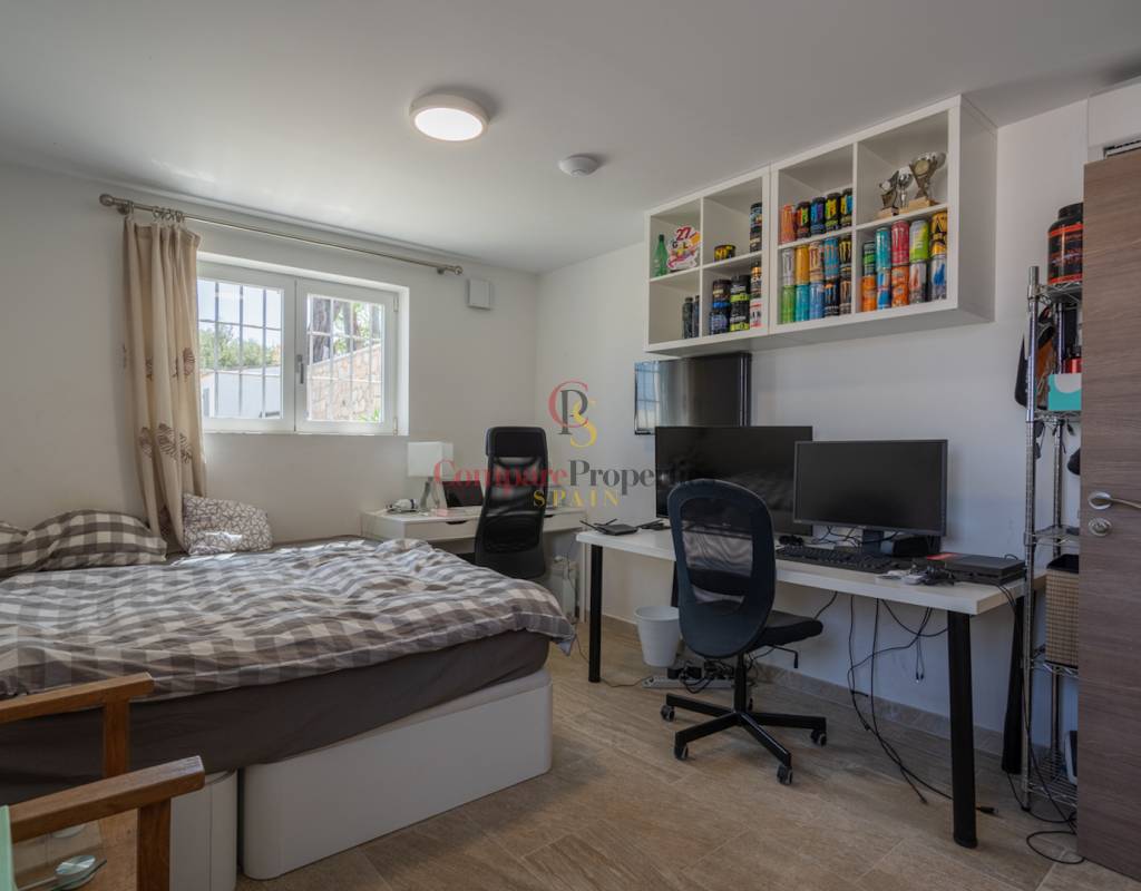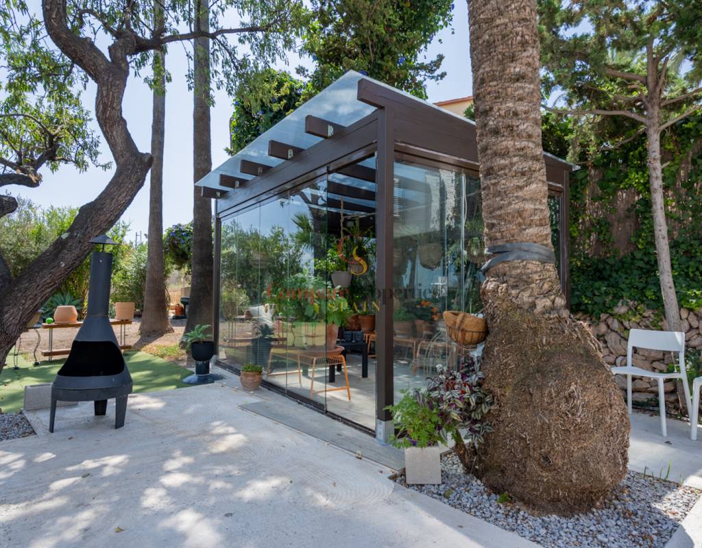 Fantastic and unique finca in Alfas del Pi! This property consists of a house completely renovated, renovated and extended, on a large plot of approximately 2600m2. The house was completely renovated in 2017, transforming it into a modern house, built with top quality materials. It sits on a large, very private and undisturbed plot, just a few minutes walk from the village centre. The plot houses a golf area with putting green, 2 bunkers and chipping areas. There is also a tennis court (surface to be renovated), and an absolutely fantastic garden with tropical fruit trees, palm trees and olive trees.And of course the property has a fantastic view towards the sea! On the main floor of the house there is a bright open living room/kitchen of almost 60m2 - Outside the living room there is a covered terrace for hot summer days! There is also a beautiful greenhouse house, perfect for flowers and vegetables. In addition 2 large bedrooms 2 bathrooms, and an additional large room that can be used as another bedroom, an office, or even as a separate apartment. There is also a guest toilet. On the ground floor there are 2 large bedrooms, a bathroom, and a large laundry room. Everything is new, including electrical, sanitary and heating installations. There is also a large garage, which has been converted into a gym and storage.