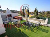 For sale is this cozy semi-detached house with its own plot (369 m2) and a small independent studio. Located in the Marquesa IV area, it enjoys year-round sunshine and magnificent views of the sea and the Gulf of Valencia. It features a private corner plot with automatic access gate and parking for two vehicles. The living room has a fireplace, separate kitchen, high ceilings, one large bedroom (originally two) with an electric fireplace, a large closet, and a bathroom with a walk-in shower. The living room leads out to an open terrace with sea views, a BBQ, and a Jacuzzi. You can descend to another terrace with a storage room or ascend to a magnificent sun terrace with sea and coastal views. Behind the building, with a separate entrance, there is a small studio with one bedroom, one bathroom, and one kitchen. Completely renovated in 2023 with the best materials: PVC windows with safety glass, underfloor heating, stoneware, laminate, wood-burning fireplace and another electric fireplace, individual air conditioning, LED lights, sold furnished and with appliances, etc. Quiet residential area inhabited all year round and just 3 km from Dénia and its beaches.