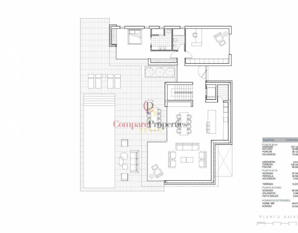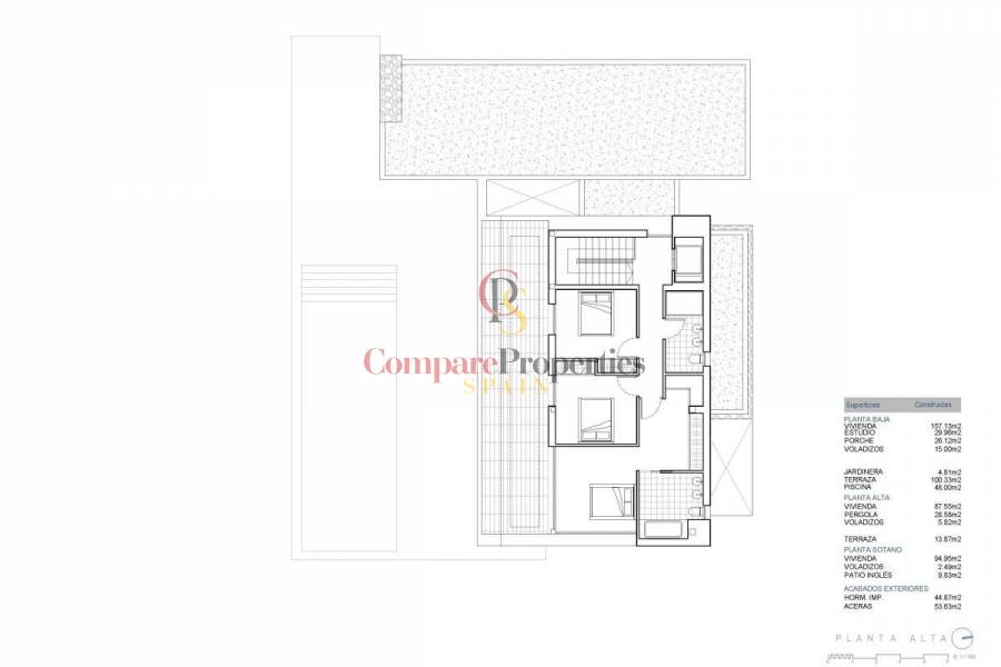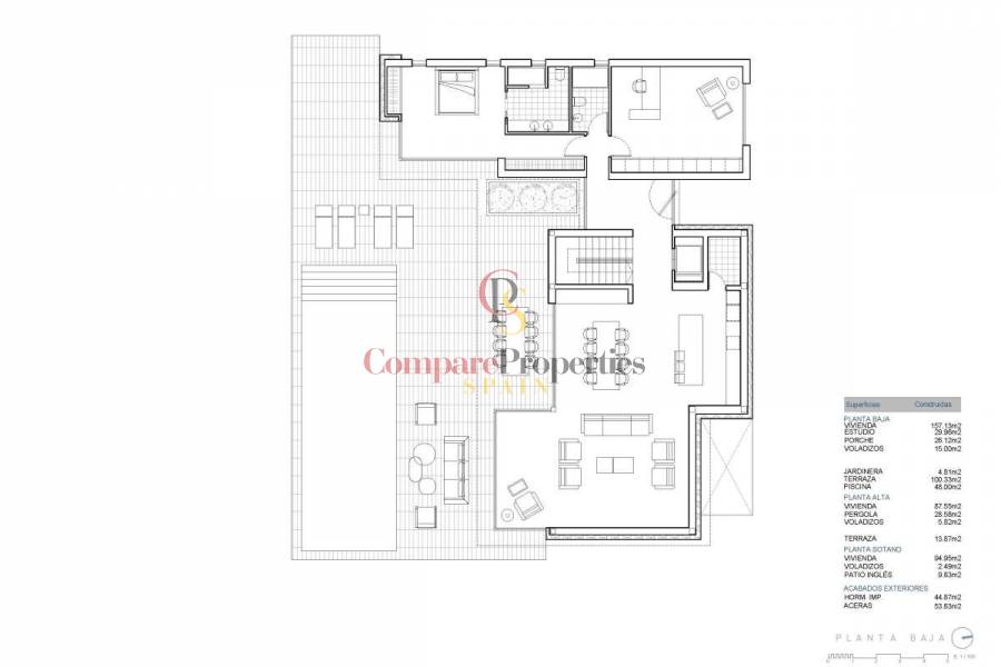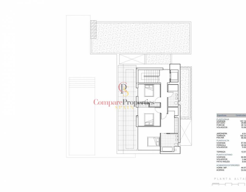 This charming project in Moraira consists of a two-storey house with a modern and functional design. With a total constructed area of 395.71 m², the space has been carefully distributed to maximise comfort and the use of natural light.br>br> The ground floor is intended for the common areas, with large living areas, dining room, kitchen and a bedroom, while the upper floor will house the bedrooms, offering privacy and privileged views. This home stands out for its harmonious design, ideal for enjoying a comfortable and contemporary lifestyle in a peaceful environment. A perfect home to live and enjoy!br>br> Equipped with air conditioning and underfloor heating.