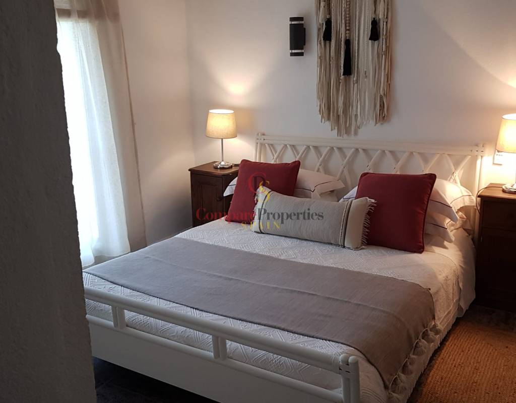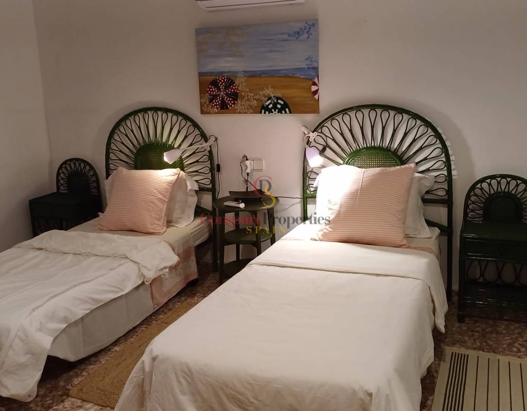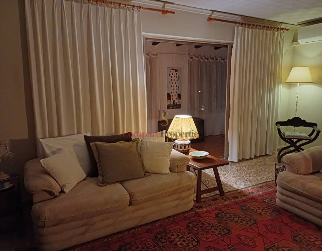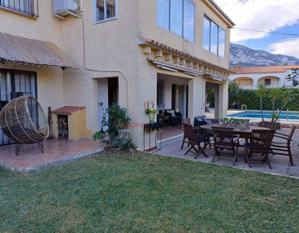 In Denia, villa for sale on 2 floors, in a beautiful, quiet and in high demand area of Las Rotas. The villa is located on a flat plot of 828 m2. The house has 2 floors, the main one has 113 m2, distributed in 3 large bedrooms with wardrobes, 2 bathrooms, very cozy large kitchen with an island in the center and fully equipped, 2 bathrooms, spacious living room with fireplace and has access to beautiful glazed terrace with cozy and relaxing atmosphere or also as a work area, Apart it has a terrace with awning facing south. On the ground floor there are 2 independent apartments equipped with 1 bedroom, bathroom, kitchen, iron stove and terrace at the entrance with porch, in both apartments. Large swimming pool and around this a space with barbecue, ideal for parties and meetings, parking for several cars, the plot is fully fenced. The distance to the town of Denia is approximately 2 km.
