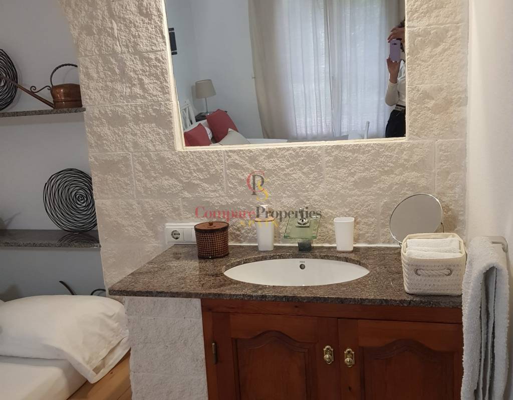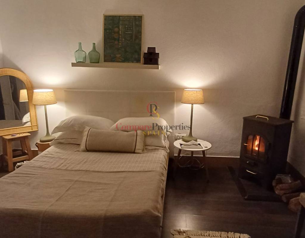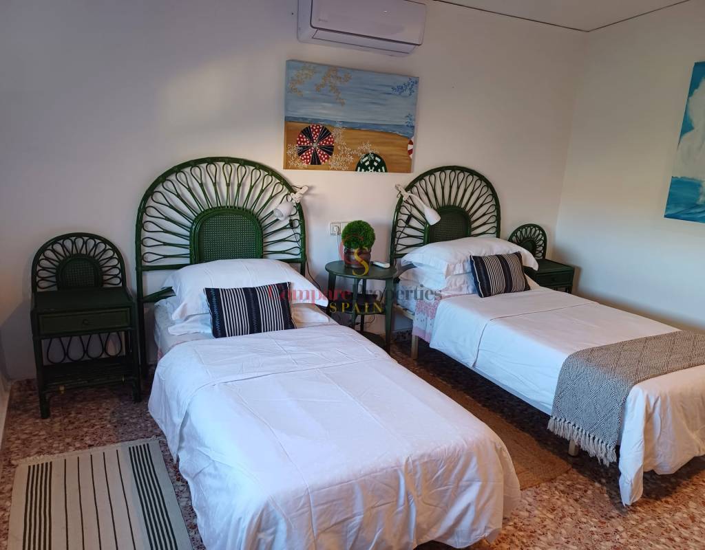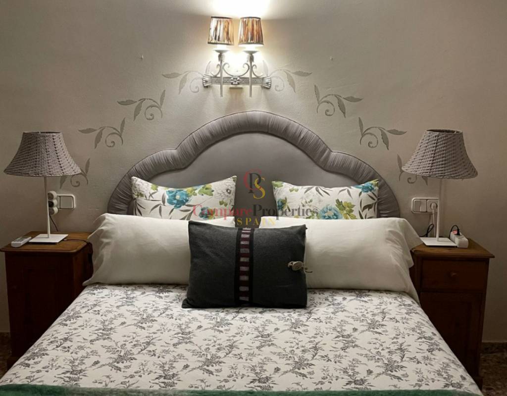 In Denia, villa for sale on 2 floors, in a beautiful, quiet and in high demand area of Las Rotas. The villa is located on a flat plot of 828 m2. The house has 2 floors, the main one has 113 m2, distributed in 3 large bedrooms with wardrobes, 2 bathrooms, very cozy large kitchen with an island in the center and fully equipped, 2 bathrooms, spacious living room with fireplace and has access to beautiful glazed terrace with cozy and relaxing atmosphere or also as a work area, Apart it has a terrace with awning facing south. On the ground floor there are 2 independent apartments equipped with 1 bedroom, bathroom, kitchen, iron stove and terrace at the entrance with porch, in both apartments. Large swimming pool and around this a space with barbecue, ideal for parties and meetings, parking for several cars, the plot is fully fenced. The distance to the town of Denia is approximately 2 km.