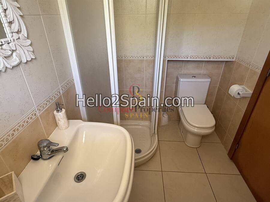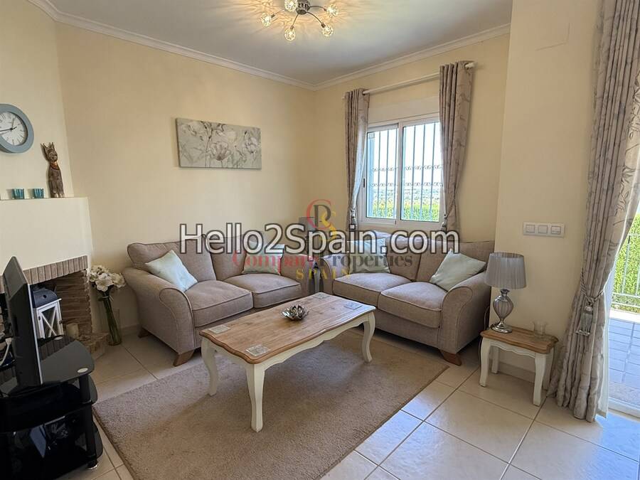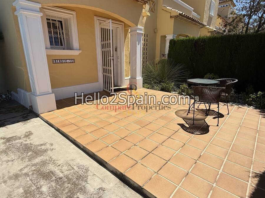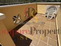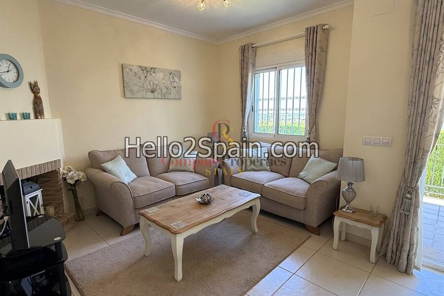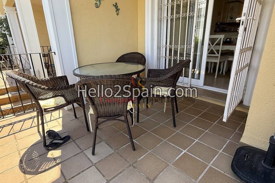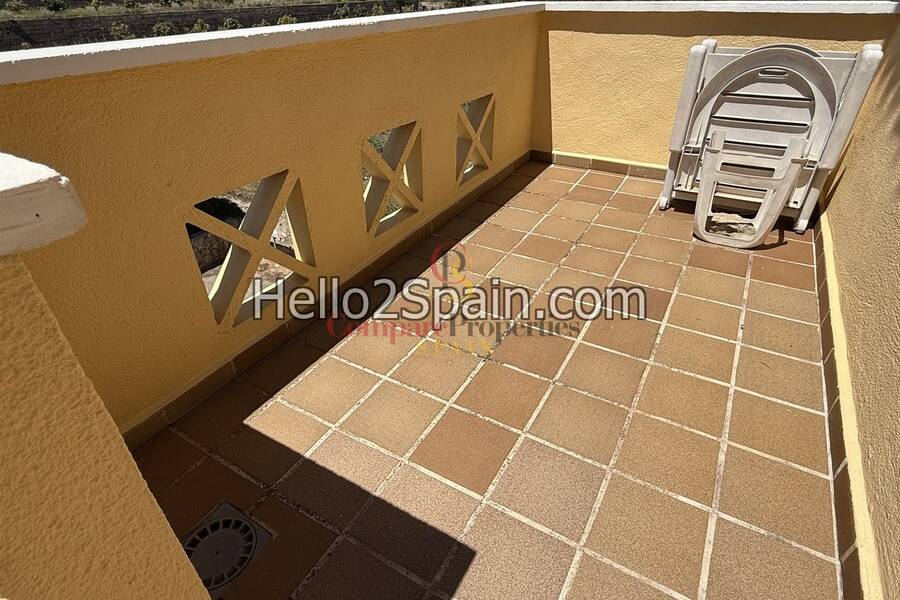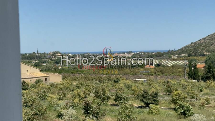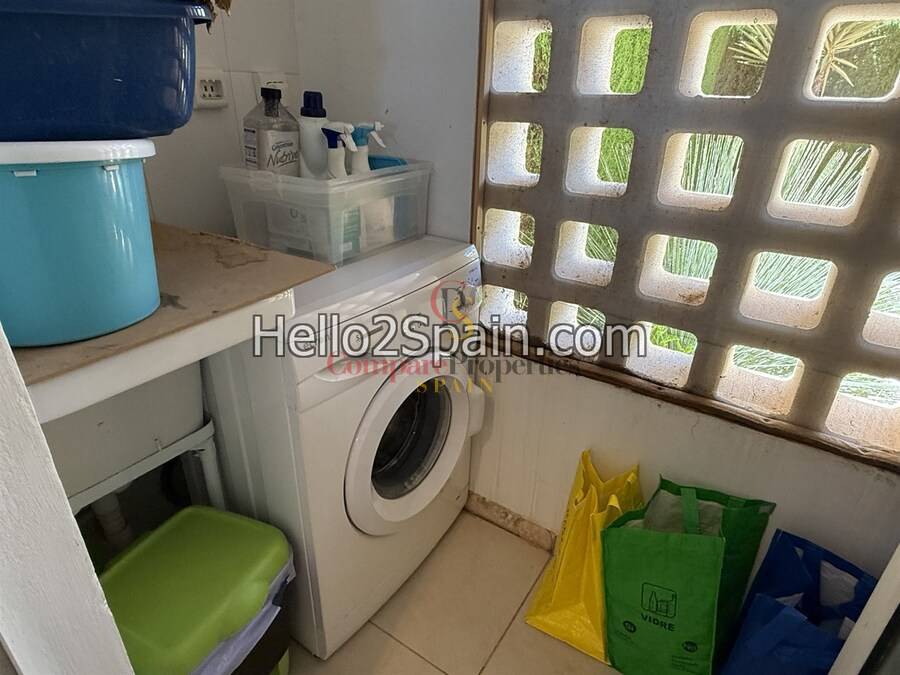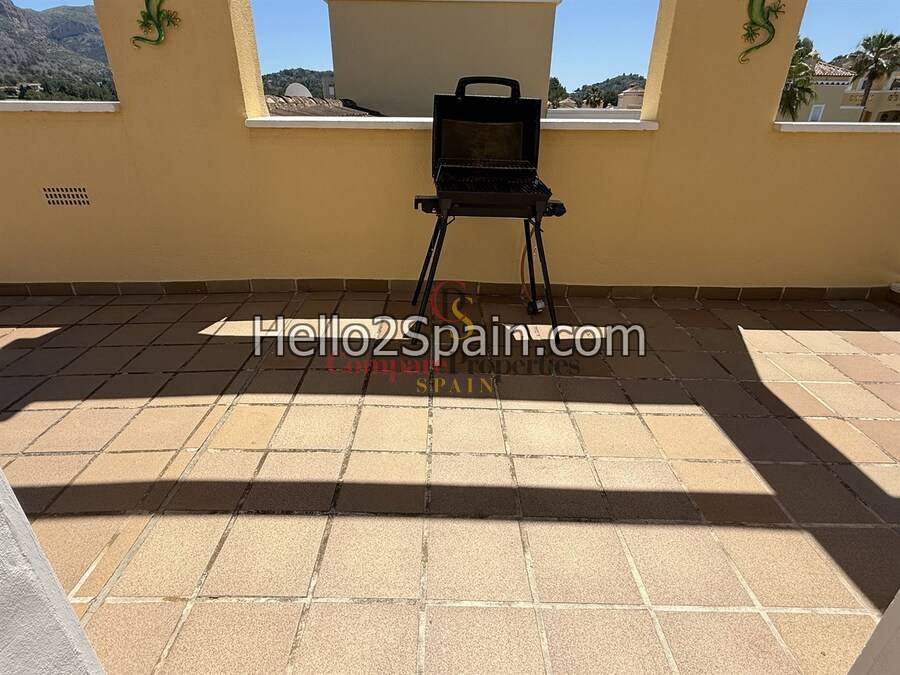 They say that location is everything when you are buying a property. I agree, this end of terrace town has a fabulous corner private garden, Sea, golf and mountain views. Private roof terrace with views towards Valencia, 3 bedrooms, 2 bathrooms, open plan lounge kitchen dining room, off road parking and 2 communal swimming pools.The approach is via a cul de sac and this house is at the end. With off road parking, front and rear terraces, lawned rear and side garden. Canopied porch with lighting leading into the reception hall.Reception hall with a very useful store cupboard, ideal for gold clubs, tennis rackets or just general storage. Lighting and door to downstairs shower room.Shower room with a walk in shower, wash basin, W.C, window and lighting.Open plan American style lounge kitchen dining room.Kitchen with a range of base and wall units, double sink with mixer tap over, fitted oven, hob and extractor, dishwasher, upright fridge freezer, lighting, breakfast bar and door to the utility room.Utility room with washing machine, scrub sink, hot water cylinder and lighting.Lounge dining room with hot and cold air conditioning unit, wall mounted radiator, sliding patio doors leading to the rear terrace, open fireplace, window to the rear, lighting and stairs to the first floor.Terrace with space for dining and entertaining, lighting and steps to the rear garden.1st floor with windows to the side elevation making this house very light and airy. Linen cupboard, stairs to the roof terrace and doors off to:Bedroom 1 with built in double wardrobe, hot and cold air conditioning unit, lighting and sliding patio doors leading to a terrace. Terrace has space for a table and chairs to enjoy the views over the avocado grove and down to the sea and over the golf course.Bedroom 2 with a built-in double wardrobe, window with sea and golf course views and lighting.Bedroom 3 with built in double wardrobe, sliding patio doors to the front elevation and lighting.Family bathroom with a full-length bath and shower over, vanity unit, W.C, window and lighting.2nd floor roof terrace. Landing with space for a kitchenette or garden furniture storage. Double opening patio doors to the roof terrace.Roof terrace, has in my opinion the best views of the area. Sea, golf and mountain views, very sunny position including winter sun which is very important when you have a property in Spain.Gardens the rear and side are lawned with various places to sit either in the sun or shade. The best of both worlds.There are two communal swimming pools both which are always clean and maintained. The communal fees include the maintenance of the gardens, hedges and lawns.The house is being sold furnished apart from some personal possessions.