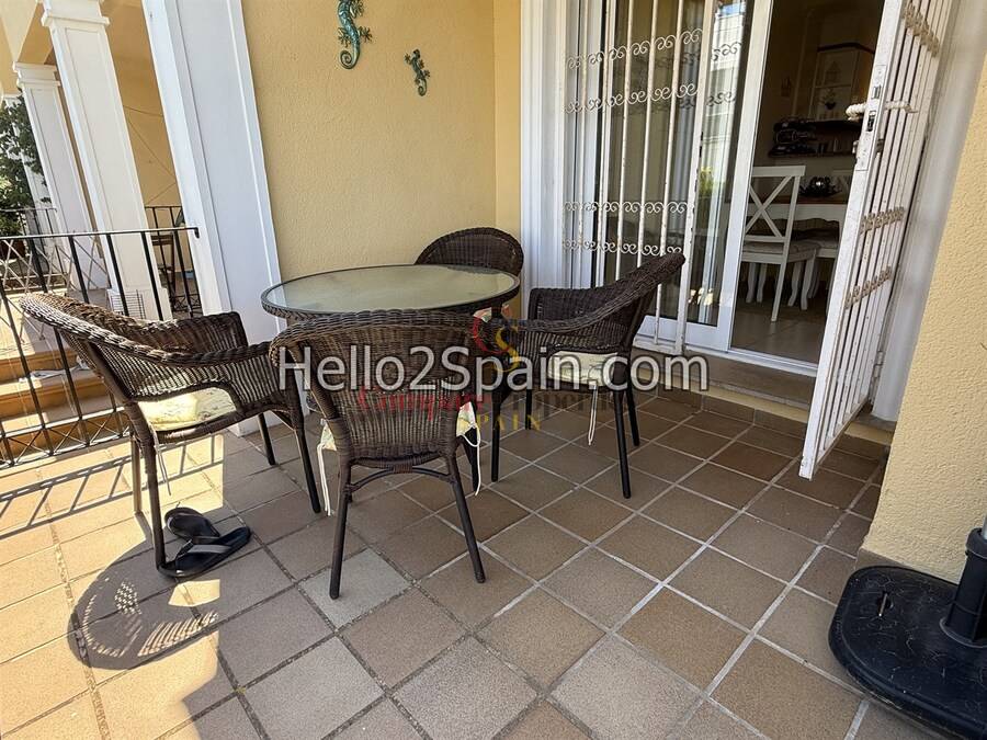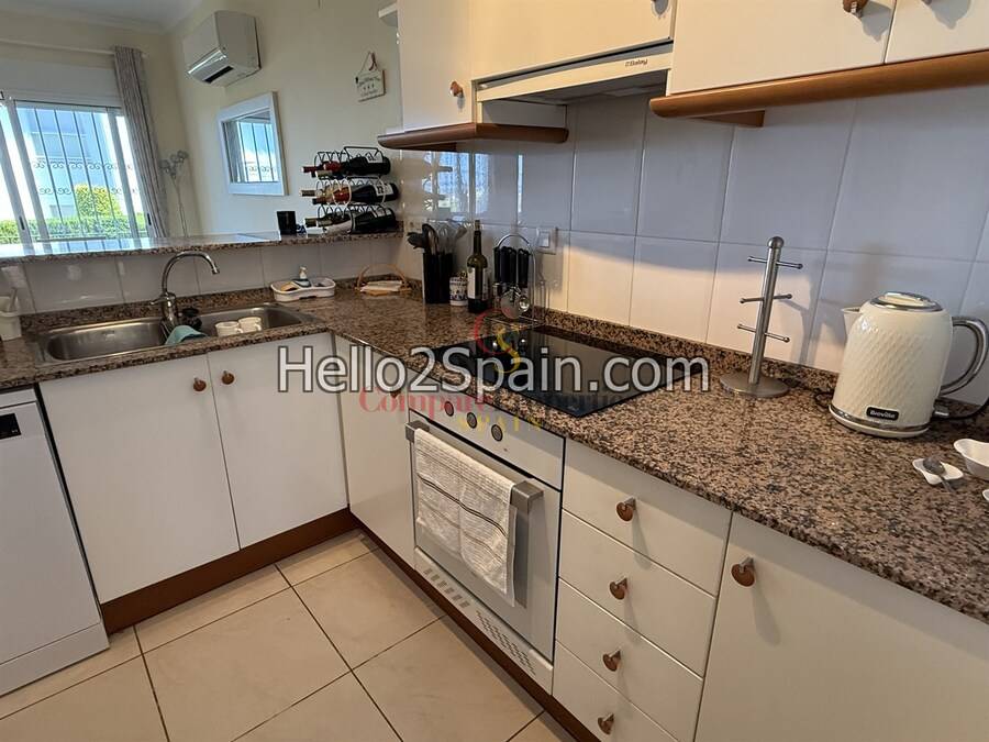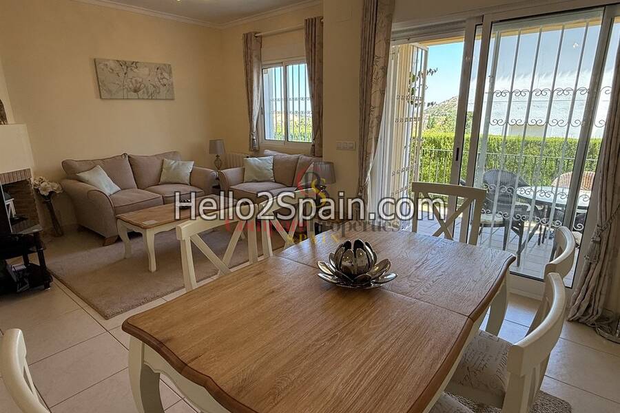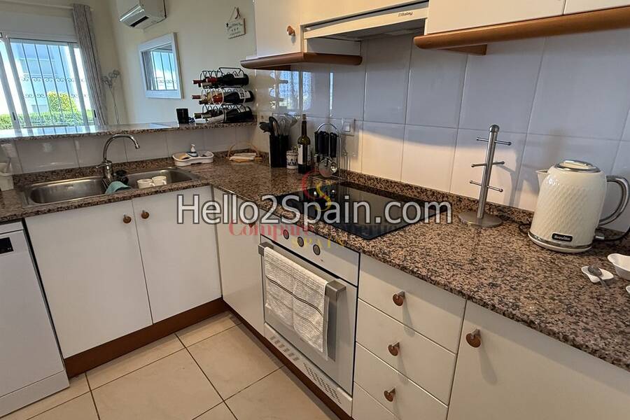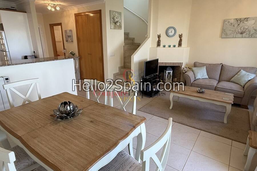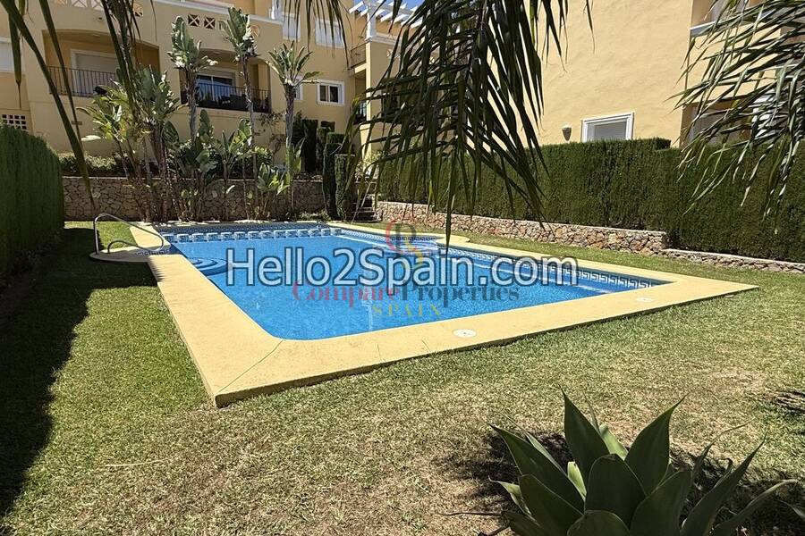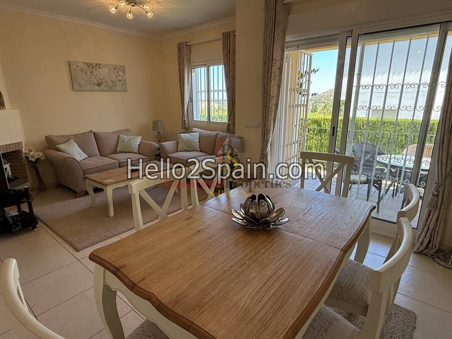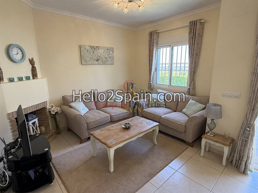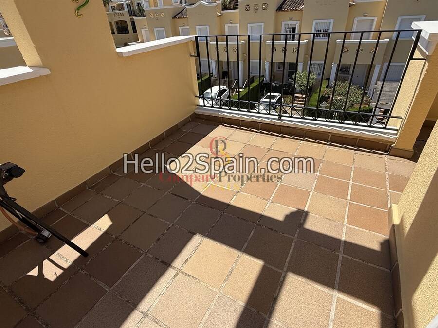 They say that location is everything when you are buying a property. I agree, this end of terrace town has a fabulous corner private garden, Sea, golf and mountain views. Private roof terrace with views towards Valencia, 3 bedrooms, 2 bathrooms, open plan lounge kitchen dining room, off road parking and 2 communal swimming pools.The approach is via a cul de sac and this house is at the end. With off road parking, front and rear terraces, lawned rear and side garden. Canopied porch with lighting leading into the reception hall.Reception hall with a very useful store cupboard, ideal for gold clubs, tennis rackets or just general storage. Lighting and door to downstairs shower room.Shower room with a walk in shower, wash basin, W.C, window and lighting.Open plan American style lounge kitchen dining room.Kitchen with a range of base and wall units, double sink with mixer tap over, fitted oven, hob and extractor, dishwasher, upright fridge freezer, lighting, breakfast bar and door to the utility room.Utility room with washing machine, scrub sink, hot water cylinder and lighting.Lounge dining room with hot and cold air conditioning unit, wall mounted radiator, sliding patio doors leading to the rear terrace, open fireplace, window to the rear, lighting and stairs to the first floor.Terrace with space for dining and entertaining, lighting and steps to the rear garden.1st floor with windows to the side elevation making this house very light and airy. Linen cupboard, stairs to the roof terrace and doors off to:Bedroom 1 with built in double wardrobe, hot and cold air conditioning unit, lighting and sliding patio doors leading to a terrace. Terrace has space for a table and chairs to enjoy the views over the avocado grove and down to the sea and over the golf course.Bedroom 2 with a built-in double wardrobe, window with sea and golf course views and lighting.Bedroom 3 with built in double wardrobe, sliding patio doors to the front elevation and lighting.Family bathroom with a full-length bath and shower over, vanity unit, W.C, window and lighting.2nd floor roof terrace. Landing with space for a kitchenette or garden furniture storage. Double opening patio doors to the roof terrace.Roof terrace, has in my opinion the best views of the area. Sea, golf and mountain views, very sunny position including winter sun which is very important when you have a property in Spain.Gardens the rear and side are lawned with various places to sit either in the sun or shade. The best of both worlds.There are two communal swimming pools both which are always clean and maintained. The communal fees include the maintenance of the gardens, hedges and lawns.The house is being sold furnished apart from some personal possessions.