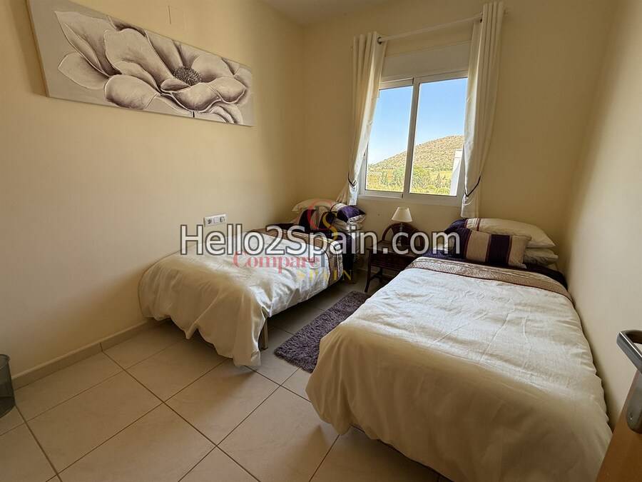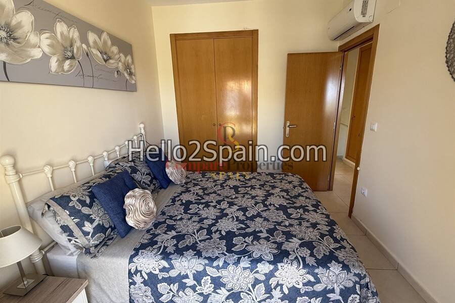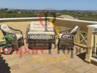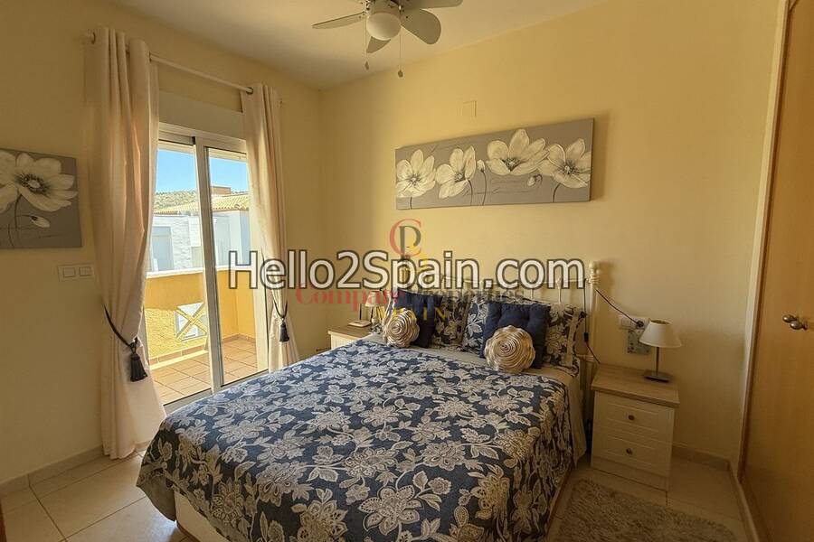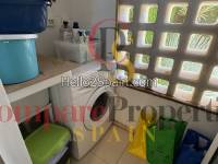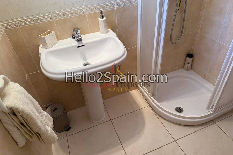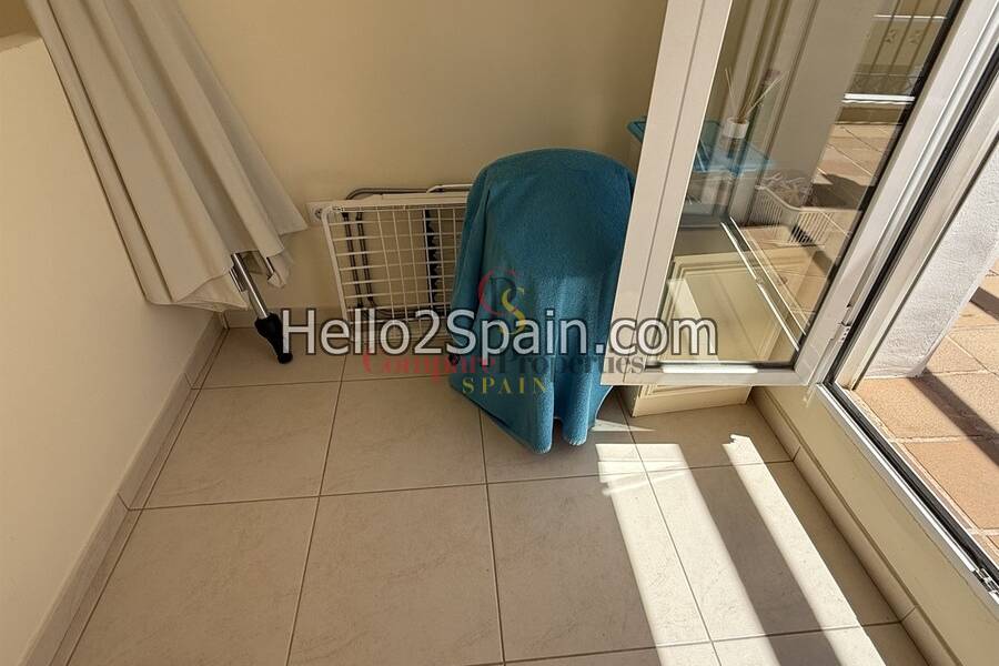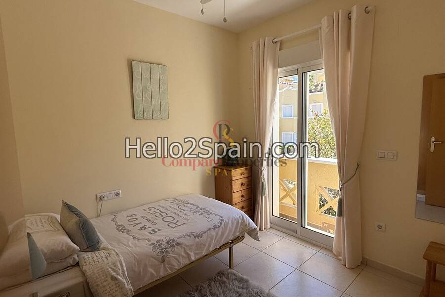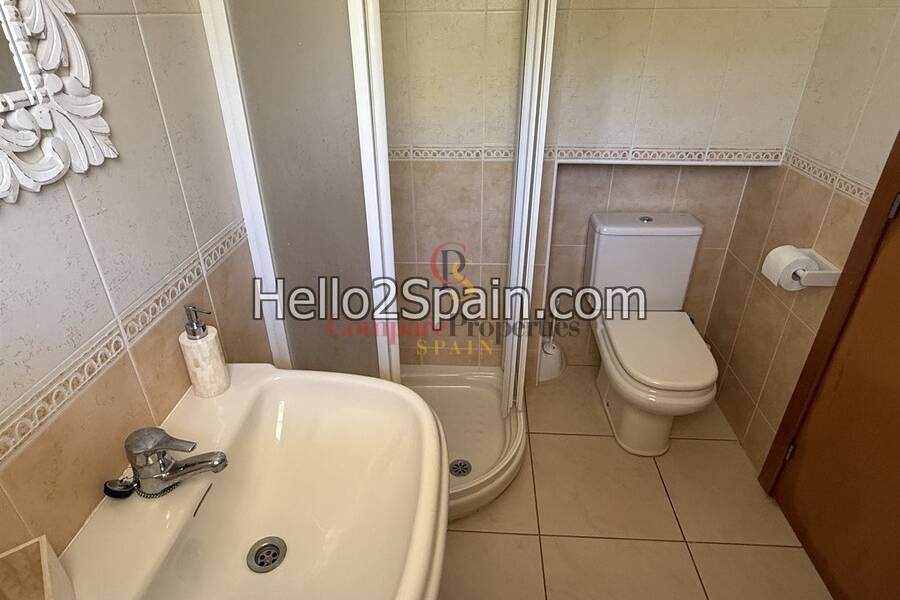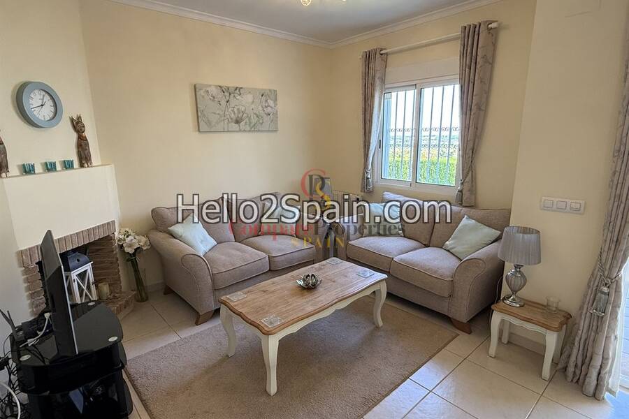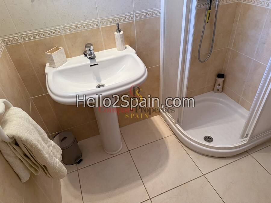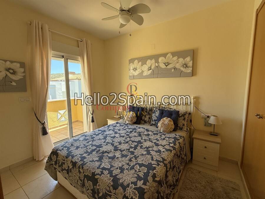 They say that location is everything when you are buying a property. I agree, this end of terrace town has a fabulous corner private garden, Sea, golf and mountain views. Private roof terrace with views towards Valencia, 3 bedrooms, 2 bathrooms, open plan lounge kitchen dining room, off road parking and 2 communal swimming pools.The approach is via a cul de sac and this house is at the end. With off road parking, front and rear terraces, lawned rear and side garden. Canopied porch with lighting leading into the reception hall.Reception hall with a very useful store cupboard, ideal for gold clubs, tennis rackets or just general storage. Lighting and door to downstairs shower room.Shower room with a walk in shower, wash basin, W.C, window and lighting.Open plan American style lounge kitchen dining room.Kitchen with a range of base and wall units, double sink with mixer tap over, fitted oven, hob and extractor, dishwasher, upright fridge freezer, lighting, breakfast bar and door to the utility room.Utility room with washing machine, scrub sink, hot water cylinder and lighting.Lounge dining room with hot and cold air conditioning unit, wall mounted radiator, sliding patio doors leading to the rear terrace, open fireplace, window to the rear, lighting and stairs to the first floor.Terrace with space for dining and entertaining, lighting and steps to the rear garden.1st floor with windows to the side elevation making this house very light and airy. Linen cupboard, stairs to the roof terrace and doors off to:Bedroom 1 with built in double wardrobe, hot and cold air conditioning unit, lighting and sliding patio doors leading to a terrace. Terrace has space for a table and chairs to enjoy the views over the avocado grove and down to the sea and over the golf course.Bedroom 2 with a built-in double wardrobe, window with sea and golf course views and lighting.Bedroom 3 with built in double wardrobe, sliding patio doors to the front elevation and lighting.Family bathroom with a full-length bath and shower over, vanity unit, W.C, window and lighting.2nd floor roof terrace. Landing with space for a kitchenette or garden furniture storage. Double opening patio doors to the roof terrace.Roof terrace, has in my opinion the best views of the area. Sea, golf and mountain views, very sunny position including winter sun which is very important when you have a property in Spain.Gardens the rear and side are lawned with various places to sit either in the sun or shade. The best of both worlds.There are two communal swimming pools both which are always clean and maintained. The communal fees include the maintenance of the gardens, hedges and lawns.The house is being sold furnished apart from some personal possessions.