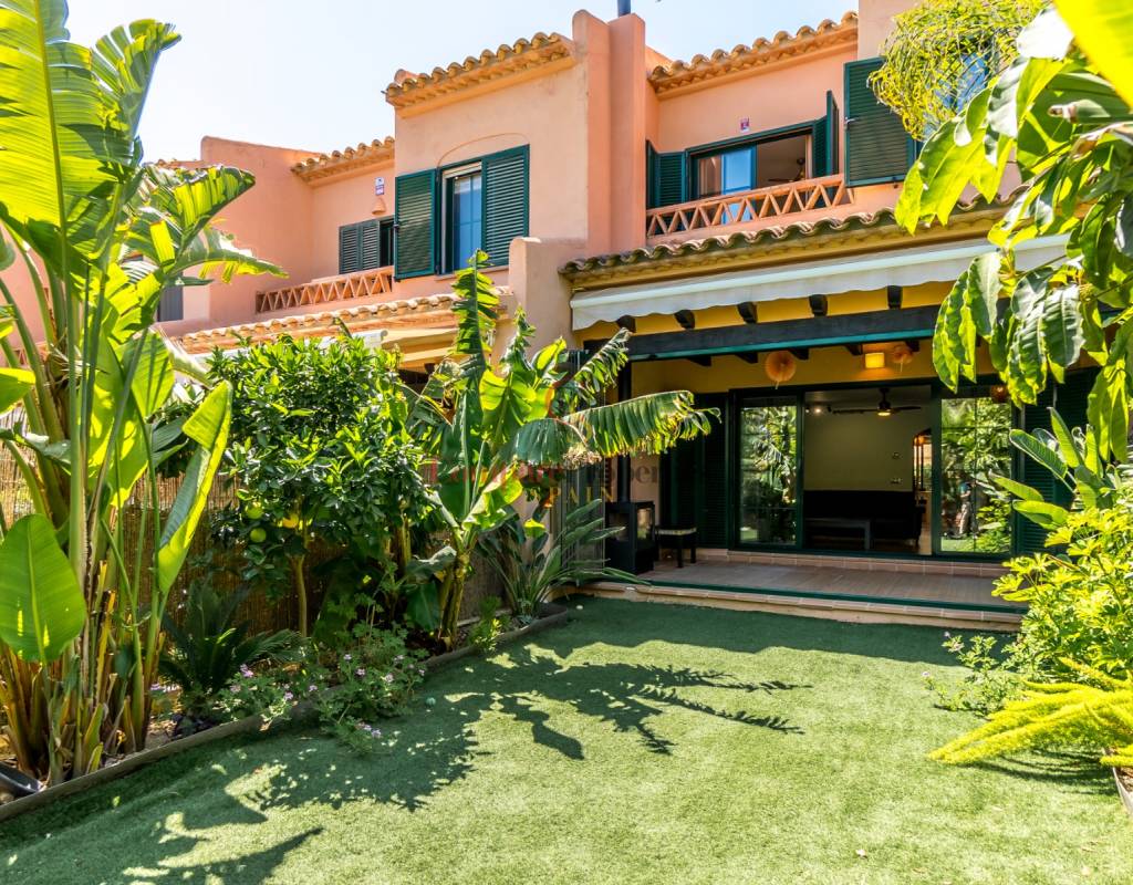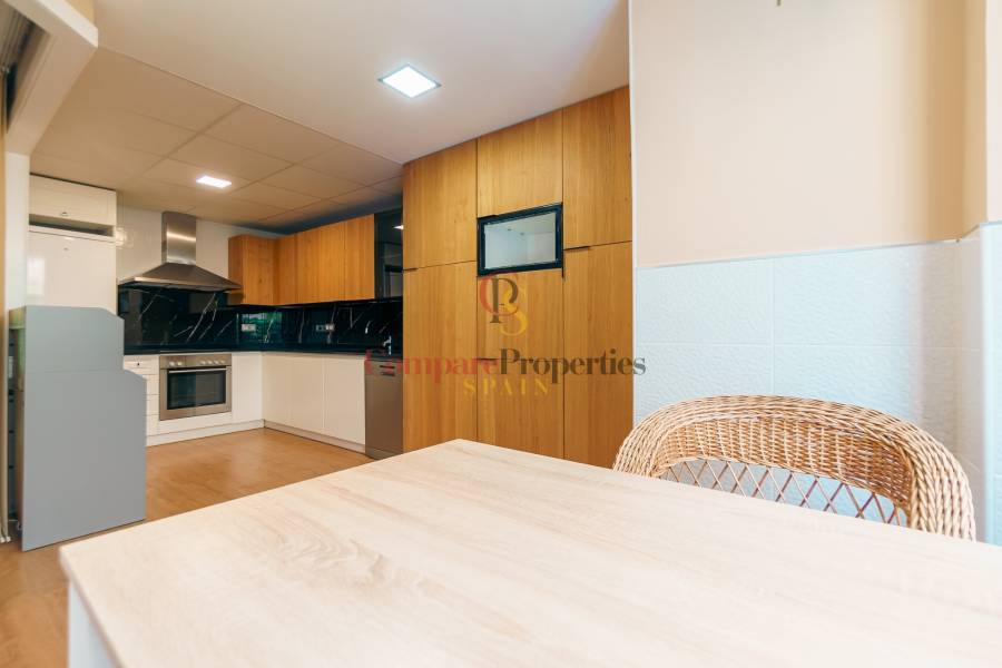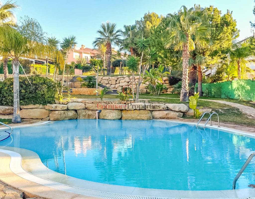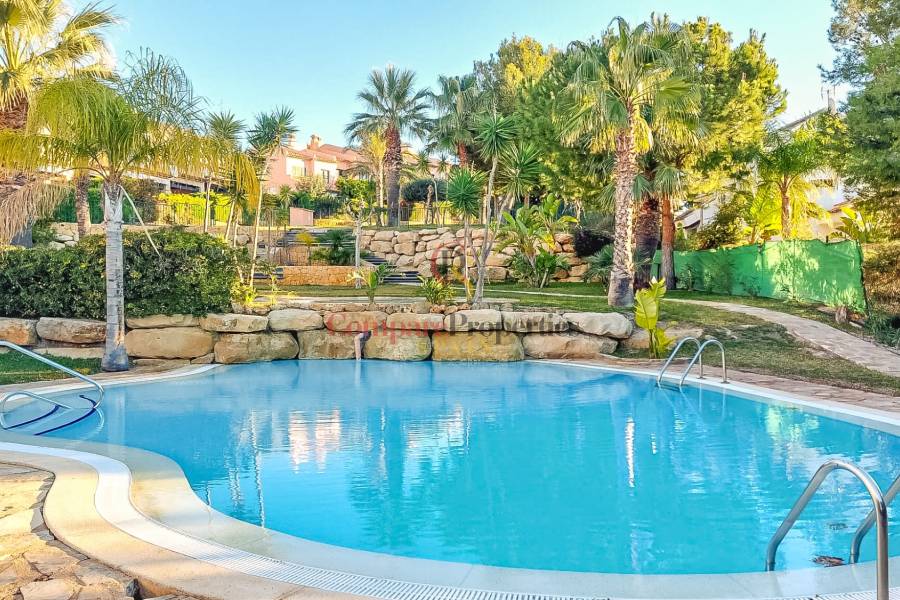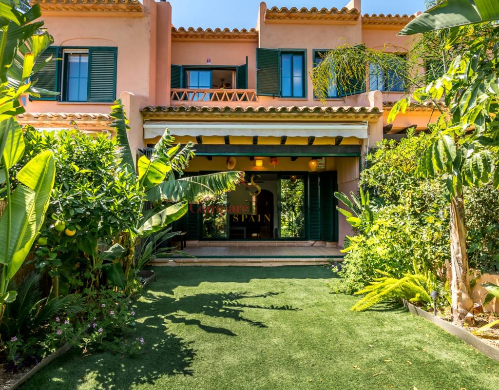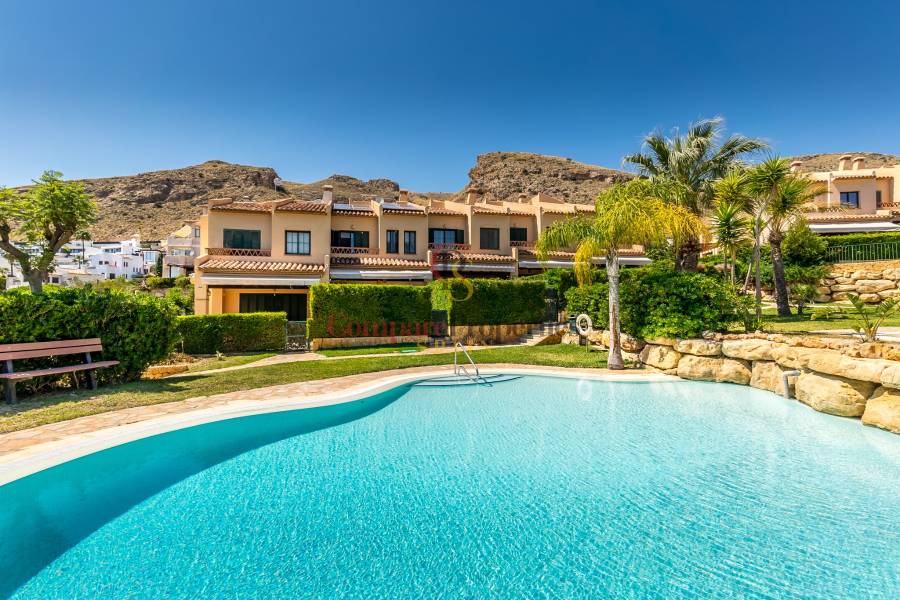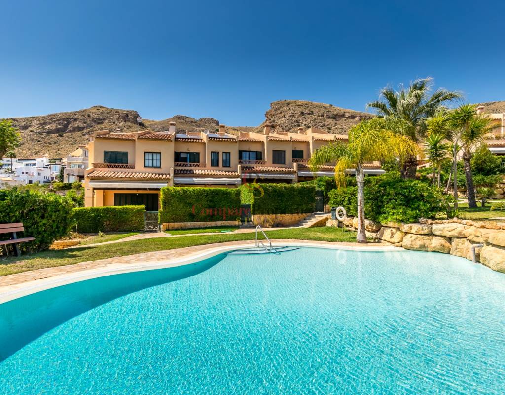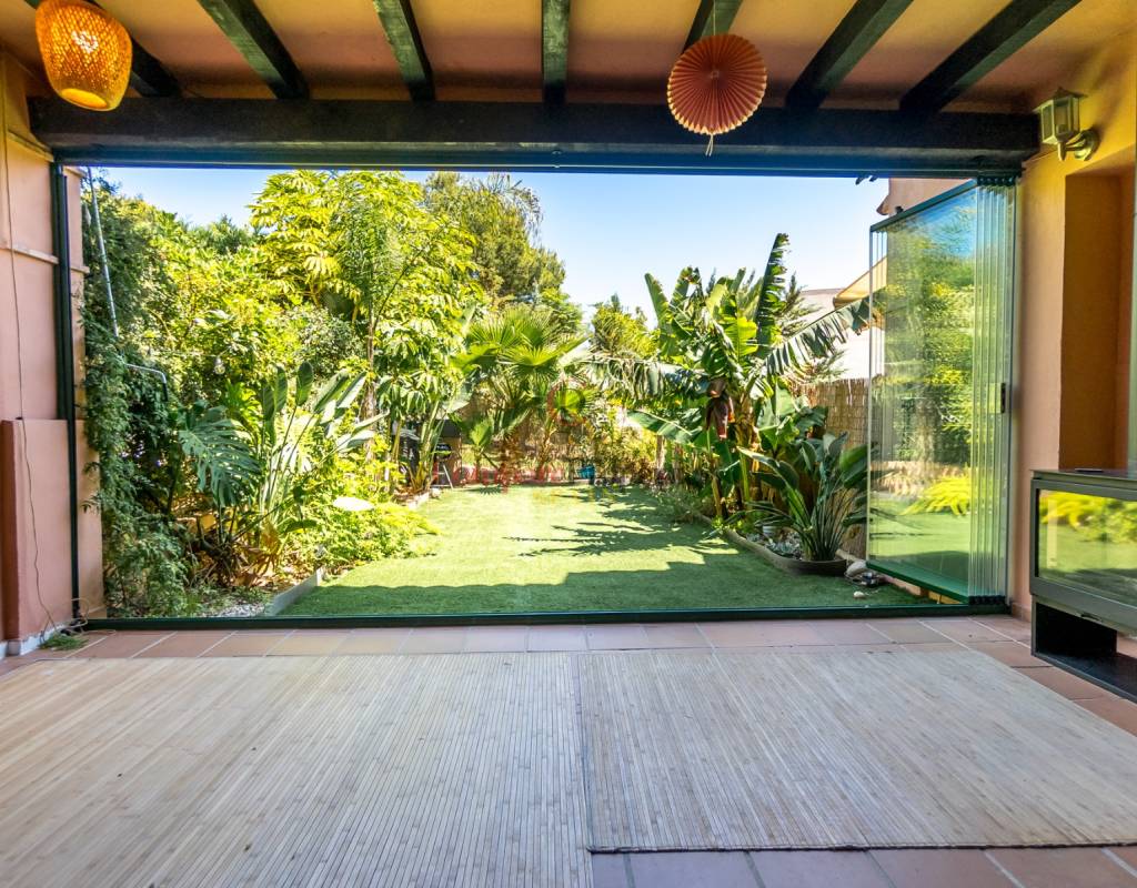 Wonderful townhouse with private garden in Sierra Cortina, FinestratLocated in an exclusive gated community with 24h security, this charming townhouse offers the perfect combination of tranquility, comfort and safety, just 5 minutes by car from Poniente beach and Cala de Finestrat.Very close to the La Marina Finestrat Shopping Centre, Carrefour, Mercadona and other services – all accessible by car or a pleasant 20-minute walk. The setting is privileged: surrounded by green areas, bike lanes, wide pedestrian paths, the Asia Gardens hotel and Villaitana golf course. Excellent connection to the AP-7 motorway, just 2 km away.Highlighted features:- Possibility to build a basement of approximately 60 m² under the house.- Well-maintained development with maintenance staff, concierge and gardening services.- 4 communal swimming pools, landscaped areas with grass and palm trees, some with sea views.- Direct access from the private garden to the pool, ensuring both privacy and convenience.Private gardens:- Front garden with storage shed.- Spacious rear garden beautifully landscaped with orange tree, coconut palm, banana tree, lemon tree, palm trees and other tropical plants, with automatic irrigation included in the community fee.Interiors:- Ducted air conditioning (hot/cold) with independent control per floor, and ceiling fans in the living room and master bedroom.- Renovated kitchen with high-quality materials, large window and all appliances included (fridge, hob, oven, dishwasher, washing machine and dining table).- Guest toilet on the ground floor and large furnished living room with sofa beds, opening onto a fully retractable frameless glazed porch terrace, with a modern wood or pellet fireplace.Upper floor:- 3 bedrooms with built-in wardrobes and 2 full bathrooms (one with a shower and one with a bathtub).- Master bedroom with walk-in wardrobe, en-suite bathroom renovated with high-quality materials, and access to a balcony with garden and sea views.- Double glazed Climalit windows in the sunniest and windiest areas for better insulation.- Mosquito screens on all windows.- Included: storage beds, nearly-new mattresses and all bedroom furniture.Extras:- Parking space included. Additional communal parking area in front of the house with space for multiple vehicles.- Negotiable price.A unique opportunity to live or holiday in a privileged area, surrounded by nature, with all services nearby and excellent quality of life.Don’t miss out on this home that has it all!