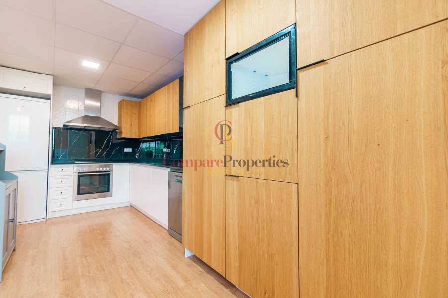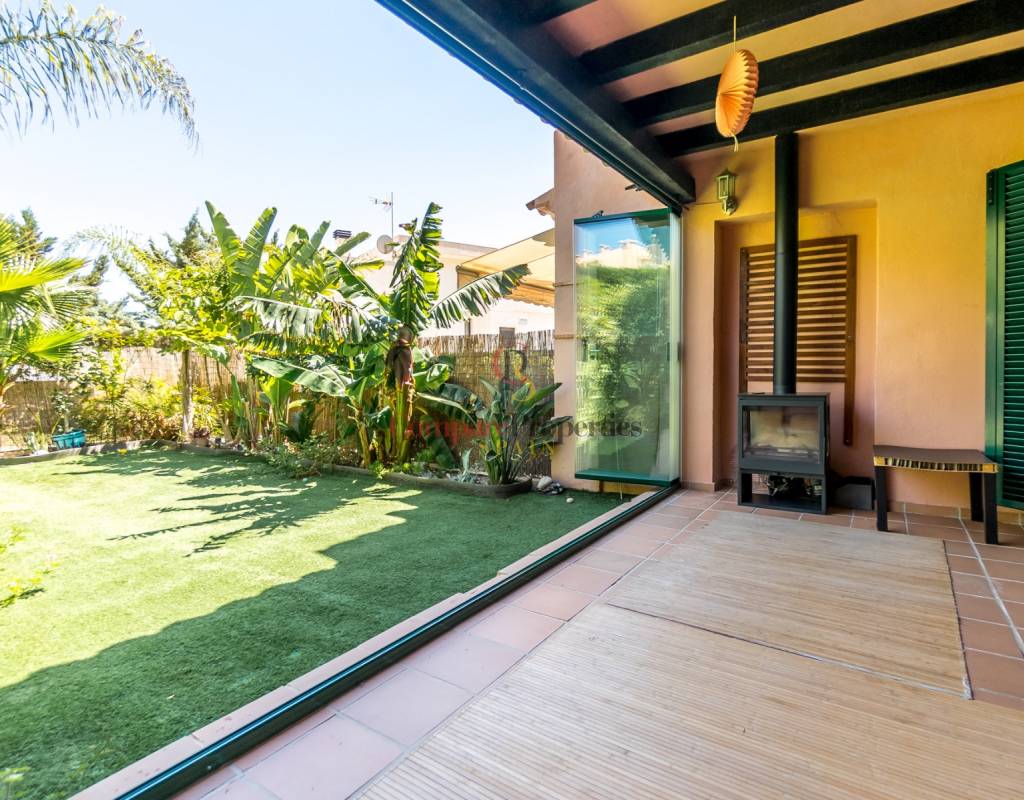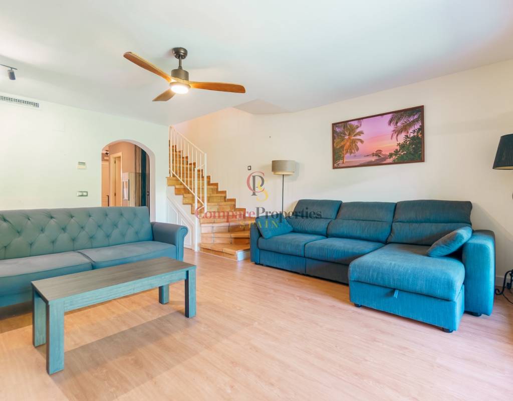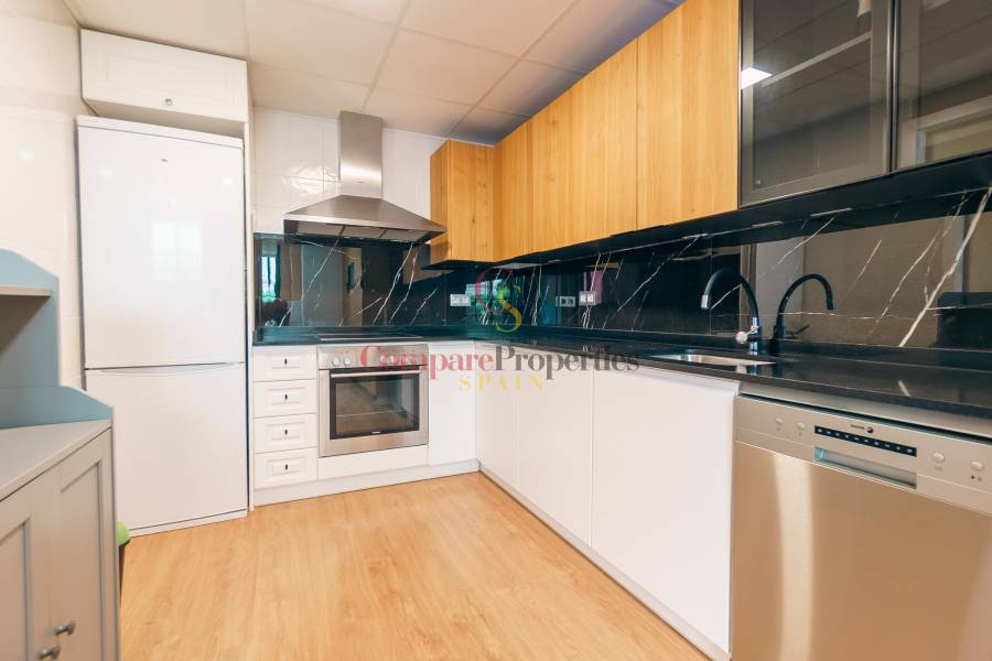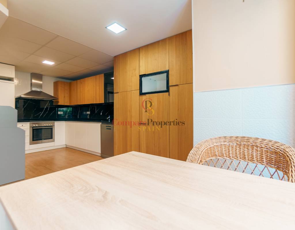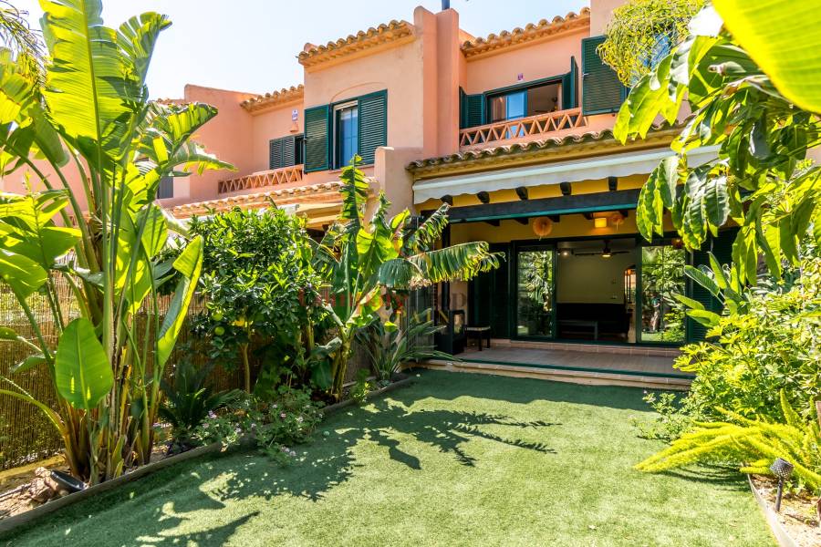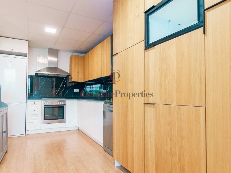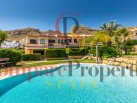 Wonderful townhouse with private garden in Sierra Cortina, FinestratLocated in an exclusive gated community with 24h security, this charming townhouse offers the perfect combination of tranquility, comfort and safety, just 5 minutes by car from Poniente beach and Cala de Finestrat.Very close to the La Marina Finestrat Shopping Centre, Carrefour, Mercadona and other services – all accessible by car or a pleasant 20-minute walk. The setting is privileged: surrounded by green areas, bike lanes, wide pedestrian paths, the Asia Gardens hotel and Villaitana golf course. Excellent connection to the AP-7 motorway, just 2 km away.Highlighted features:- Possibility to build a basement of approximately 60 m² under the house.- Well-maintained development with maintenance staff, concierge and gardening services.- 4 communal swimming pools, landscaped areas with grass and palm trees, some with sea views.- Direct access from the private garden to the pool, ensuring both privacy and convenience.Private gardens:- Front garden with storage shed.- Spacious rear garden beautifully landscaped with orange tree, coconut palm, banana tree, lemon tree, palm trees and other tropical plants, with automatic irrigation included in the community fee.Interiors:- Ducted air conditioning (hot/cold) with independent control per floor, and ceiling fans in the living room and master bedroom.- Renovated kitchen with high-quality materials, large window and all appliances included (fridge, hob, oven, dishwasher, washing machine and dining table).- Guest toilet on the ground floor and large furnished living room with sofa beds, opening onto a fully retractable frameless glazed porch terrace, with a modern wood or pellet fireplace.Upper floor:- 3 bedrooms with built-in wardrobes and 2 full bathrooms (one with a shower and one with a bathtub).- Master bedroom with walk-in wardrobe, en-suite bathroom renovated with high-quality materials, and access to a balcony with garden and sea views.- Double glazed Climalit windows in the sunniest and windiest areas for better insulation.- Mosquito screens on all windows.- Included: storage beds, nearly-new mattresses and all bedroom furniture.Extras:- Parking space included. Additional communal parking area in front of the house with space for multiple vehicles.- Negotiable price.A unique opportunity to live or holiday in a privileged area, surrounded by nature, with all services nearby and excellent quality of life.Don’t miss out on this home that has it all!