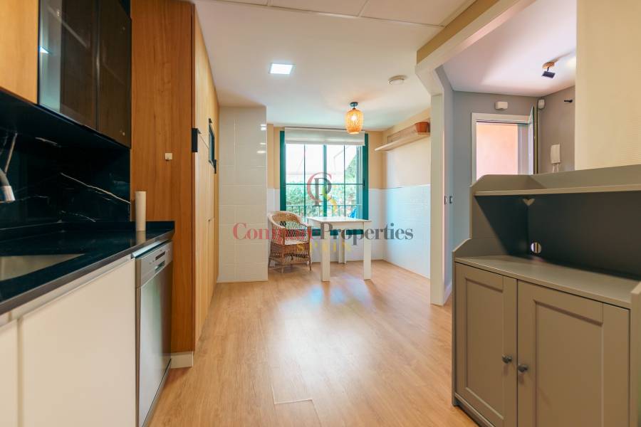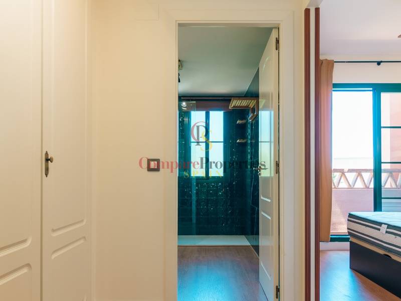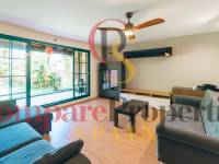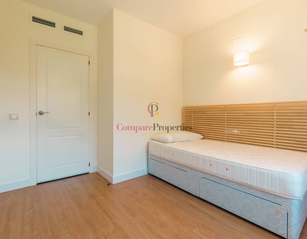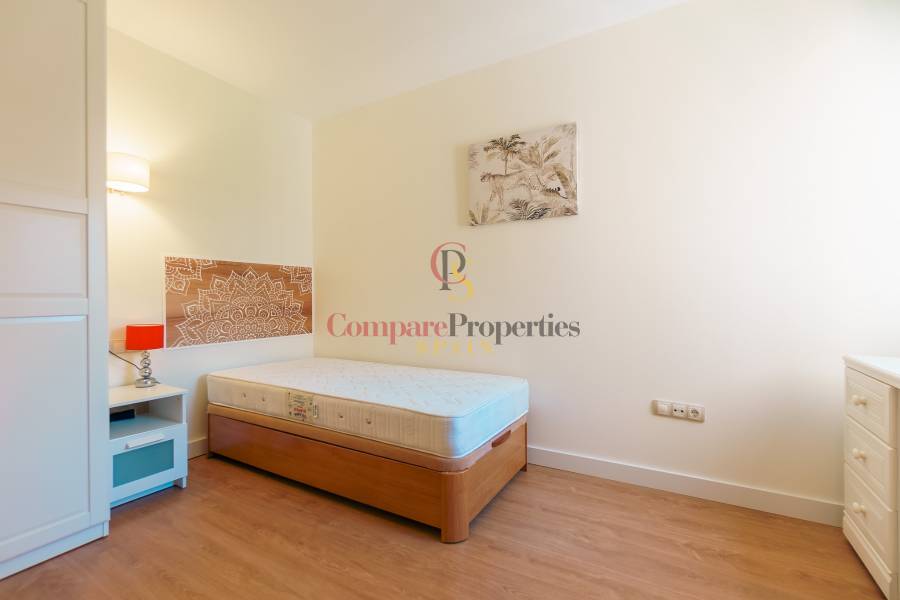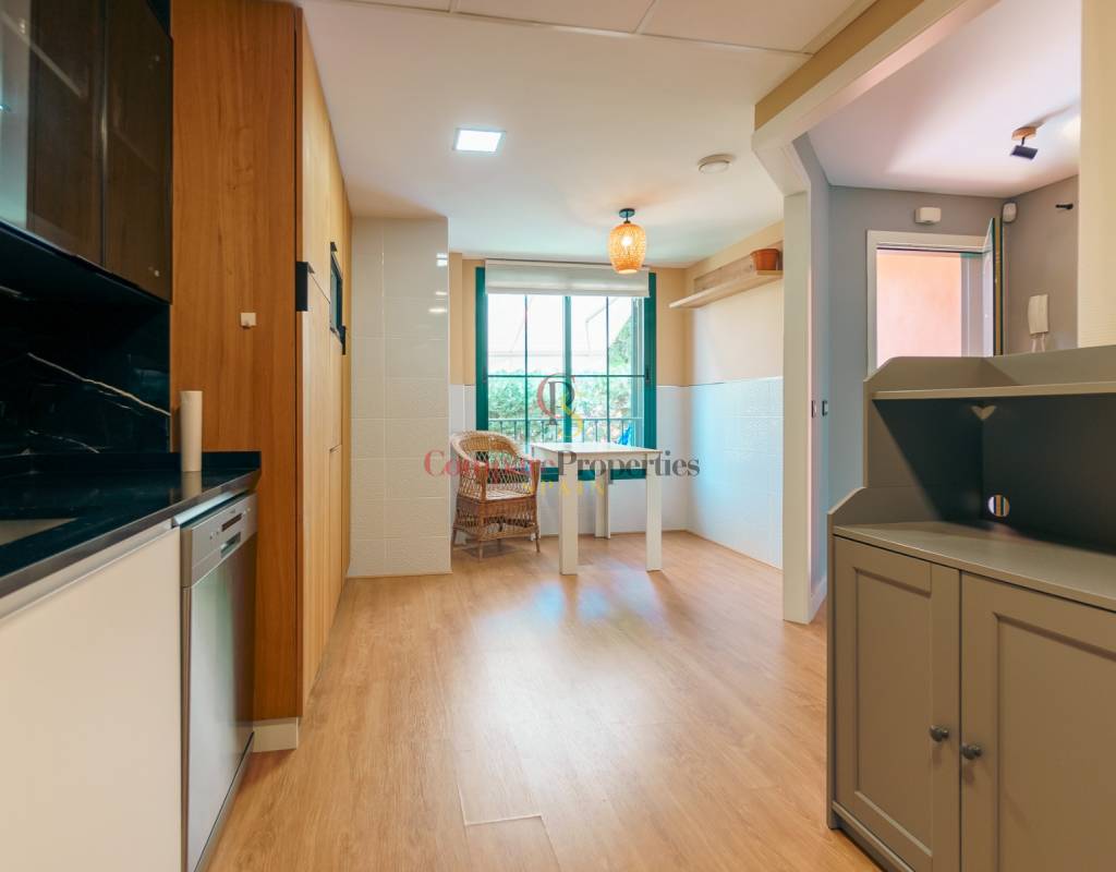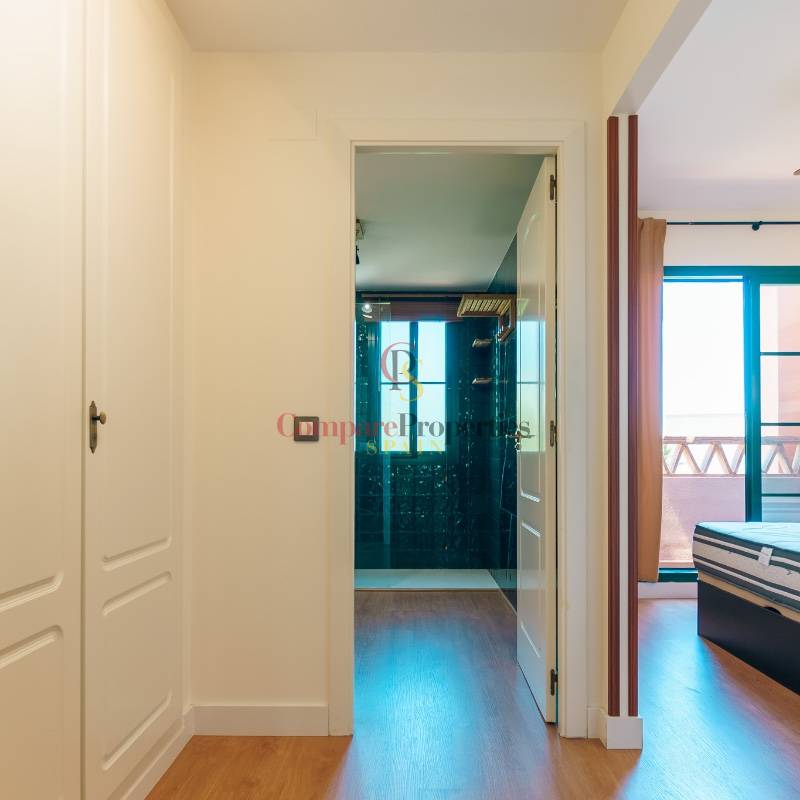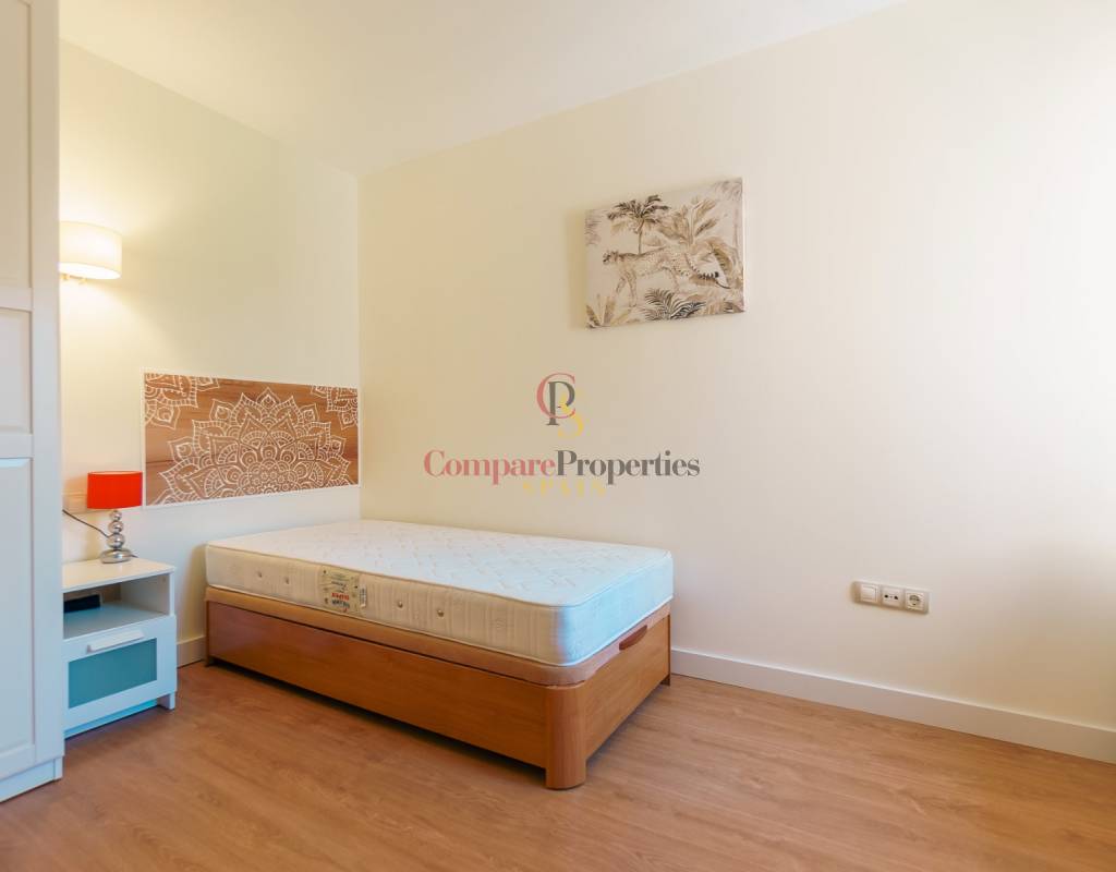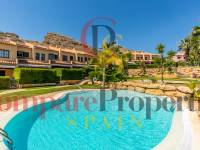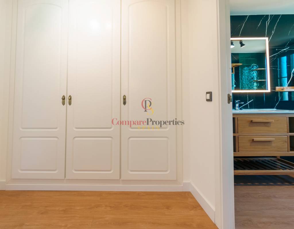 Wonderful townhouse with private garden in Sierra Cortina, FinestratLocated in an exclusive gated community with 24h security, this charming townhouse offers the perfect combination of tranquility, comfort and safety, just 5 minutes by car from Poniente beach and Cala de Finestrat.Very close to the La Marina Finestrat Shopping Centre, Carrefour, Mercadona and other services – all accessible by car or a pleasant 20-minute walk. The setting is privileged: surrounded by green areas, bike lanes, wide pedestrian paths, the Asia Gardens hotel and Villaitana golf course. Excellent connection to the AP-7 motorway, just 2 km away.Highlighted features:- Possibility to build a basement of approximately 60 m² under the house.- Well-maintained development with maintenance staff, concierge and gardening services.- 4 communal swimming pools, landscaped areas with grass and palm trees, some with sea views.- Direct access from the private garden to the pool, ensuring both privacy and convenience.Private gardens:- Front garden with storage shed.- Spacious rear garden beautifully landscaped with orange tree, coconut palm, banana tree, lemon tree, palm trees and other tropical plants, with automatic irrigation included in the community fee.Interiors:- Ducted air conditioning (hot/cold) with independent control per floor, and ceiling fans in the living room and master bedroom.- Renovated kitchen with high-quality materials, large window and all appliances included (fridge, hob, oven, dishwasher, washing machine and dining table).- Guest toilet on the ground floor and large furnished living room with sofa beds, opening onto a fully retractable frameless glazed porch terrace, with a modern wood or pellet fireplace.Upper floor:- 3 bedrooms with built-in wardrobes and 2 full bathrooms (one with a shower and one with a bathtub).- Master bedroom with walk-in wardrobe, en-suite bathroom renovated with high-quality materials, and access to a balcony with garden and sea views.- Double glazed Climalit windows in the sunniest and windiest areas for better insulation.- Mosquito screens on all windows.- Included: storage beds, nearly-new mattresses and all bedroom furniture.Extras:- Parking space included. Additional communal parking area in front of the house with space for multiple vehicles.- Negotiable price.A unique opportunity to live or holiday in a privileged area, surrounded by nature, with all services nearby and excellent quality of life.Don’t miss out on this home that has it all!