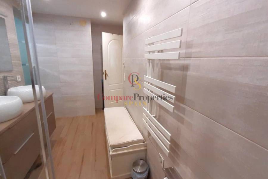 With a 372 m2 corner plot, it is distributed on a single floor with two spacious bedrooms with built-in wardrobes, a fully updated bathroom with underfloor heating and a separate laundry area, and a kitchen-diner with a large bar with cabinets on both sides and plenty of storage space.