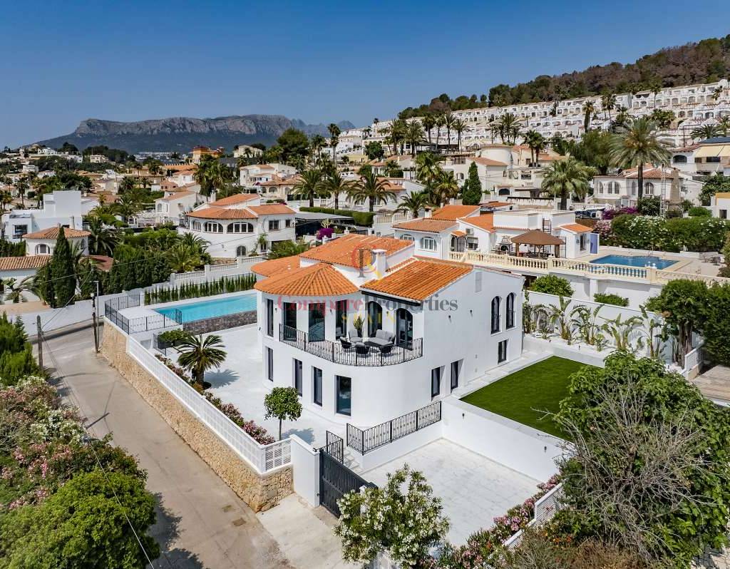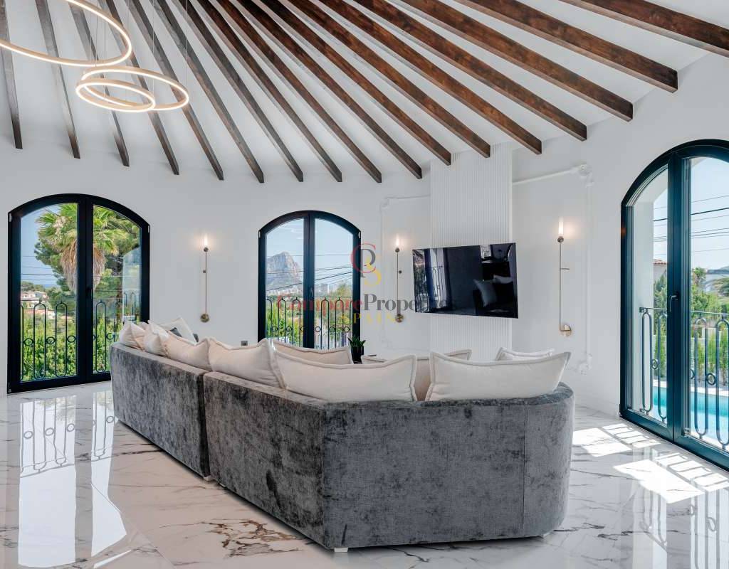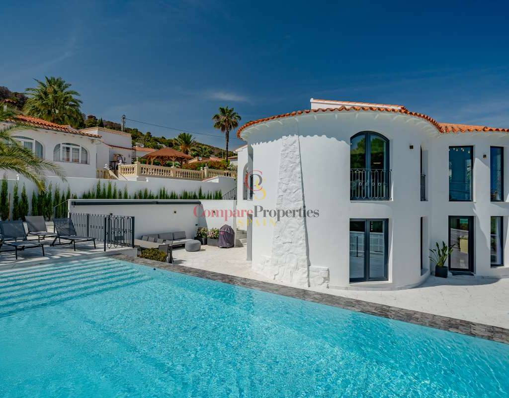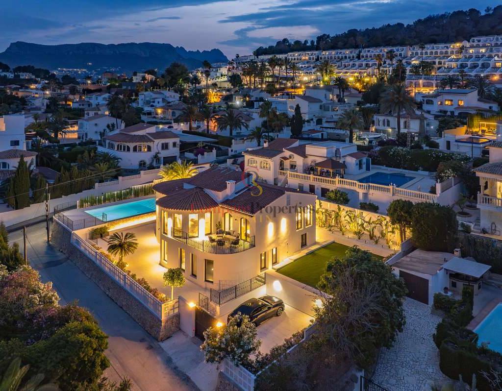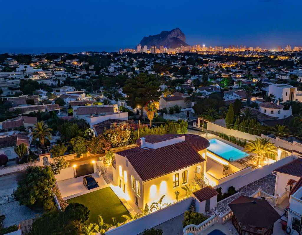 Live the Mediterranean dream: Exclusive Ibizan-style villa in Calpe. This impressive property, built in a residential area of Calpe, offers a life of luxury and comfort. Its innovative design orients all main rooms southeast, ensuring exceptional light and a constant connection with the idyllic landscape, without losing its authentic modern essence. Enjoy each setting year-round, adapting to your needs.br>br> With five bedrooms (three of them en suite) and a guest bathroom, this villa is designed for comfort. The open-plan kitchen blends seamlessly into the living-dining room, a generous, open-plan space with a fully glazed facade that blurs the boundaries with the exterior. Feel how the garden invades the house, and how the water, reflected in it, brings a vital energy to this home.br>br> The exterior is an extension of the interior luxury. A porch with outdoor dining is perfect for any time of day, complemented by a barbecue and a large terrace with a giant infinity pool.br>br>VIDEO LINK:br>br>(https://vimeo.com/1095548440)br>br>(https://vimeo.com/1095548522)