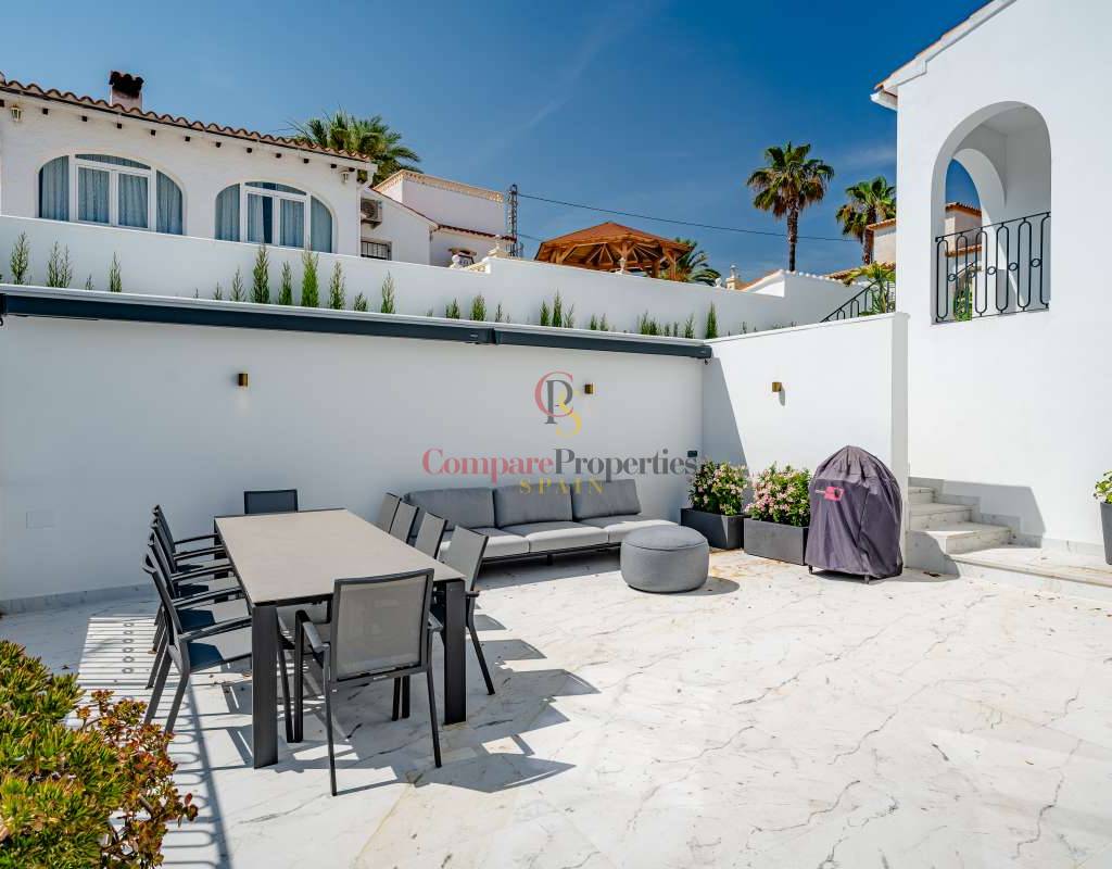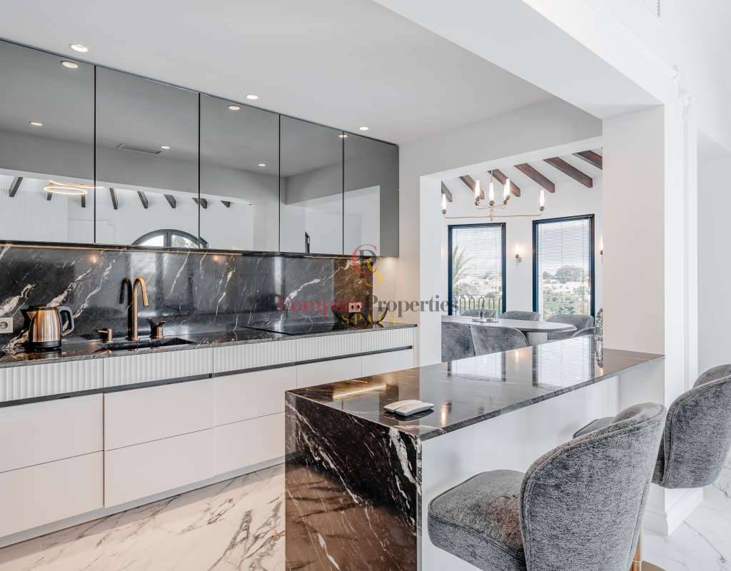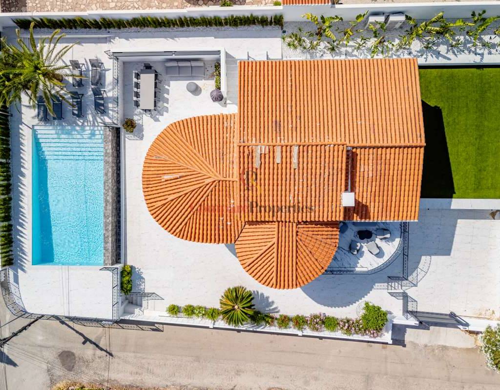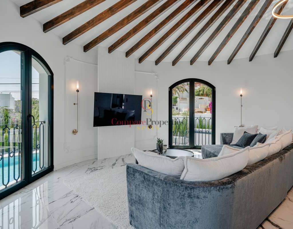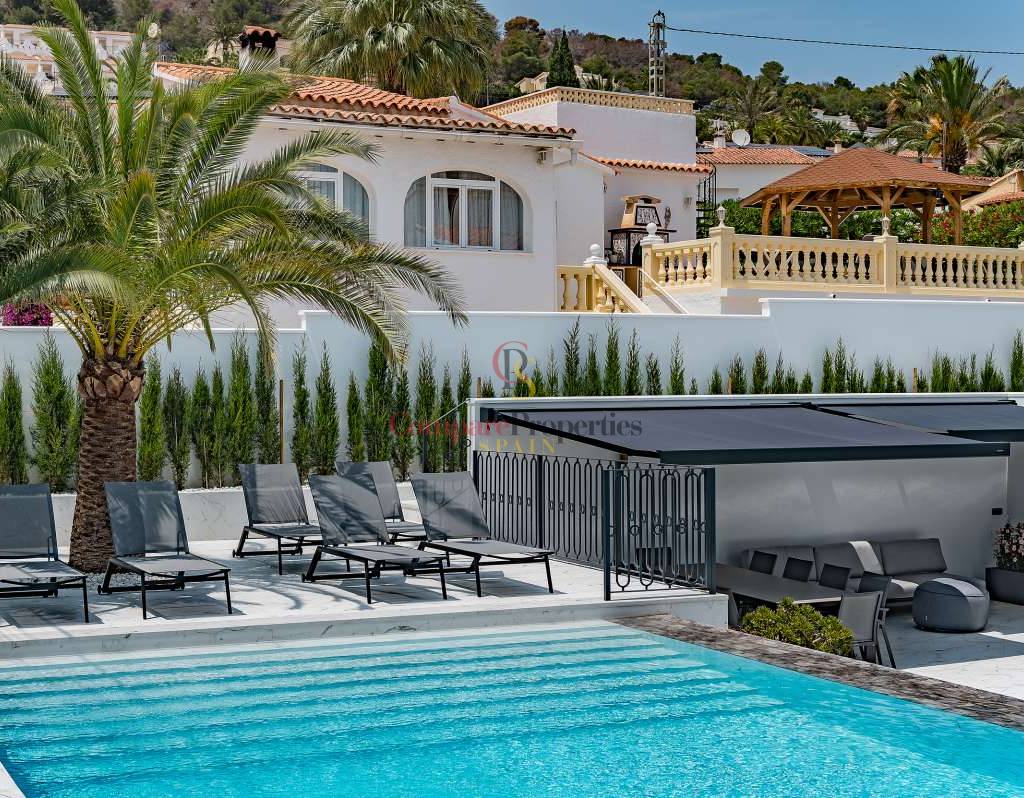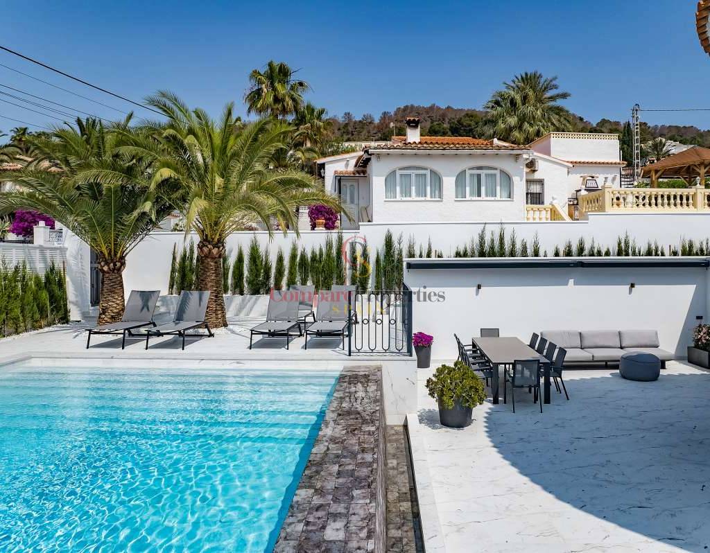 Live the Mediterranean dream: Exclusive Ibizan-style villa in Calpe. This impressive property, built in a residential area of Calpe, offers a life of luxury and comfort. Its innovative design orients all main rooms southeast, ensuring exceptional light and a constant connection with the idyllic landscape, without losing its authentic modern essence. Enjoy each setting year-round, adapting to your needs.br>br> With five bedrooms (three of them en suite) and a guest bathroom, this villa is designed for comfort. The open-plan kitchen blends seamlessly into the living-dining room, a generous, open-plan space with a fully glazed facade that blurs the boundaries with the exterior. Feel how the garden invades the house, and how the water, reflected in it, brings a vital energy to this home.br>br> The exterior is an extension of the interior luxury. A porch with outdoor dining is perfect for any time of day, complemented by a barbecue and a large terrace with a giant infinity pool.br>br>VIDEO LINK:br>br>(https://vimeo.com/1095548440)br>br>(https://vimeo.com/1095548522)