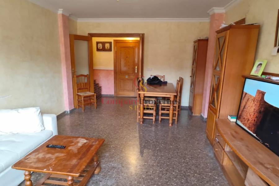 Apartment semi-renovated in the historic center of Denia.The property is located on the 1st floor. It has 116m2 built distributed in 3 bedrooms, 1 bathroom, living-dining room, closed kitchen, and gallery with access to the terrace from the bedroom.Storage room of 6 m2 on the terrace.Community parking for residents.Call us to schedule a visit!