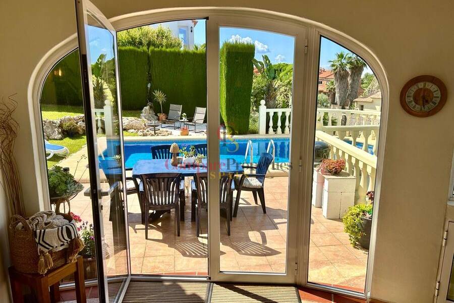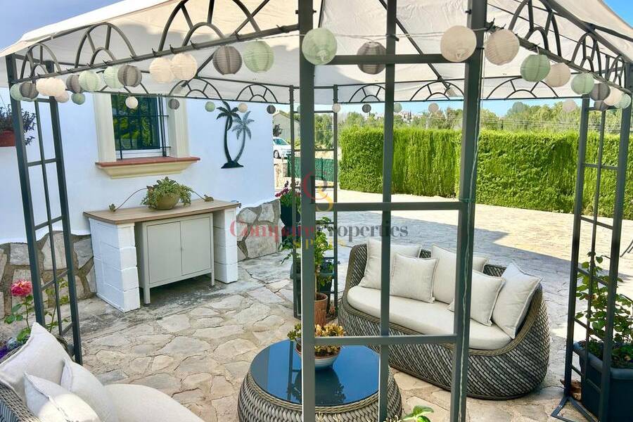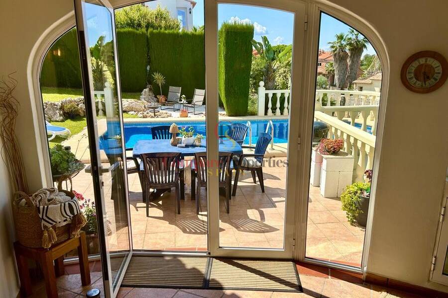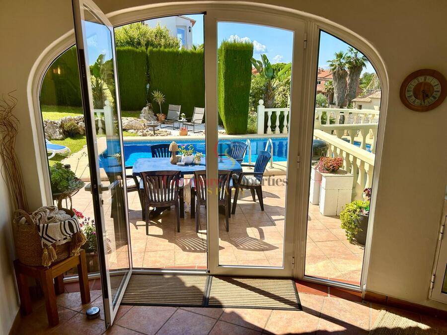 A pretty and traditional villa situated in a quiet friendly town and just a short drive to the beaches. This is not a massive family house but a massive house for a small family. With 178m² build size and a private swimming pool, 2 bedrooms and countryside views you will not be disappointed.Approach with off road parking for several vehicles, garage, outside lighting, gazebo fir shaded seating, fruit trees, 8x4 private swimming pool and views over the valley.A few steps leading to the main accommodation, the naya has beautiful views over the valley, exposed timber beams and lighting. Enclosed by windows yes perfect to open for the lovely Mediterranean breeze.Sitting room with a feature wood burning stove, windows to the side and front which means plenty of natural light, wood burning stove inset into a fireplace with a mantle over. Hot and cold air conditioning unit.Dinign room currently used for an office space.Kitchen with a range of base and wall units, fridge freezer, oven, hob and extractor, dishwasher and a window.Bedroom 1 with a window and lighting and an ensuite shower room with a walk in shower, W.C, vanity unit and window.Family shower room with a walk in shower, W.C, vanity unit and a window.Bedroom 2 is a double bedroom with built in double wardrobes and a window.Rafol D’Almunia is a very friendly small town, close to Pego one side of the mountain and Orba the other side.If you are looking for the quiet life and away from the maddening crowds of the beaches and tourism this could be the small town for you.