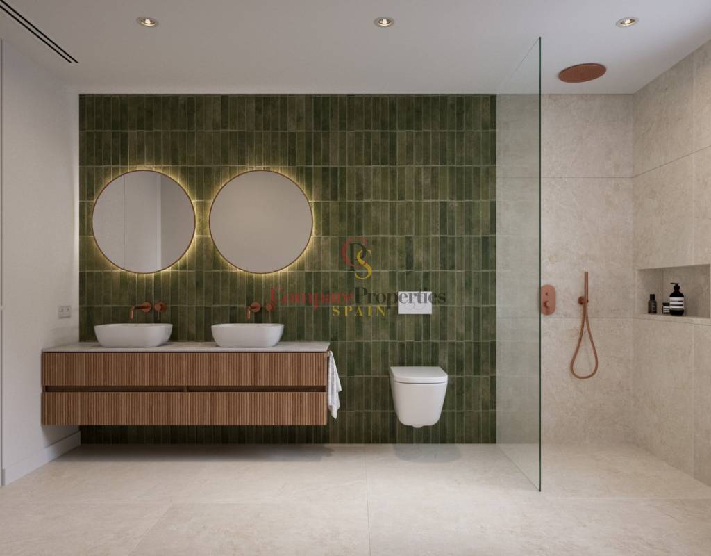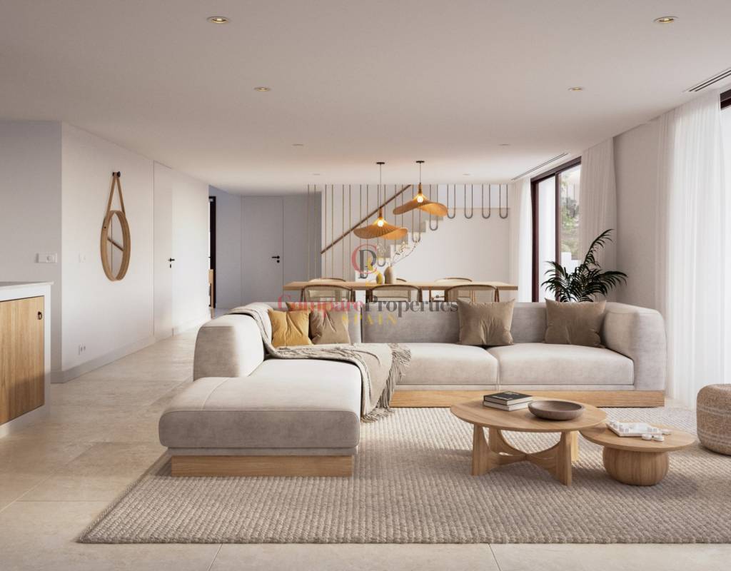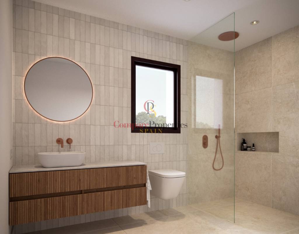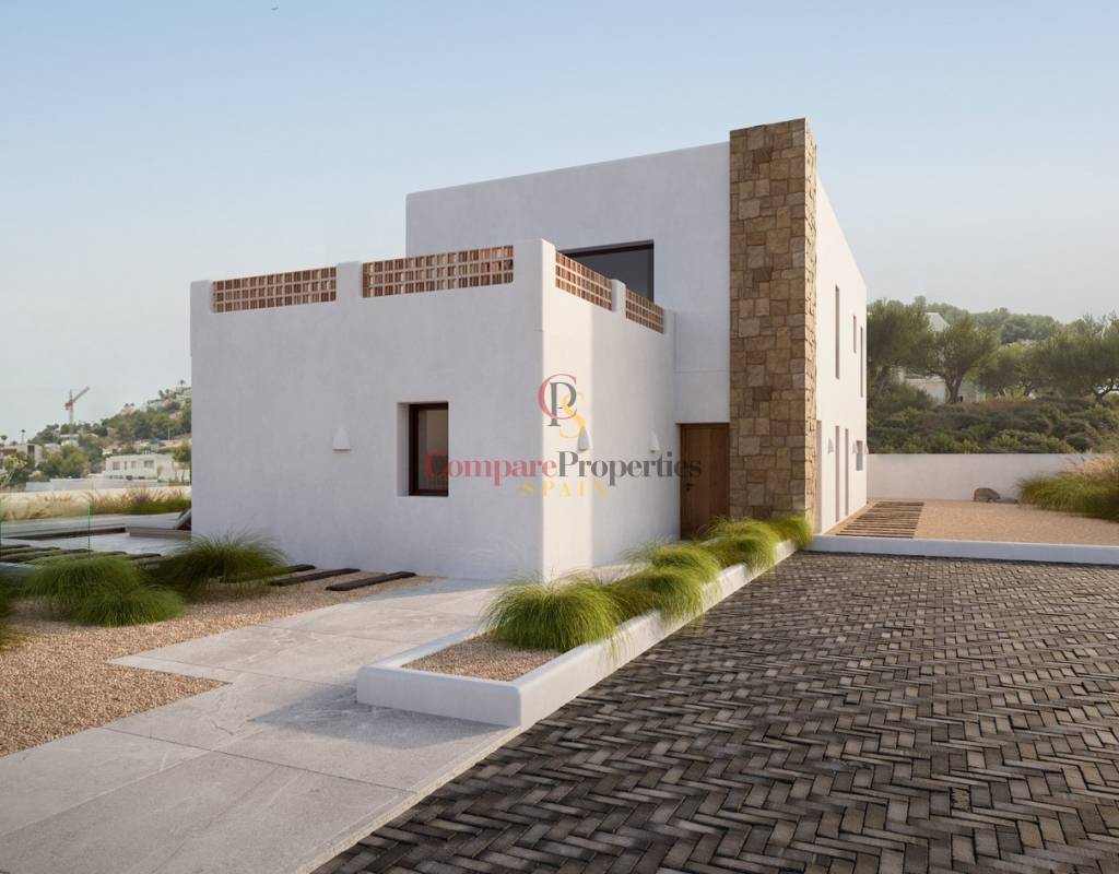 Welcome to our new development in Benimeit, Moraira: a modern villa inspired by Ibiza style in, one of the most sought-after areas. Located on an 800 m² south-facing plot, this elegant property offers a refined combination of peace, luxury, and Mediterranean ambiance, with some sea view from the ground floor and better sea views from the first floor. The villa is designed in a modern Ibiza style, with warm, natural accents and an open layout that radiates tranquility and spaciousness. With a living area of 254 m² and a total built area of 559 m², this home is both elegant and functional. The bright living area forms the heart of the house: an open living room and a luxury kitchen with cooking island. The villa features three bedrooms and two bathrooms, including a master suite with en-suite bathroom and direct access to a large balcony. The other bedrooms are ideal for family or guests. Outside, a spacious sunny terrace gives access to a private swimming pool, the perfect place to enjoy the Mediterranean climate in complete tranquility. Naturally, there is private parking on the property. This villa is ideal for those seeking peace, privacy, as well as for families looking for a charming and well-located home. Benimeit is known for its calm atmosphere, green surroundings, and beautiful views.- Key points:- Underfloor heating- Air conditioning- Furnished- Private pool- Easy maintenance garden- Parking- Top quality finished throughout- Construction commences 2025- Clients choice of kitchen, bathrooms and tiles- For further information please do not hesitate to contact us.- Distances:- 1km to supermarket and restaurants- 1.7km to a shopping centre- 3.3km to beach and town centre- 3.9km to golf- 6.9km to motorway access in Benissa