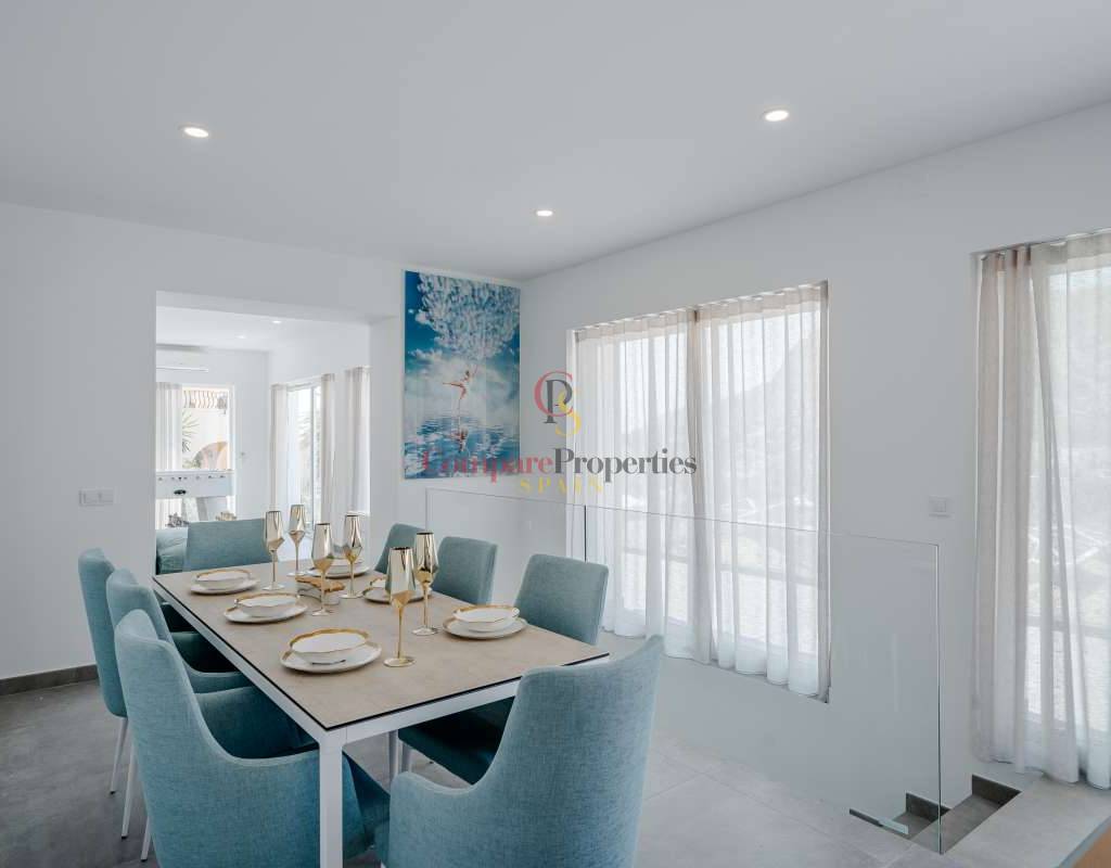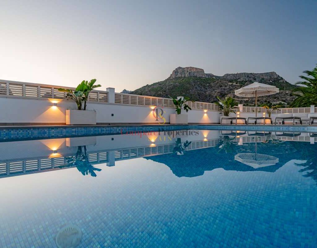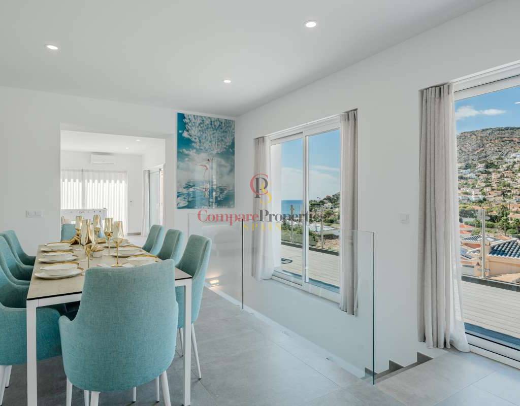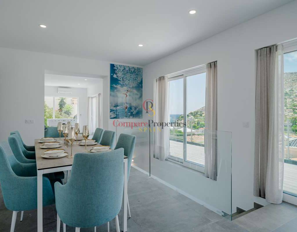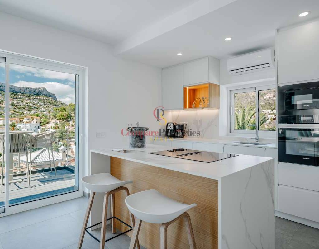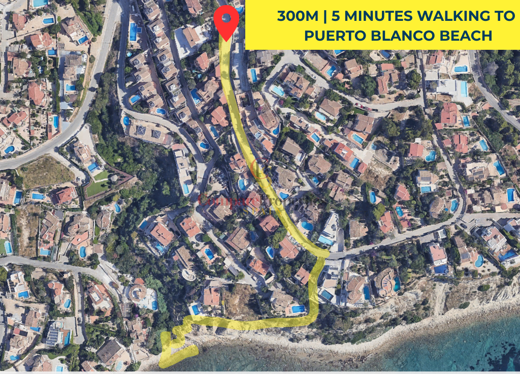 Imagine your life in this Mediterranean villa, fully furnished and decorated, ready for you to move in. It's the perfect setting for an unforgettable vacation or your dream home.br>br> Located just steps from the idyllic Puerto Blanco Beach and the new Marina Port Blanc in Calpe, you'll enjoy the tranquility of the Mediterranean Sea and an exceptional setting. From its terrace and porch, the stunning sea and mountain views will invite you to relax in the large pool or enjoy a barbecue with your loved ones.br>br> The villa offers spaces designed for enjoyment: a living room with a foosball table ideal for all ages, a modern open kitchen with an island, and a dining table for eight, all with direct access to the terrace. The main floor features two bedrooms and a spacious bathroom. Downstairs, you'll find a spacious suite with direct access to the pool, as well as another bedroom and bathroom.br>br> Ample parking with a shaded area for your comfort and private outdoor parking for your visitors.br>br> Don't think twice. This villa is the ideal place to create lasting memories. Plus, if you're looking for an investment, it comes with a tourist license, ready to generate income.br>br> Contact us today for more information and to schedule your visit!