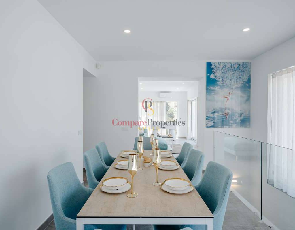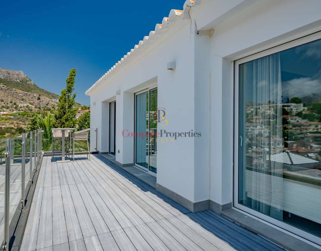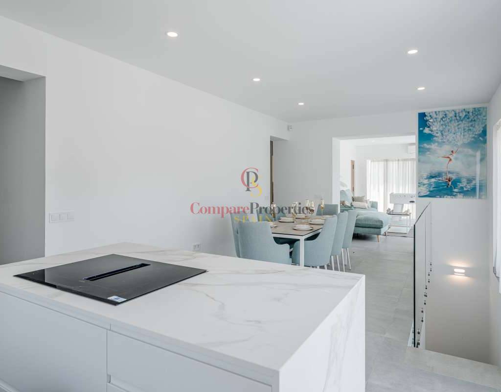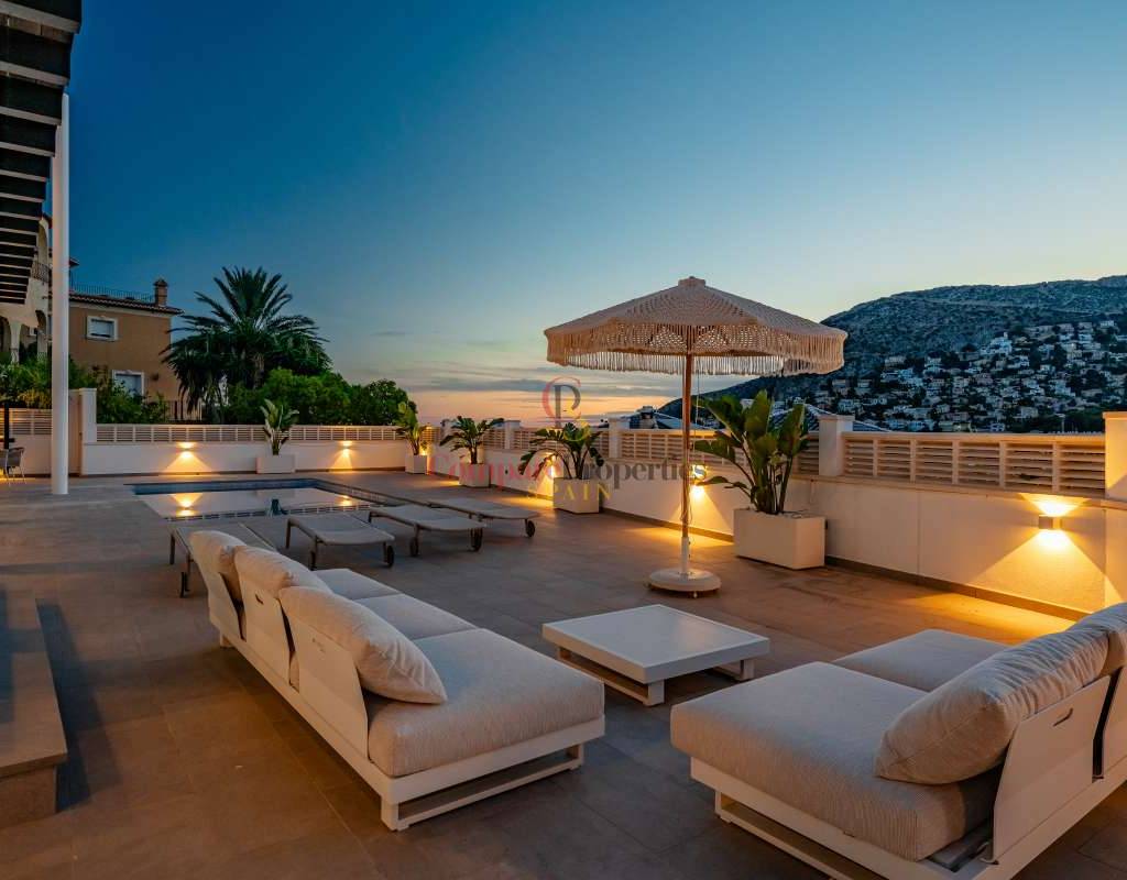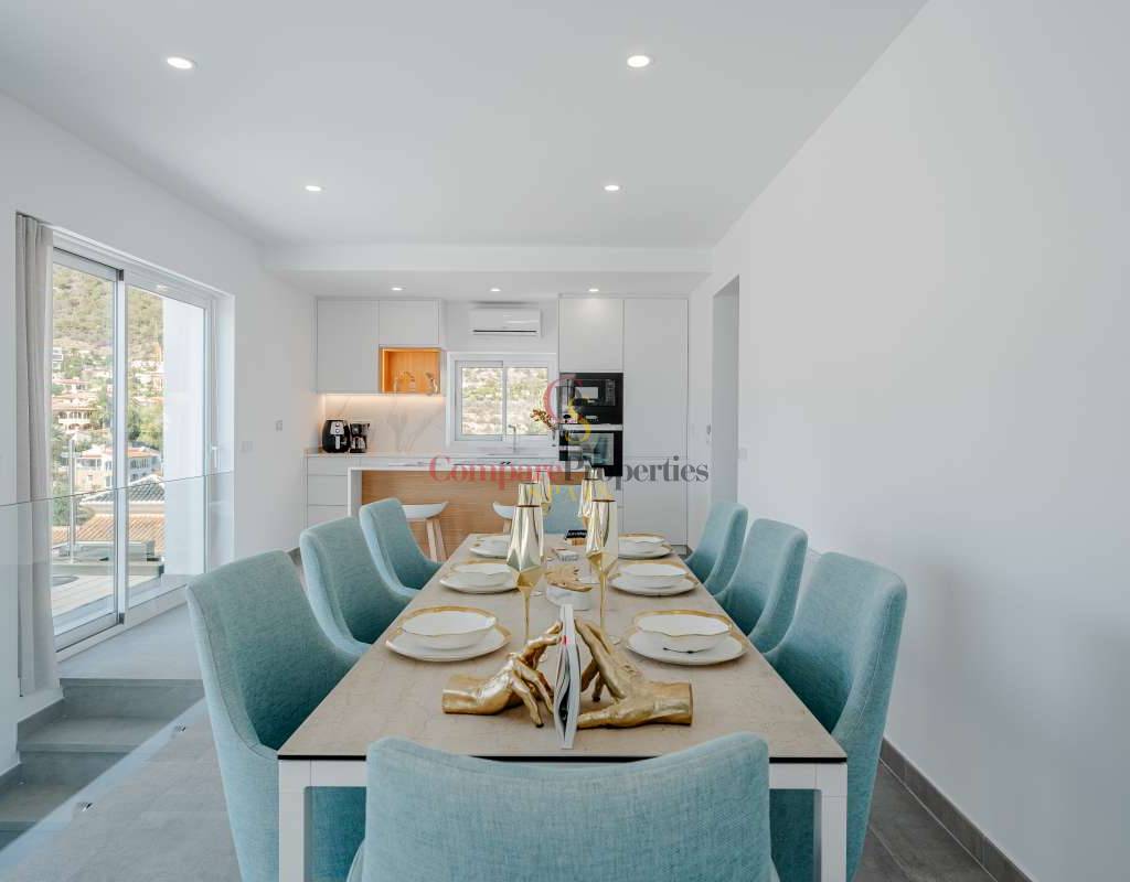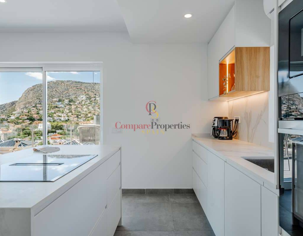 Imagine your life in this Mediterranean villa, fully furnished and decorated, ready for you to move in. It's the perfect setting for an unforgettable vacation or your dream home.br>br> Located just steps from the idyllic Puerto Blanco Beach and the new Marina Port Blanc in Calpe, you'll enjoy the tranquility of the Mediterranean Sea and an exceptional setting. From its terrace and porch, the stunning sea and mountain views will invite you to relax in the large pool or enjoy a barbecue with your loved ones.br>br> The villa offers spaces designed for enjoyment: a living room with a foosball table ideal for all ages, a modern open kitchen with an island, and a dining table for eight, all with direct access to the terrace. The main floor features two bedrooms and a spacious bathroom. Downstairs, you'll find a spacious suite with direct access to the pool, as well as another bedroom and bathroom.br>br> Ample parking with a shaded area for your comfort and private outdoor parking for your visitors.br>br> Don't think twice. This villa is the ideal place to create lasting memories. Plus, if you're looking for an investment, it comes with a tourist license, ready to generate income.br>br> Contact us today for more information and to schedule your visit!