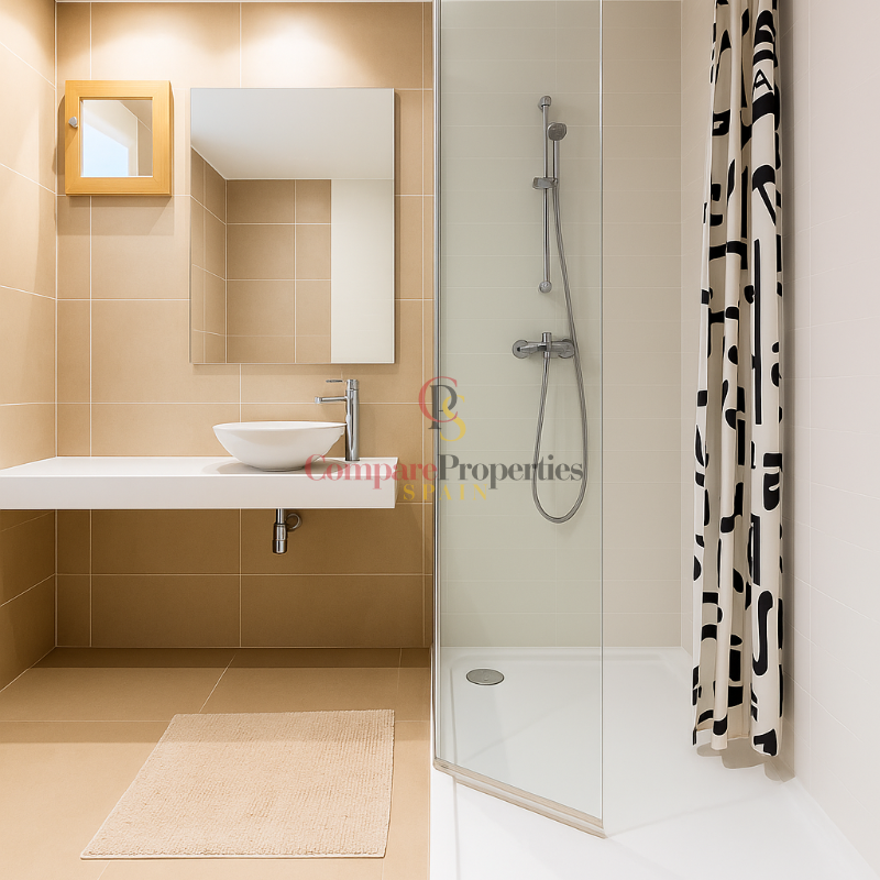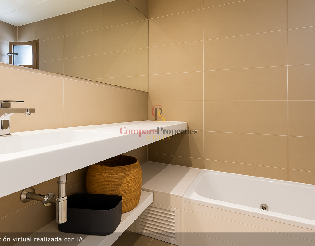 The property has a built area of 94.83 m² and features 2 spacious bedrooms with built-in wardrobes, the main one with an en-suite bathroom, as well as a second full guest bathroom. The kitchen is independent, fully equipped, and has access to a practical utility room. The living room opens onto a spectacular terrace with stunning panoramic sea views.