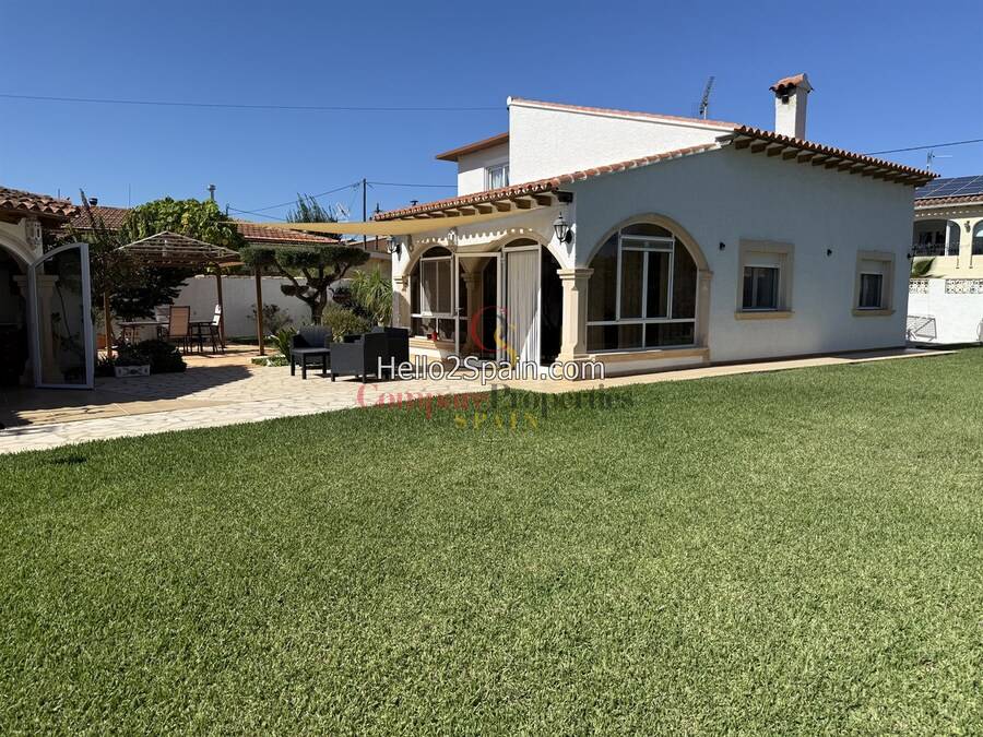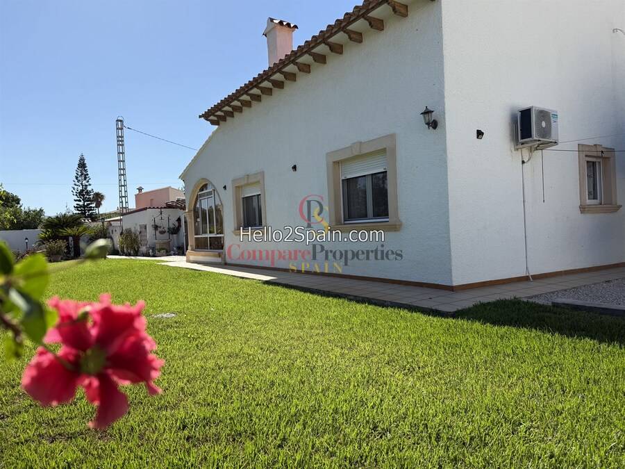 This villa is a few minutes walk from the beaches of Les Deveses on the boarder of Oliva and Denia. Within walking distance to restaurants, beaches, bus and cycle route to Denia. With 3 bedrooms, 2 shower rooms and a main bedroom on the ground floor with a shower room. 2nd floor 2 bedrooms, 1 with a shower, W.C and vanity unit.The approach has off road parking for several vehicles with an electric gate and a pedestrian gate. The garden is enclosed and is a flat plot.Main door leading into the naya with glazed windows, pellet burner and access to the sitting room.Sitting room with a pellet burner, windows to the naya and the side elevation, stairs to the 1st floor and open arches to the kitchen and the main bedroom.Kitchen breakfast room with windows to the rear and side elevation, dining area with a hot and cold air conditioning unit, barrelled ceilings and exposed beams. Kitchen with a range of base and wall units, fitted oven, hob and extractor, upright fridge freezer, dishwasher and display cabinet.Bedroom 1 is a double bedroom with 3 sets of double built in wardrobes, window to the front and rear. This room has been slightly adapted to aid an elderly person. The wall between the shower room and bedroom has a concertina door, this was previously a wall and could easily be built back into place.Shower room off bedroom with a shower, W.C, bidet and where the washing machine is this used to be a wash basin. (Washing machine previously in an outside cupboard, watch the video.)Guest shower room with a shower cubicle and a jacuzzi shower, W.C, bidet, vanity unit, window and lighting.1st floor is accessed by two ways, the internal staircase or the external stairs at the rear of the property. This floor was previously lived in by a family member.Bedroom 2 is a spacious double bedroom with window to the front elevation overlooking the garden, frees standing shower, W.C and a vanity unit. This would benefit from being enclosed to create an ensuite. There is a separate entrance for this room accessed from either outside or inside the property.Bedroom 3 is a double bedroom; this can be accessed from the stairs off the sitting room or there is an internal door from bedroom 2. Watch the video.Outside the garden is a flat plot, plenty of space for a swimming pool the parcel is classed as Urbano and is 771m². The build is 145m².There is a BBQ house, store room, car port, various places to sit, relax and entertain.