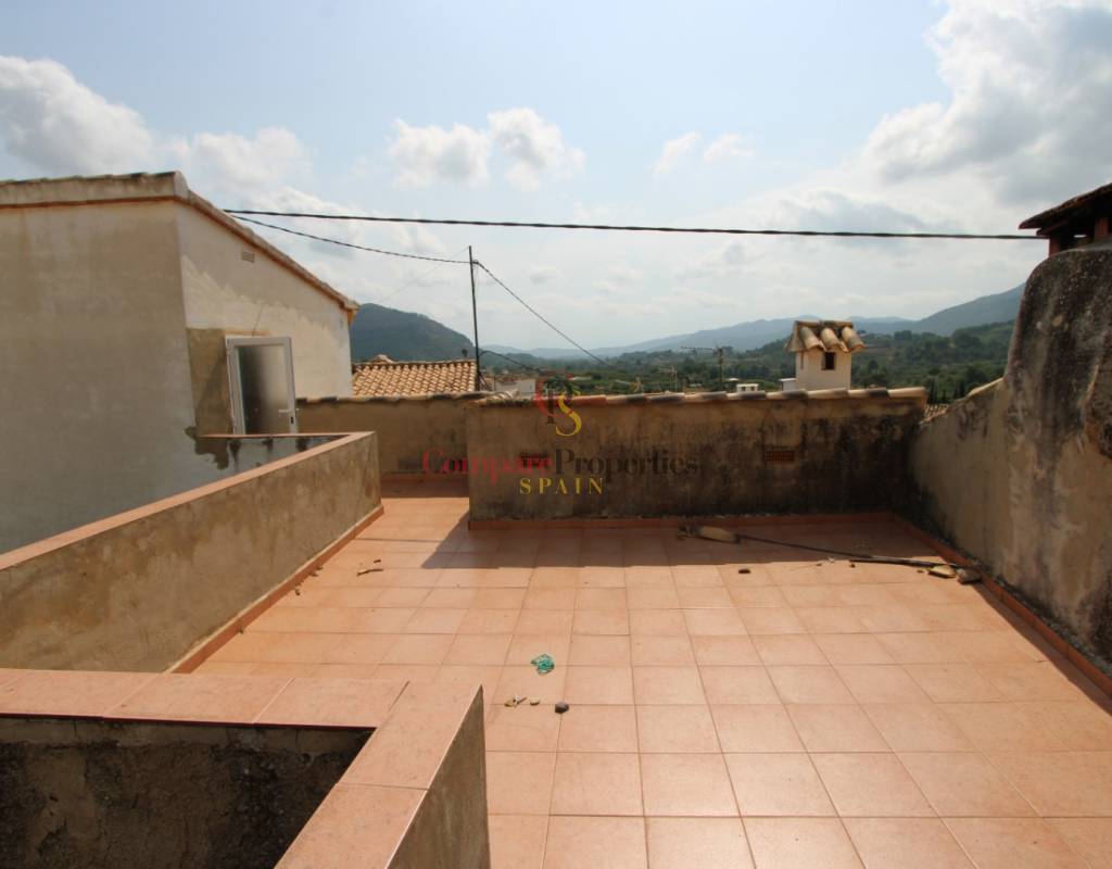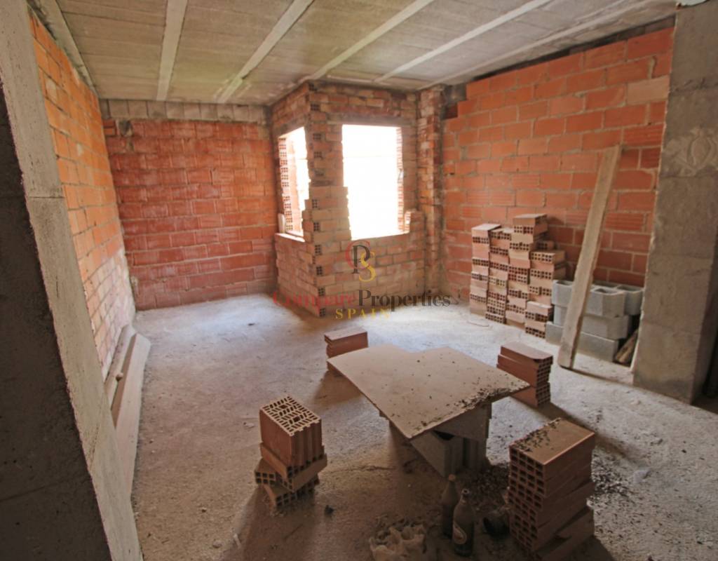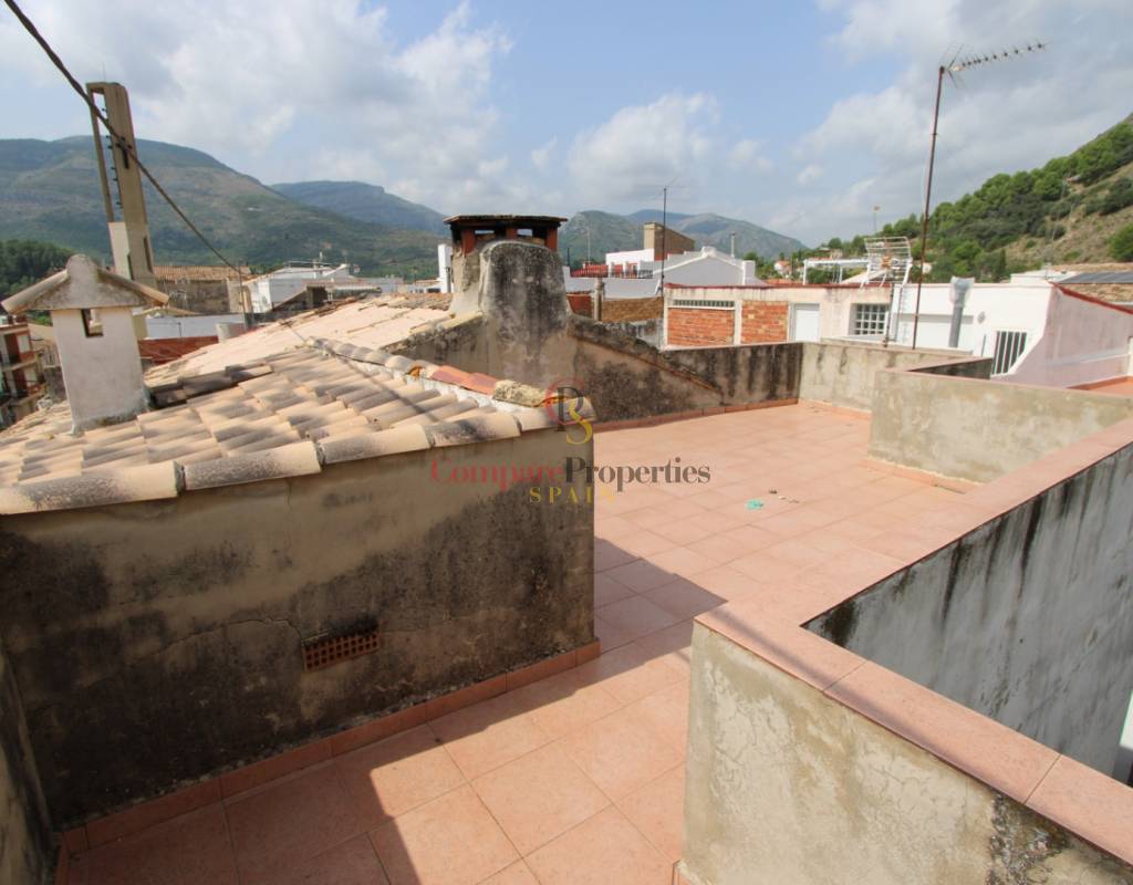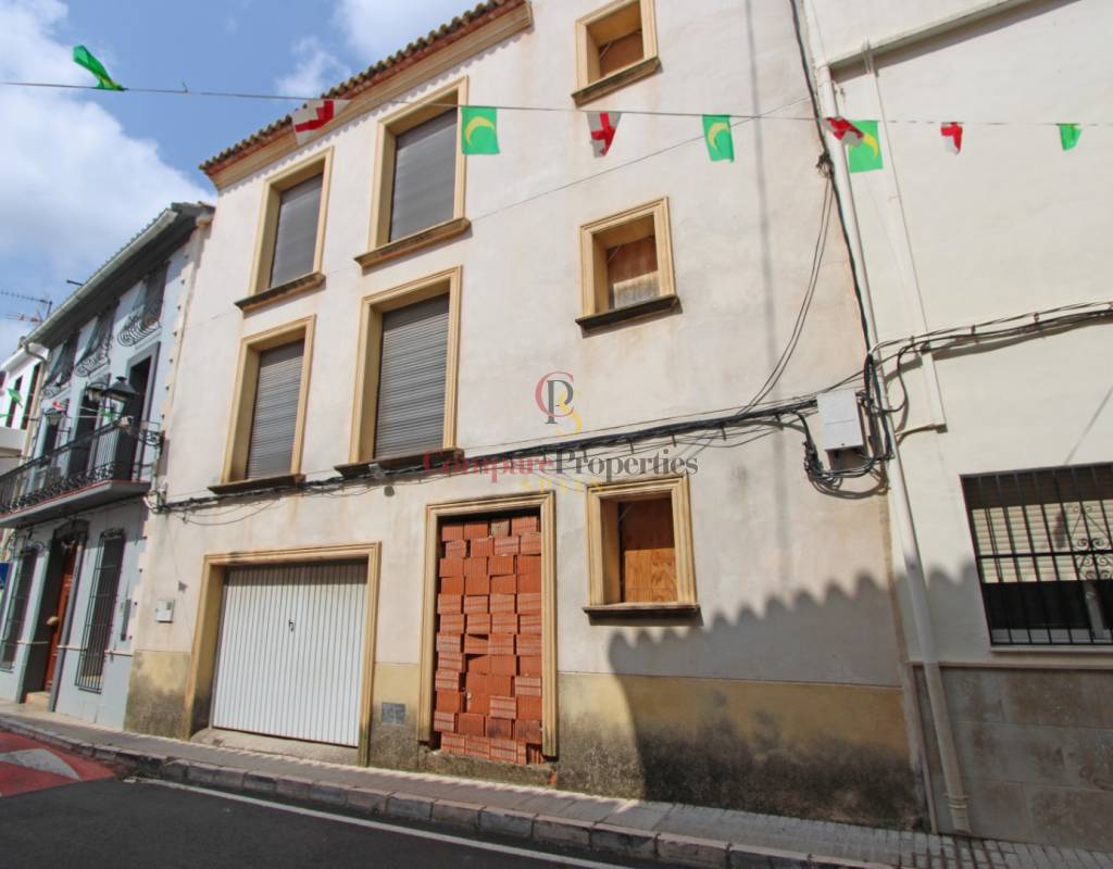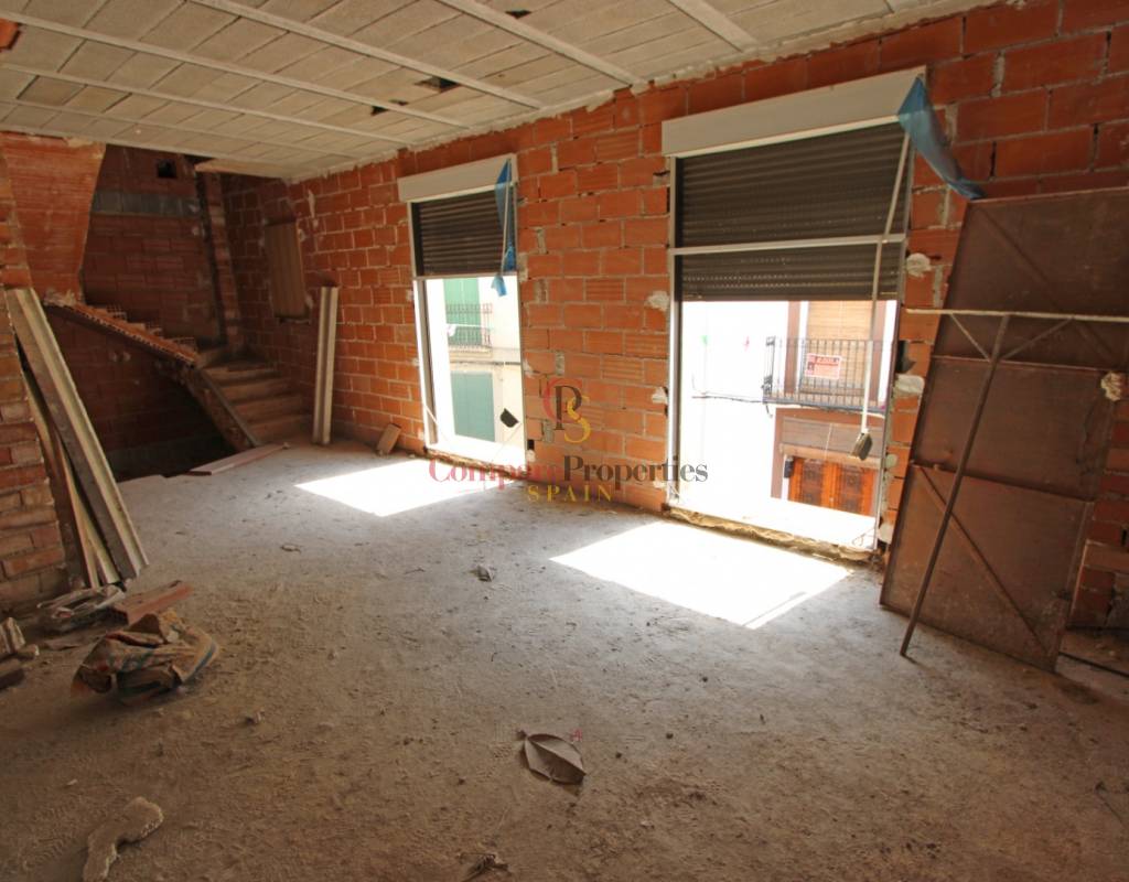 Village house for sale to reform in Murla. The house is located in a very quiet area and consists of 3 floors. The ground floor includes an entrance hall and a garage for 2 cars. The first and second floors are open plan and can be renovated to suit your taste. The property is very close to all services such as supermarkets and restaurants. The nearest beaches are 25 minutes away. The largest shopping center in the area is in Ondara, less than 20 minutes by car, as well as the highway to Valencia (1 hour) and Alicante (1 hour).